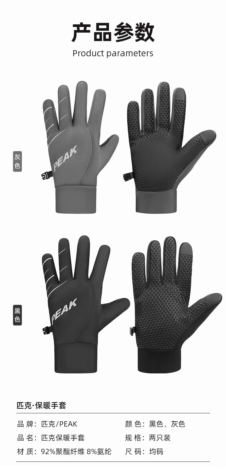 匹克保暖手套男冬季加绒加厚防风防寒骑行摩托运动滑雪手套可触屏 普通针织手套-颜色随机