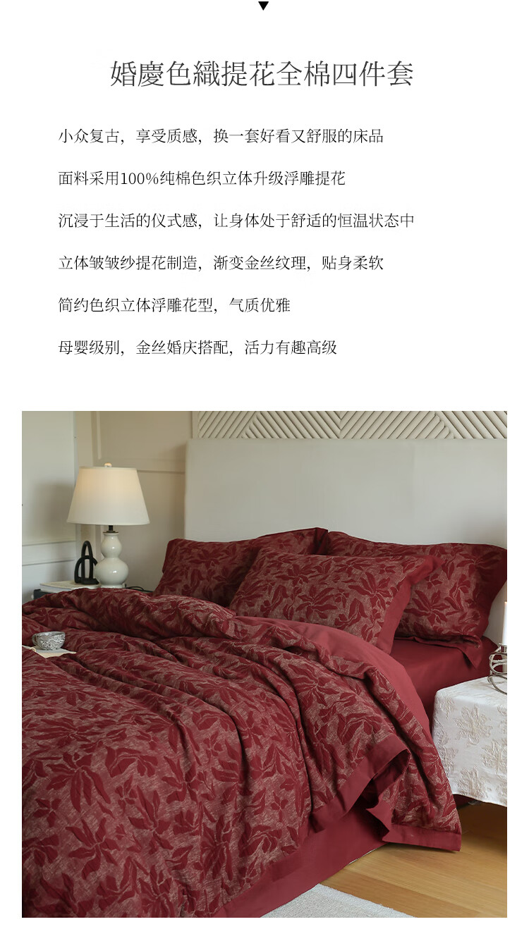 水星系列家纺结婚四件套2025新款婚庆新婚嫁喜被红色高级感年轻人婚房床上用品 花房喜事-是心跳的频率 1.5m床单款四件套200x230