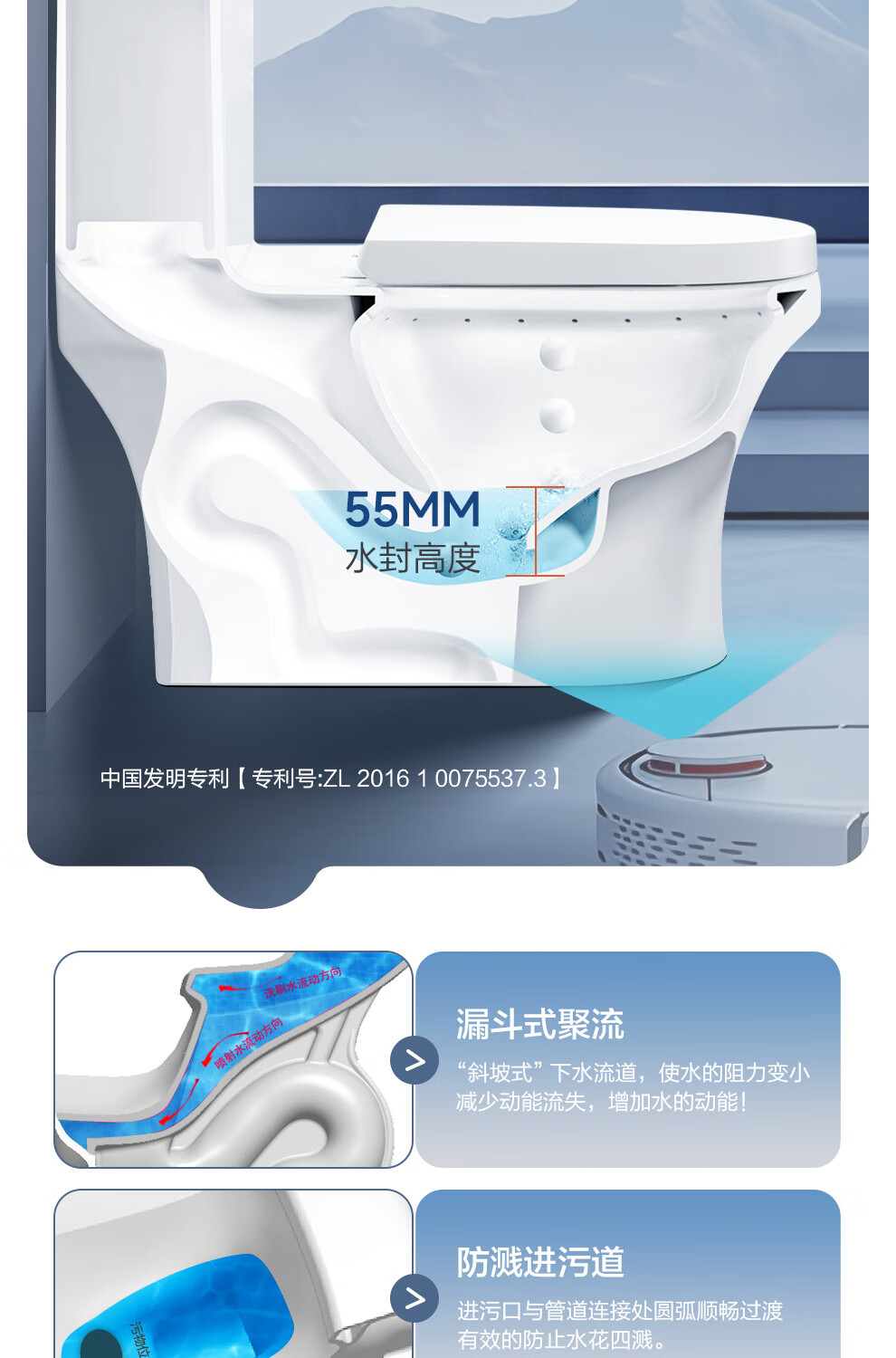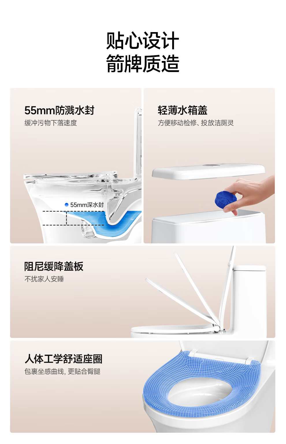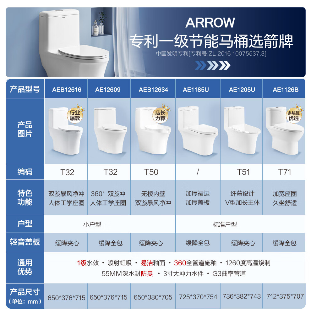 箭牌(ARROW)卫浴大冲力喷射虹吸式防臭节水马桶家用缓降盖板连体抽水坐便器 【金榜爆款】双龙卷漩吸12616 305/300mm