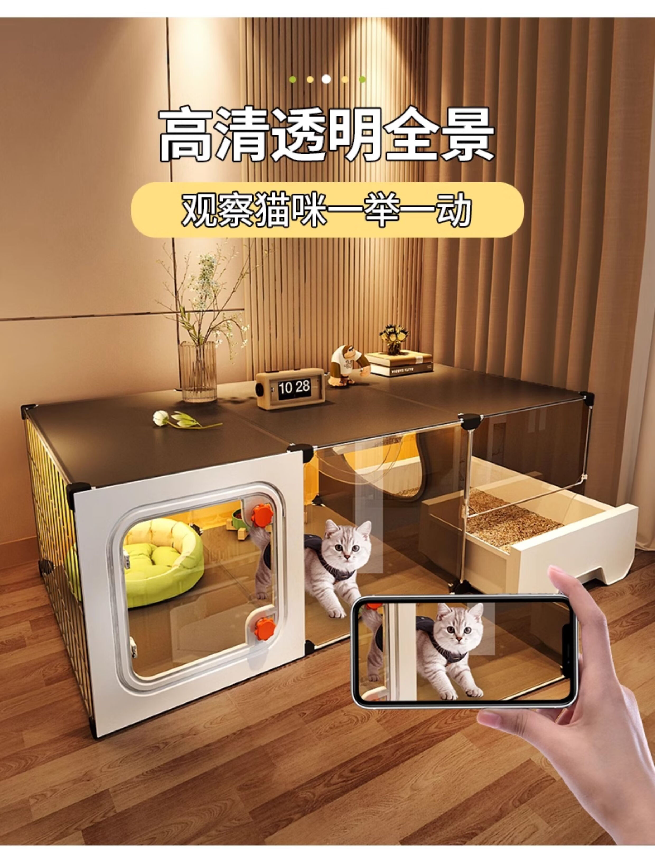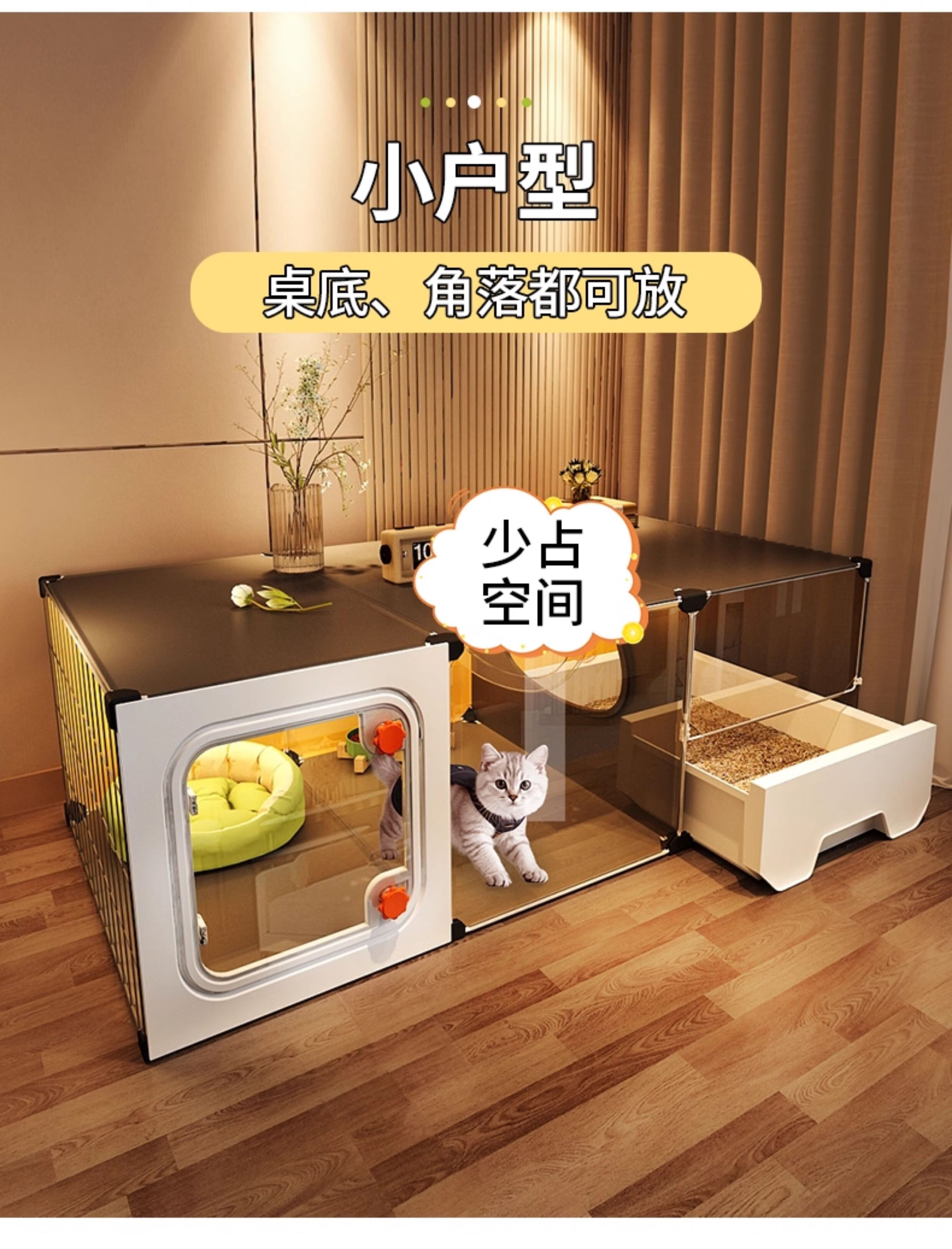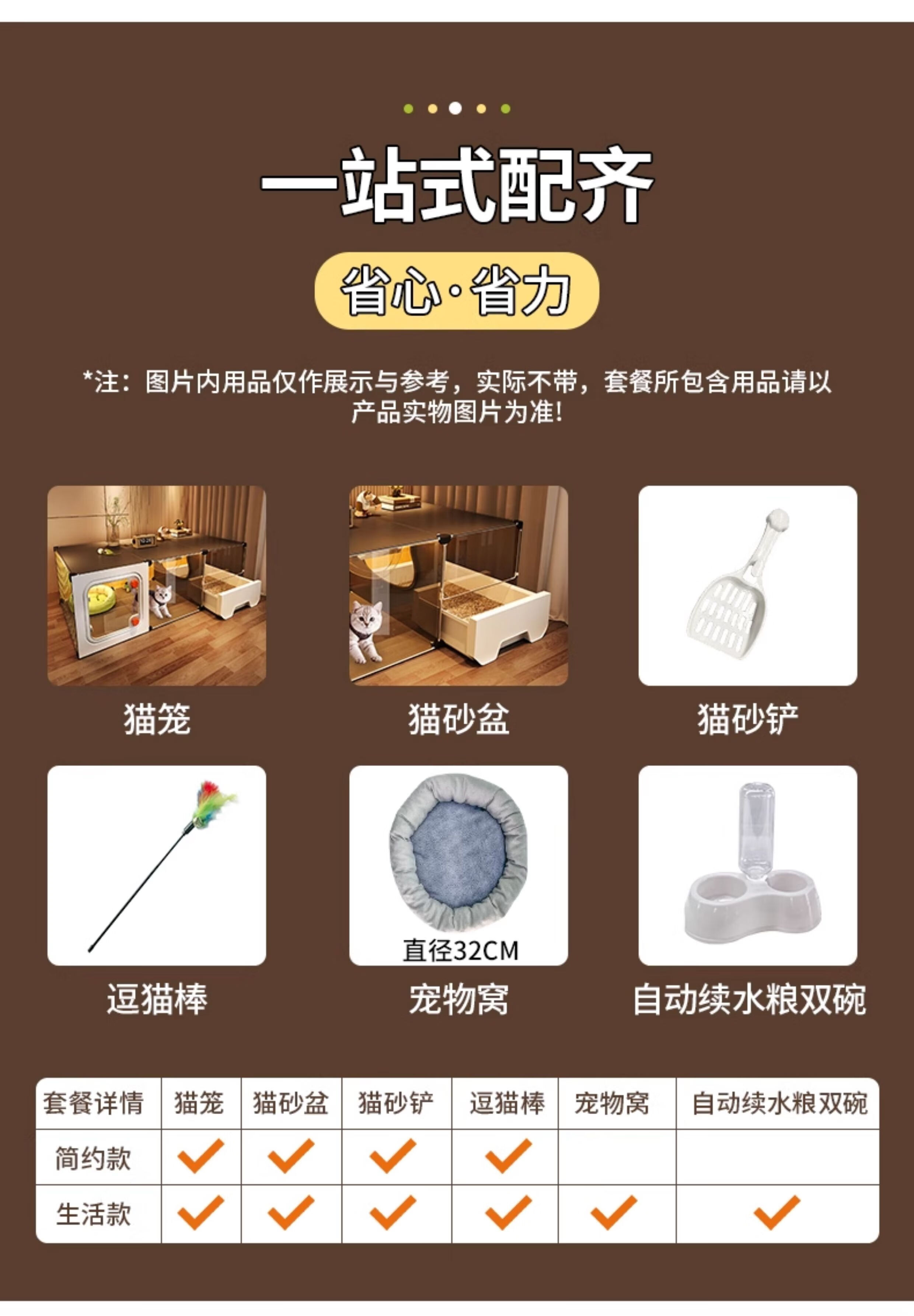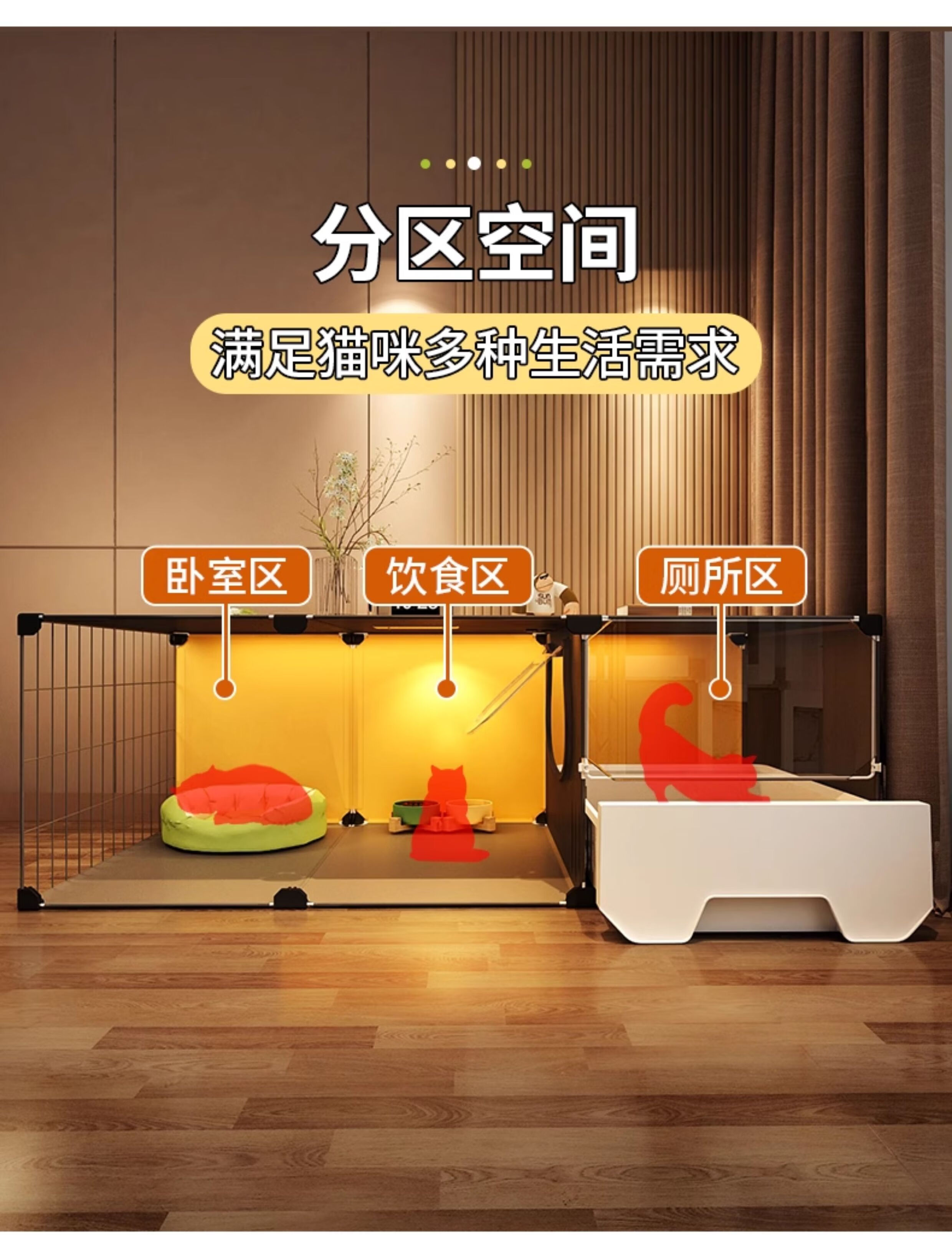 王多喵猫笼子家用室内猫窝猫厕所一体一室一厅一卫猫别墅小型幼猫柜猫舍 自带猫砂盆-大号加深-分区三室猫屋 自带猫砂盆款:猫砂盆+猫砂铲+逗猫棒