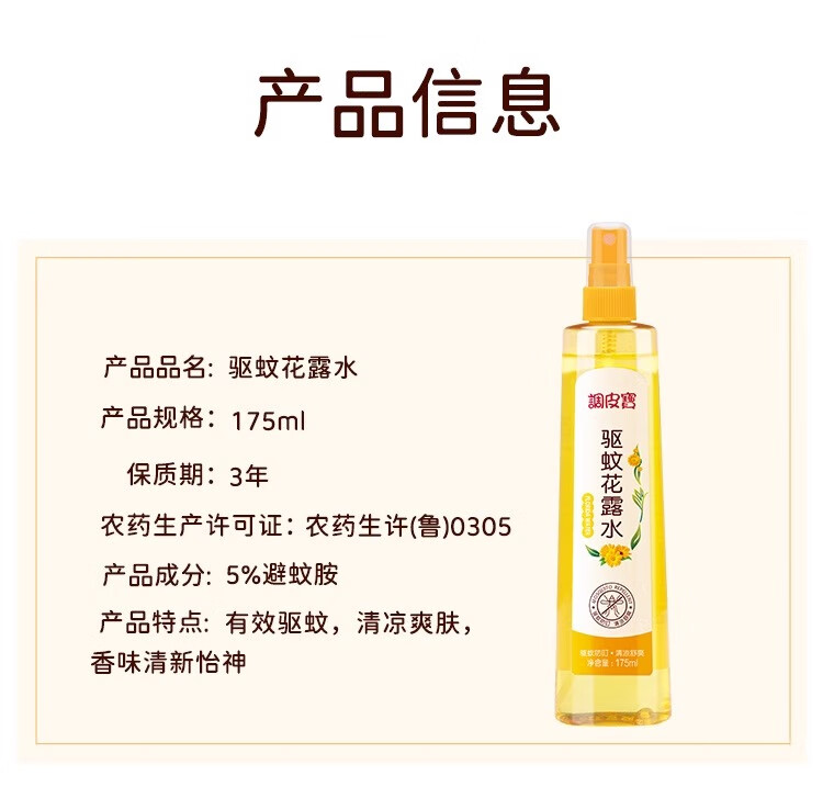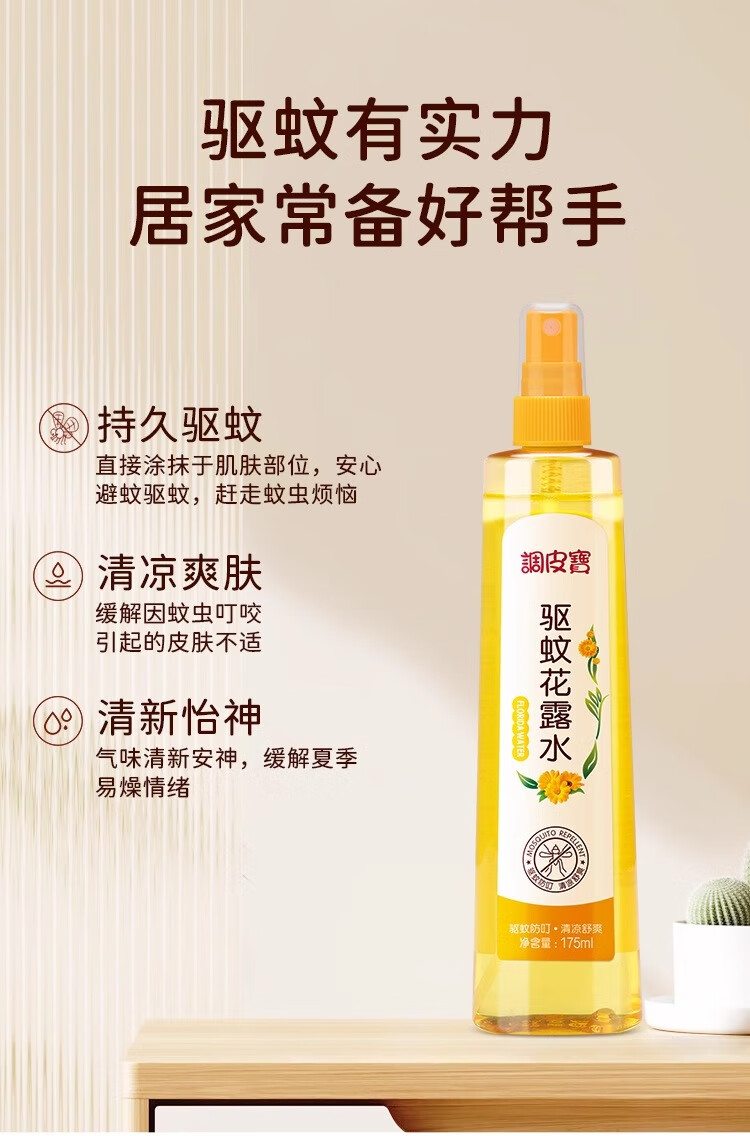 调皮宝驱蚊花露水儿童防蚊喷雾婴儿驱蚊液户外预防基孔肯雅热止痒175ml