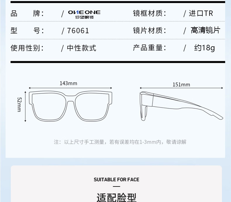 one&one墨镜套镜近视专用太阳镜偏光男防紫外线开车旅行墨镜夹片女开学