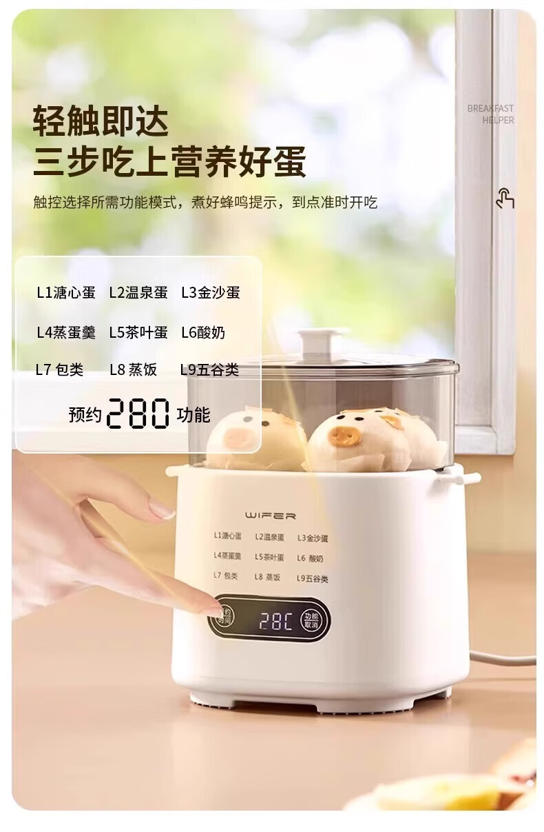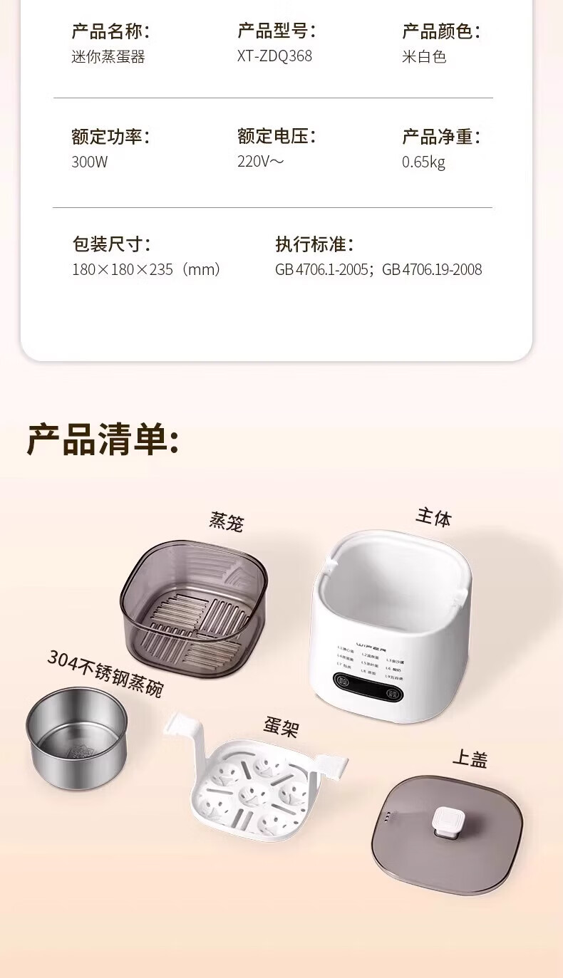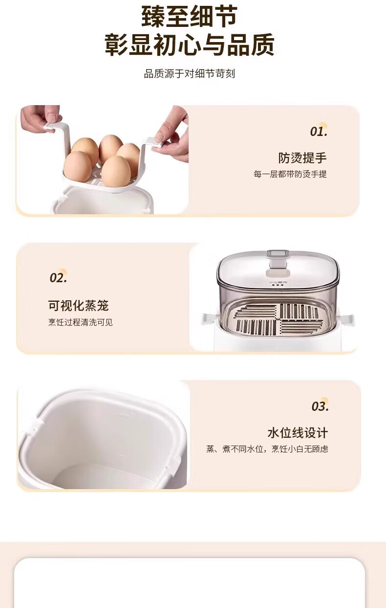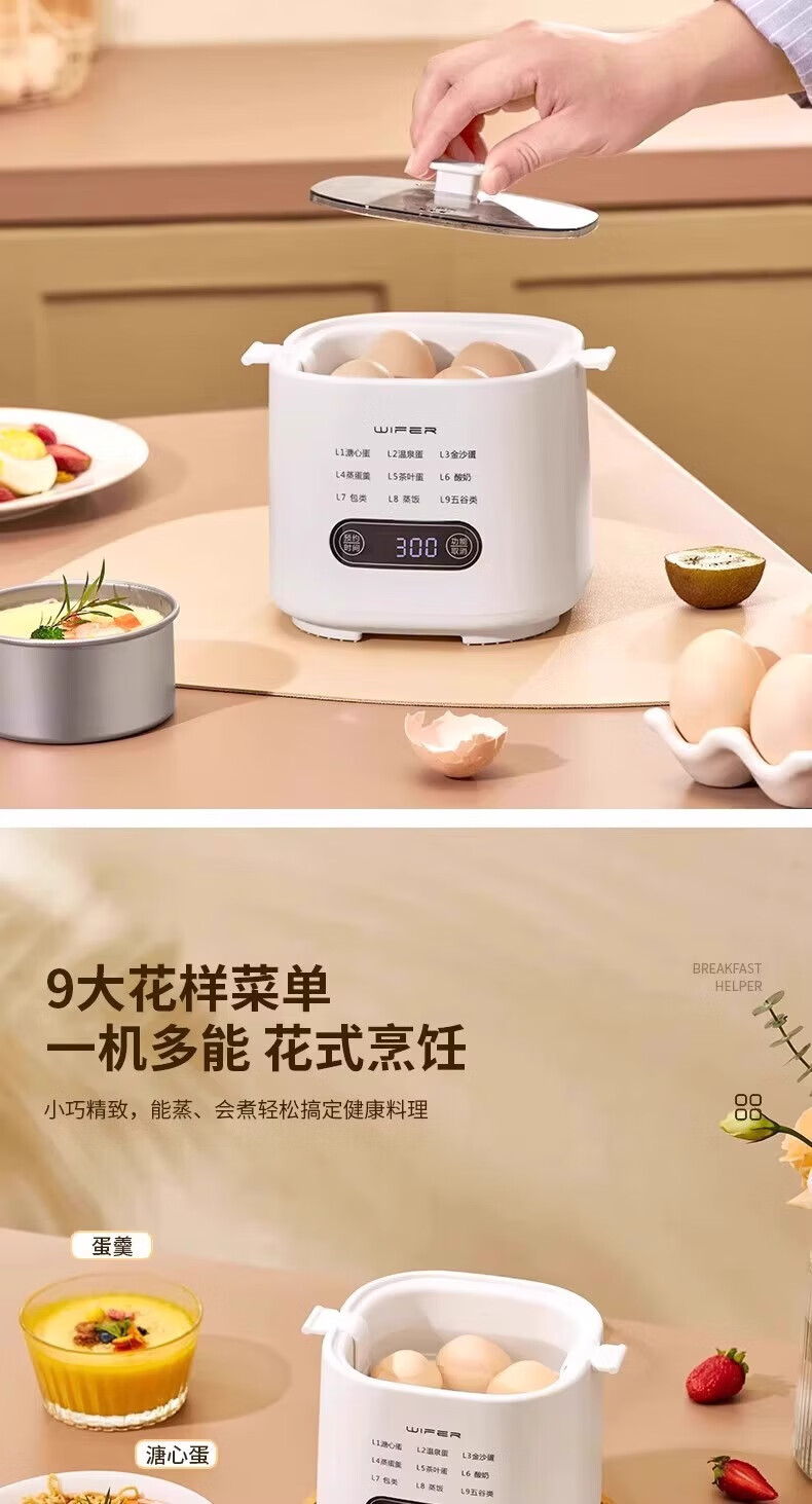DEATKN德国高端煮蛋器蒸煮一体新款自动断电家用小型自动多功能早餐 单层 2025新款[煮蛋器+蒸蛋架]