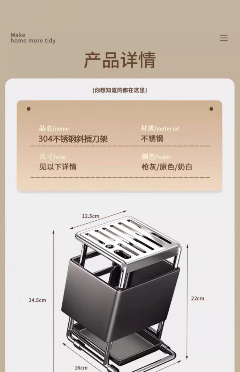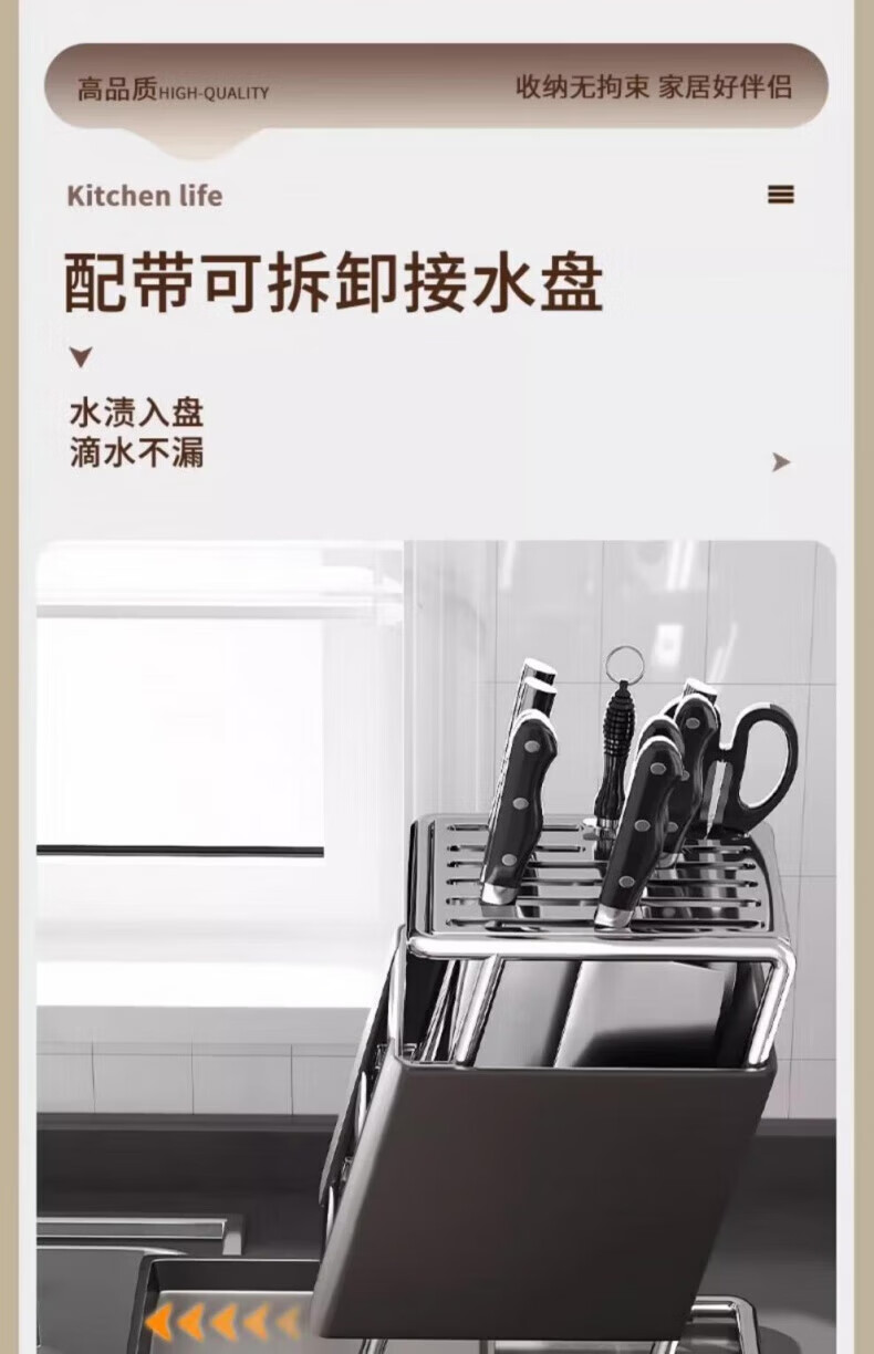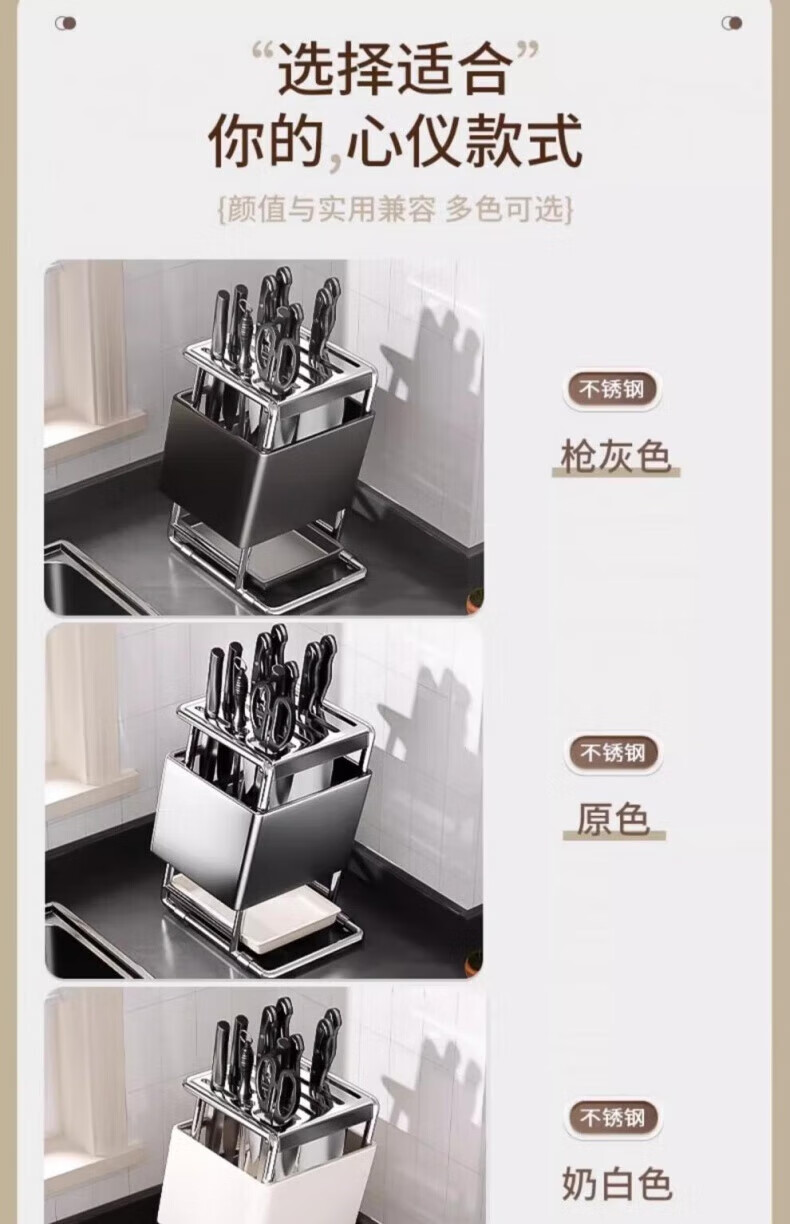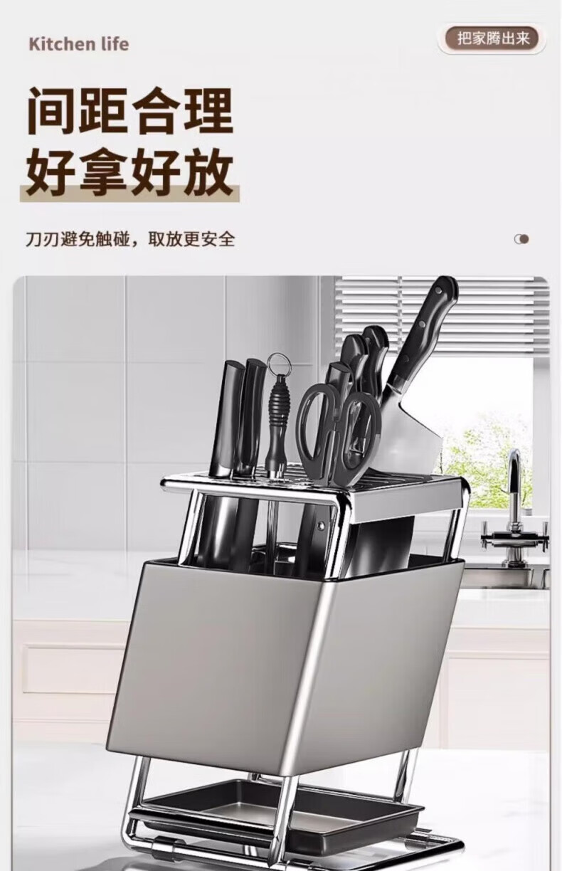 AILUKI日本刀架置物架菜刀收纳架刀架筷笼一体厨房多功能置物架砧板架 【304不锈钢】枪灰色【刀架+接水盘】