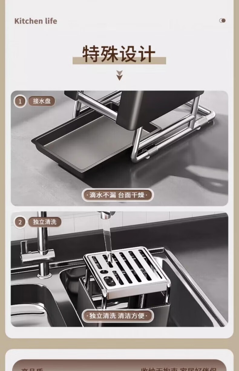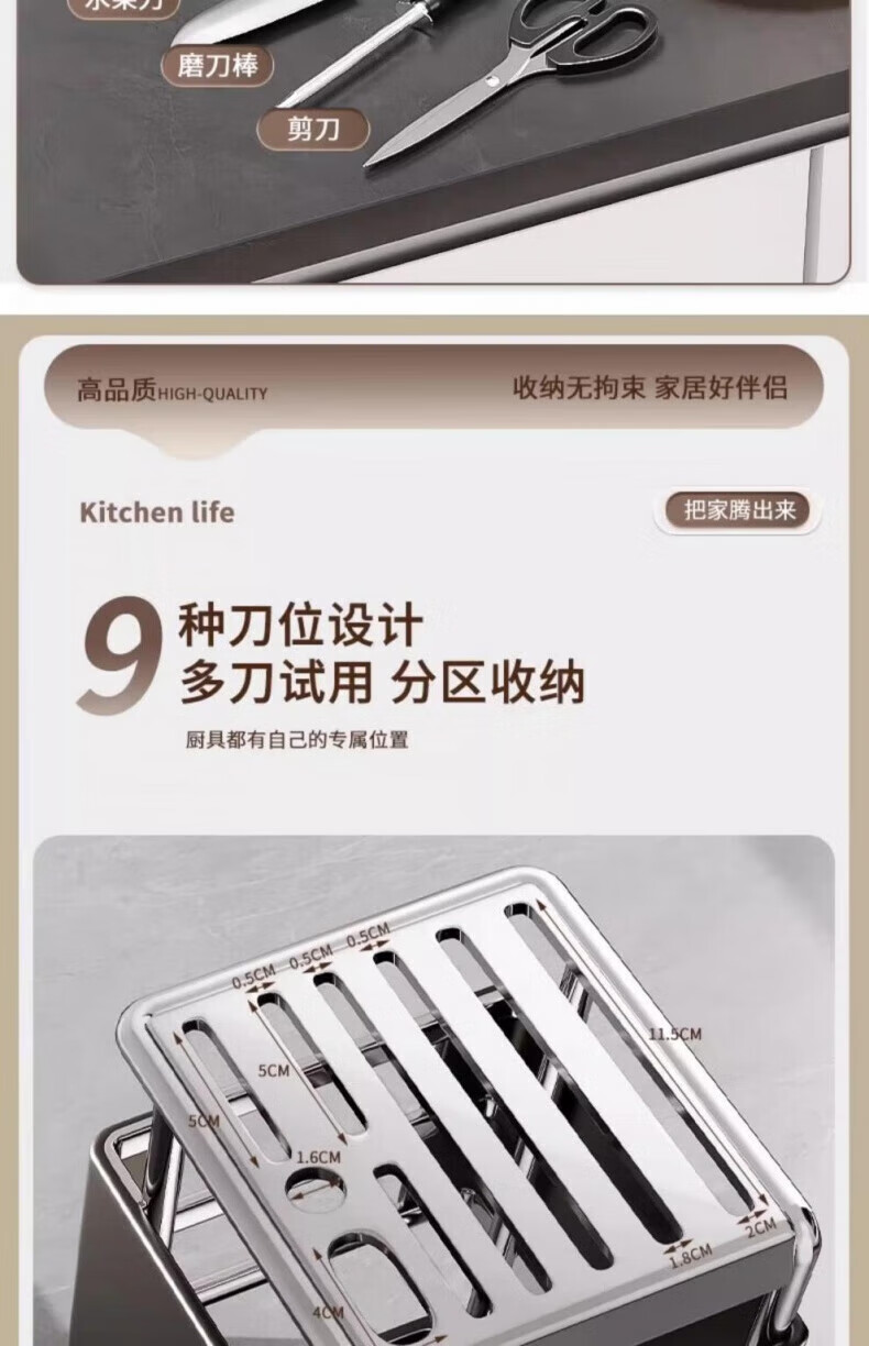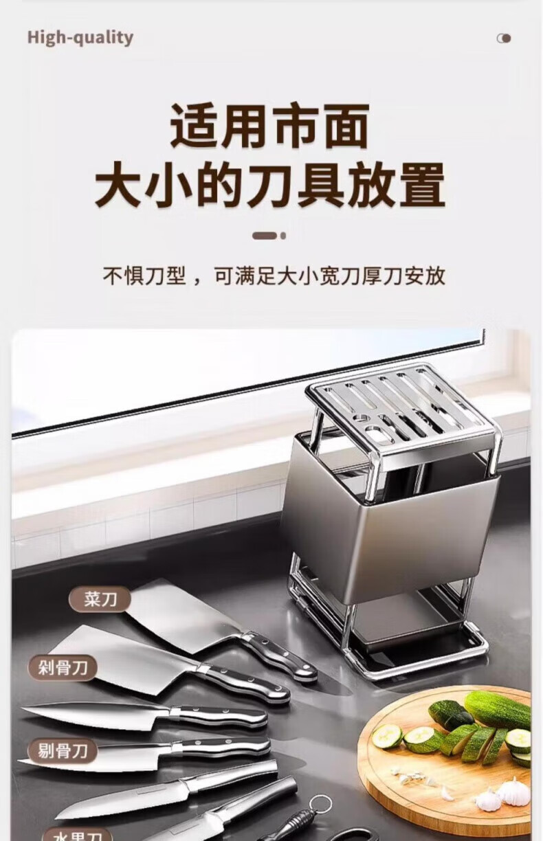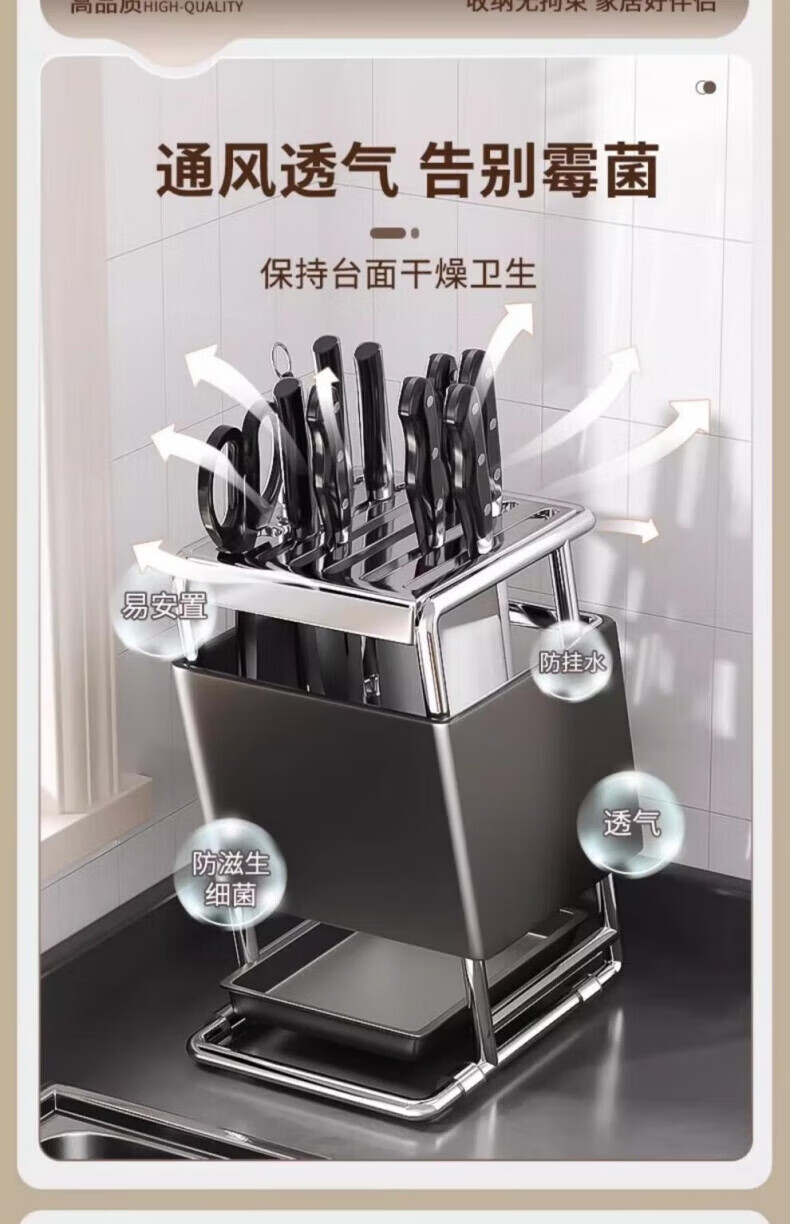 AILUKI日本刀架置物架菜刀收纳架刀架筷笼一体厨房多功能置物架砧板架 【304不锈钢】枪灰色【刀架+接水盘】
