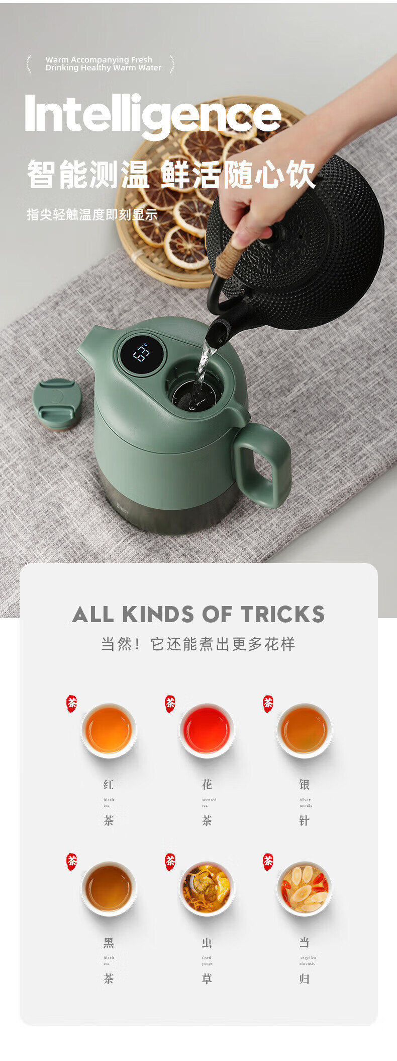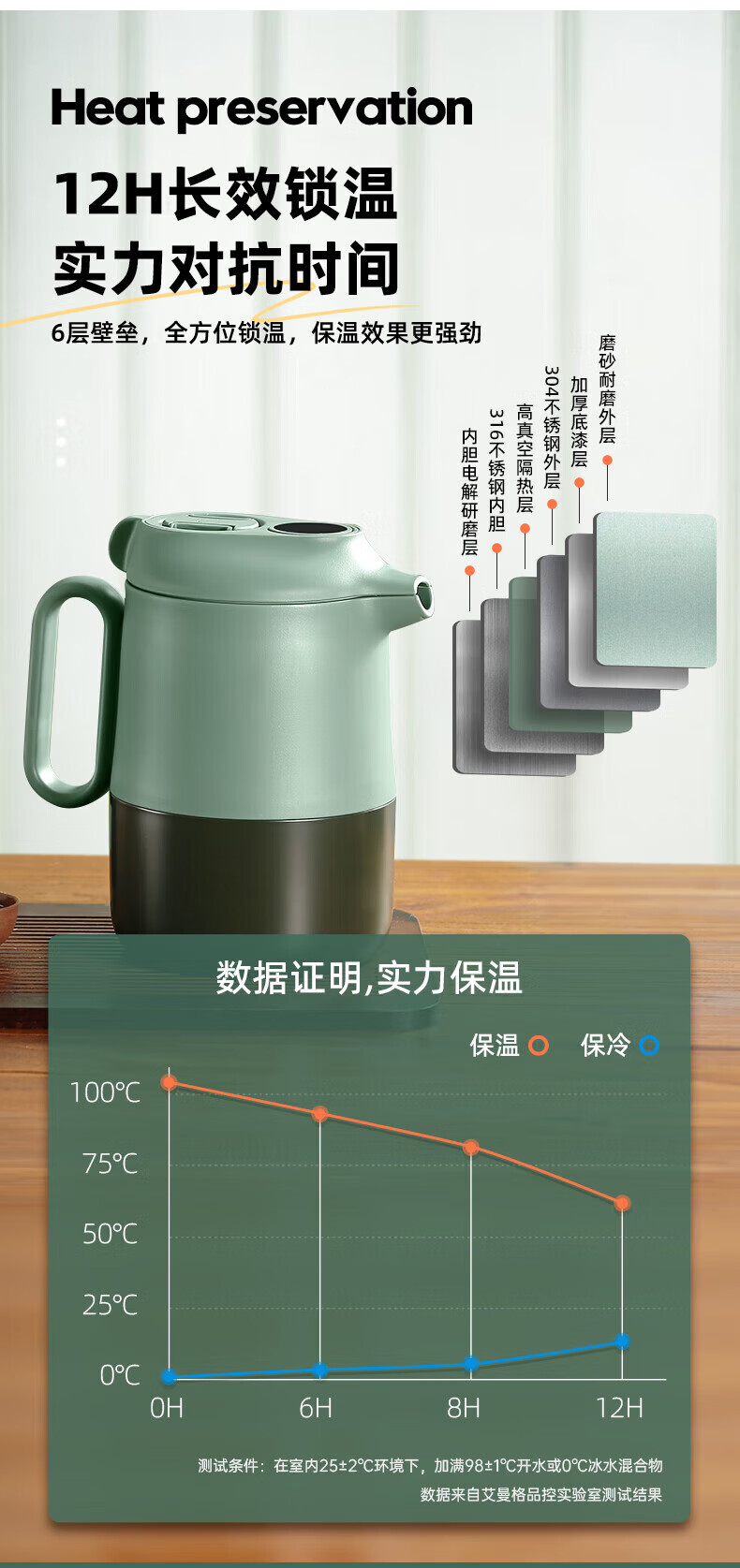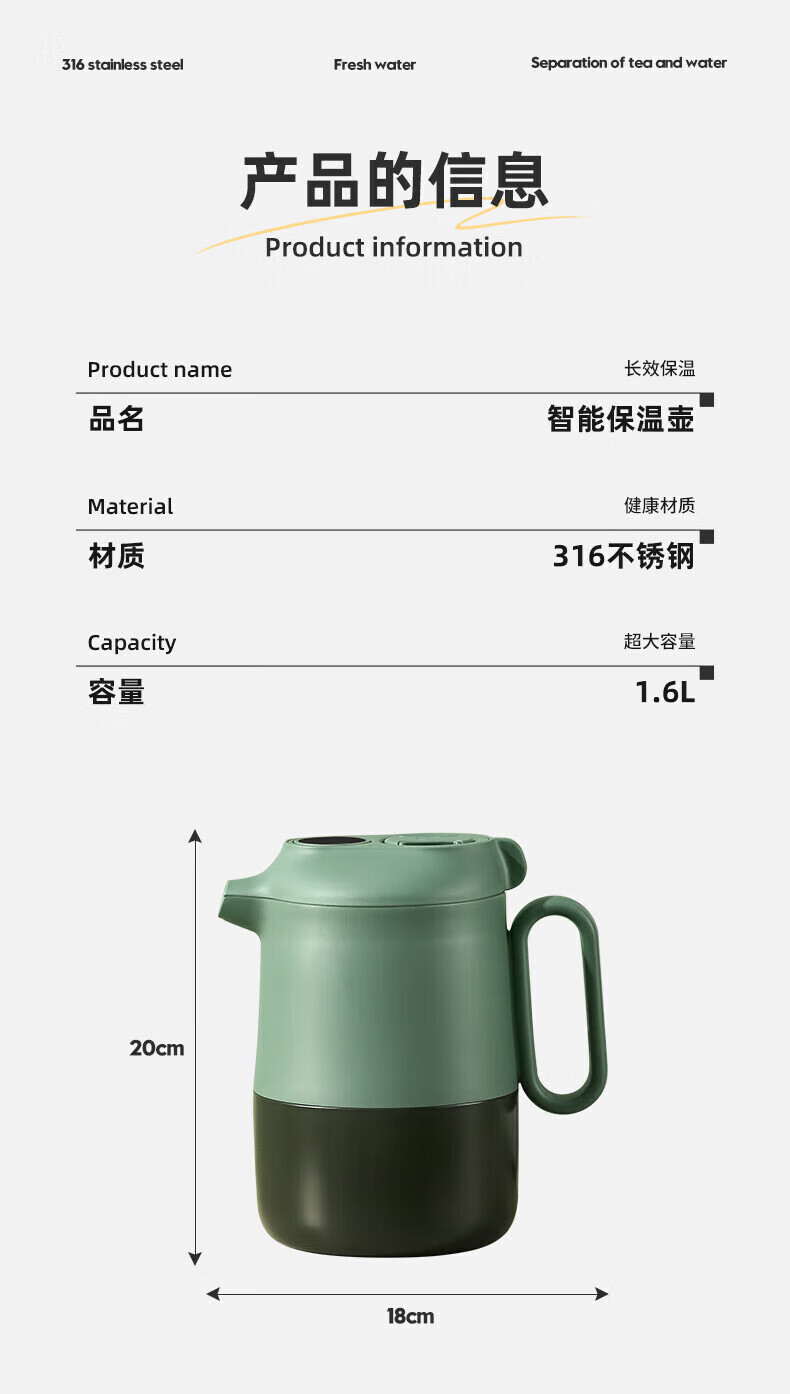 DEATKN德国高端焖茶壶家用保温壶陶瓷内胆白茶闷泡壶泡茶壶热水壶 黑色[陶瓷内胆] 1.6L