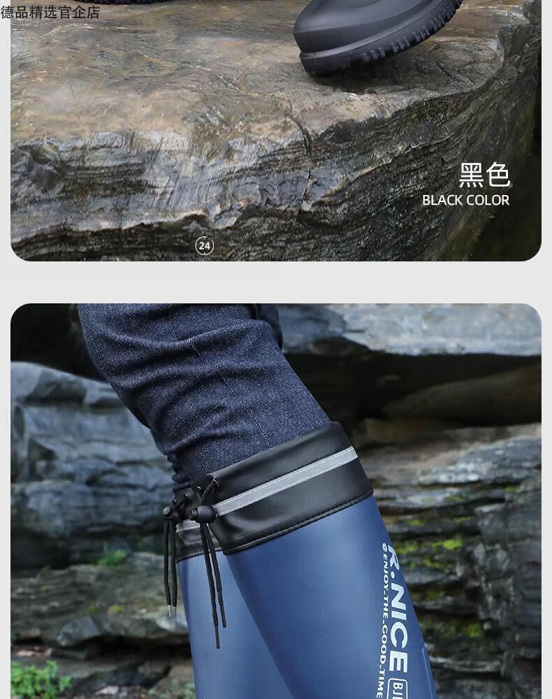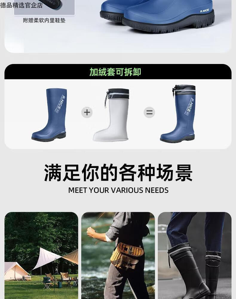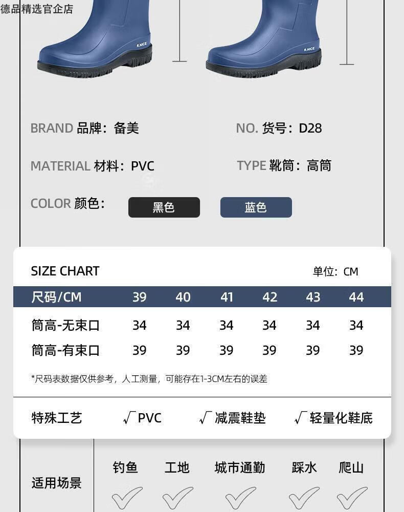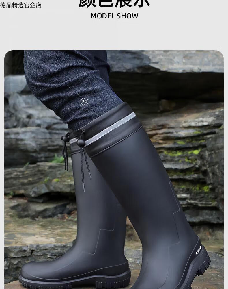 DEATKN德国新款雨鞋男款防水防滑耐磨内胆加绒保暖雨靴男士长筒水 [防滑耐磨]黑色加绒可拆卸 39[脚长24.5+筒围41cm]