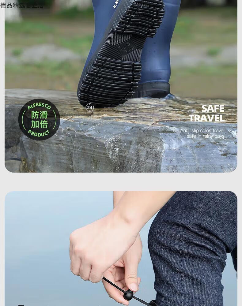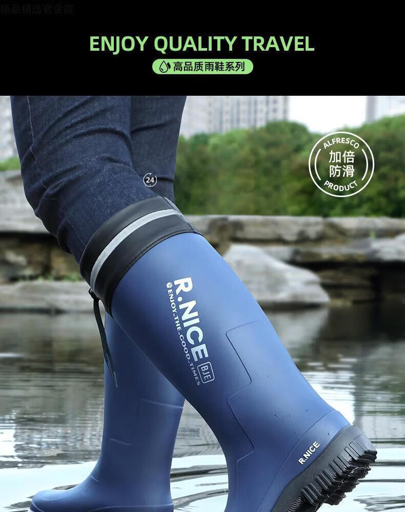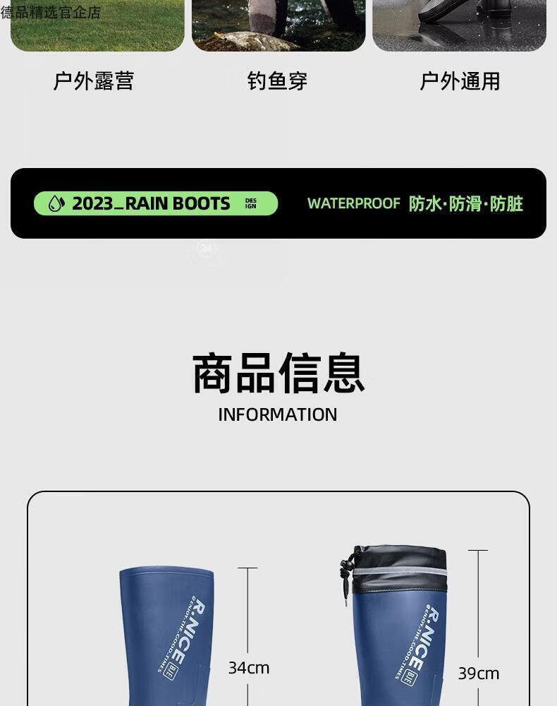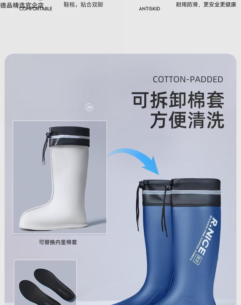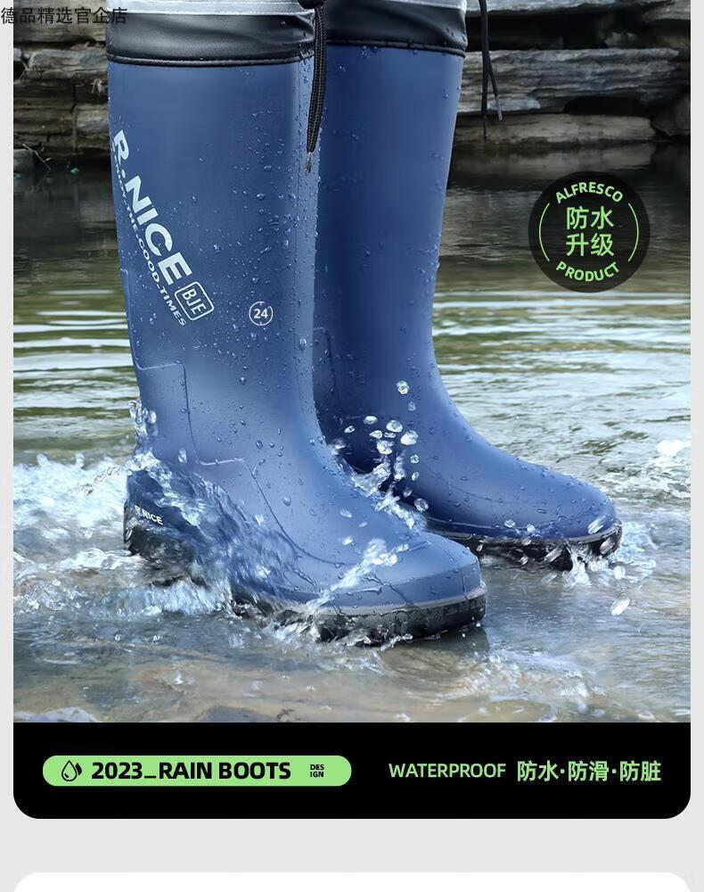 DEATKN德国新款雨鞋男款防水防滑耐磨内胆加绒保暖雨靴男士长筒水 [防滑耐磨]黑色加绒可拆卸 39[脚长24.5+筒围41cm]