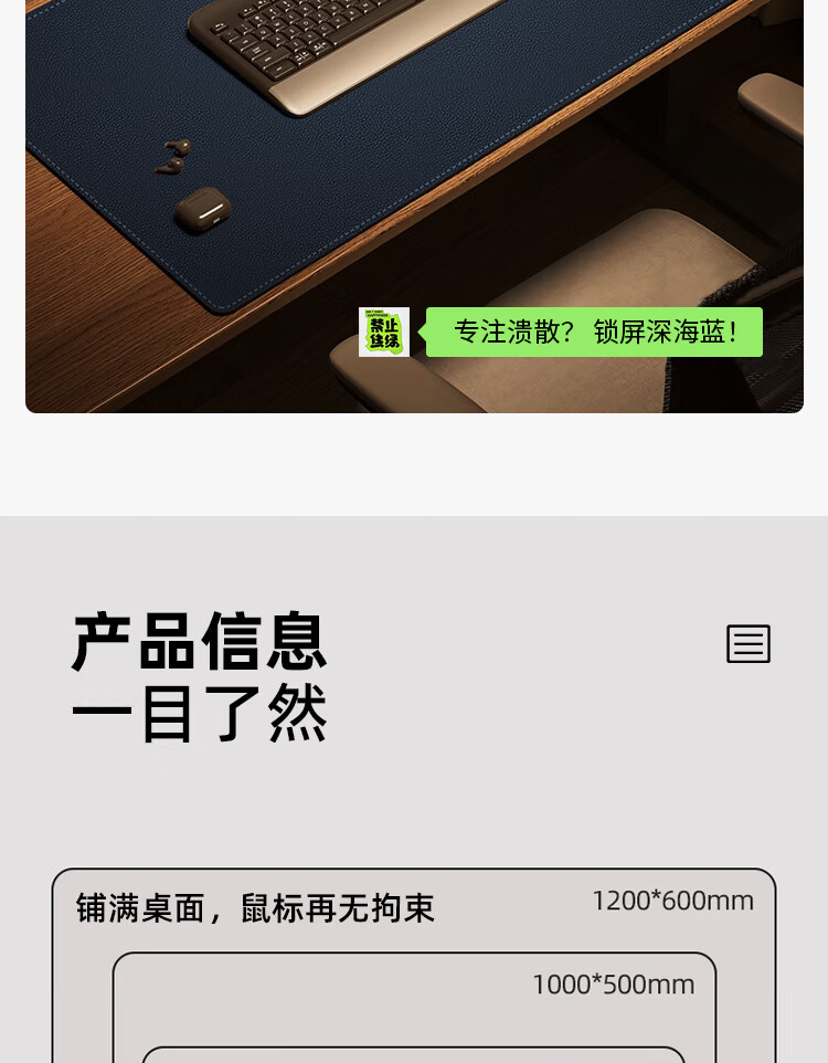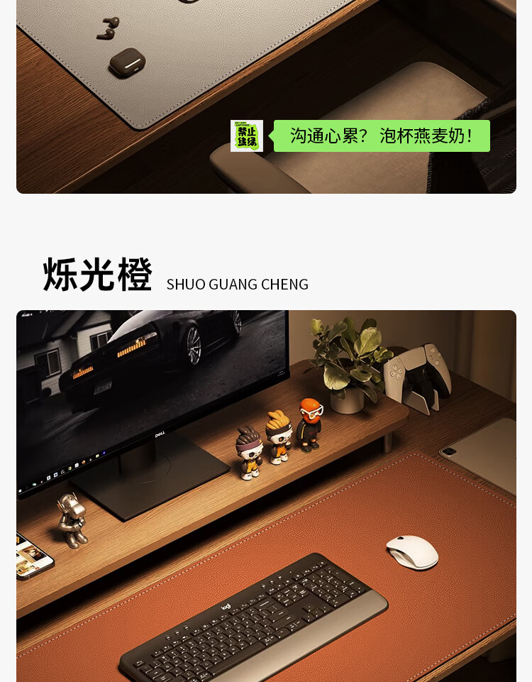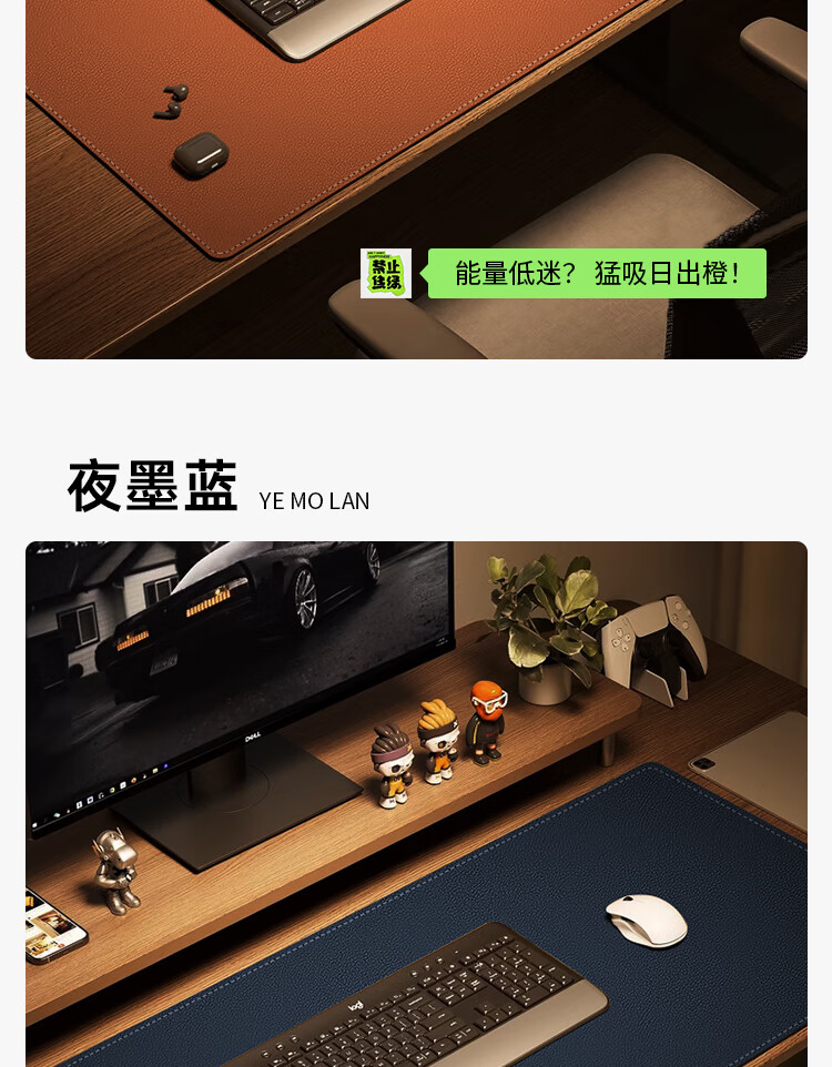 WCZ德国皮革鼠标垫大号超大号电脑桌垫办公桌面防水滑鼠垫键盘电竞 RM-曜石黑【正面皮革/反面软橡木】 70*120cm【1cm圆角】