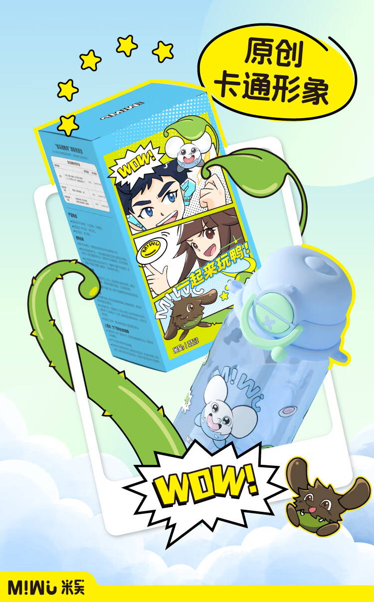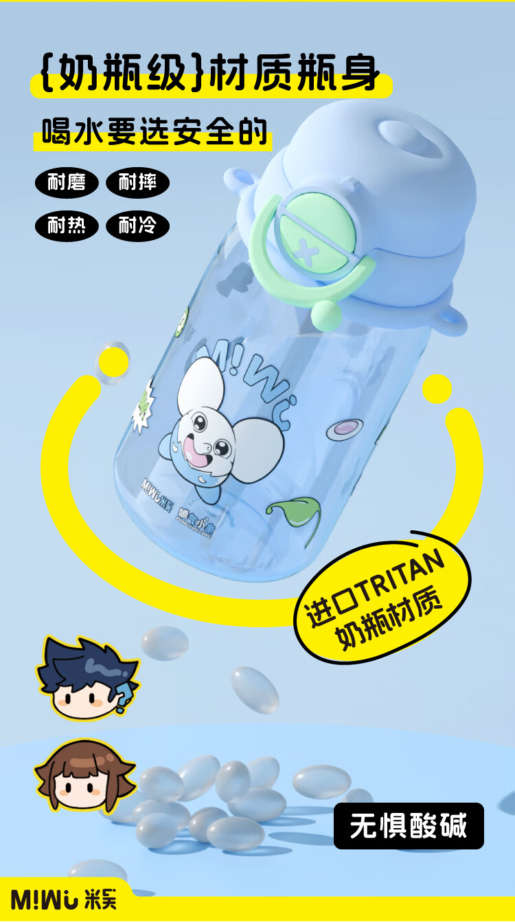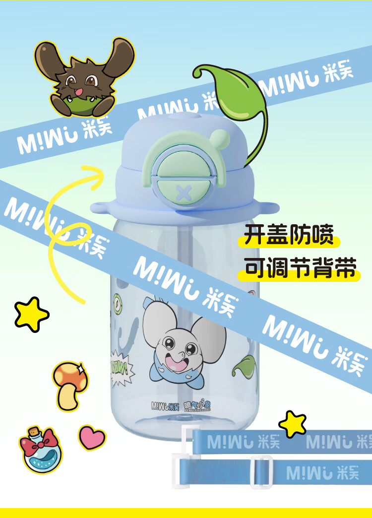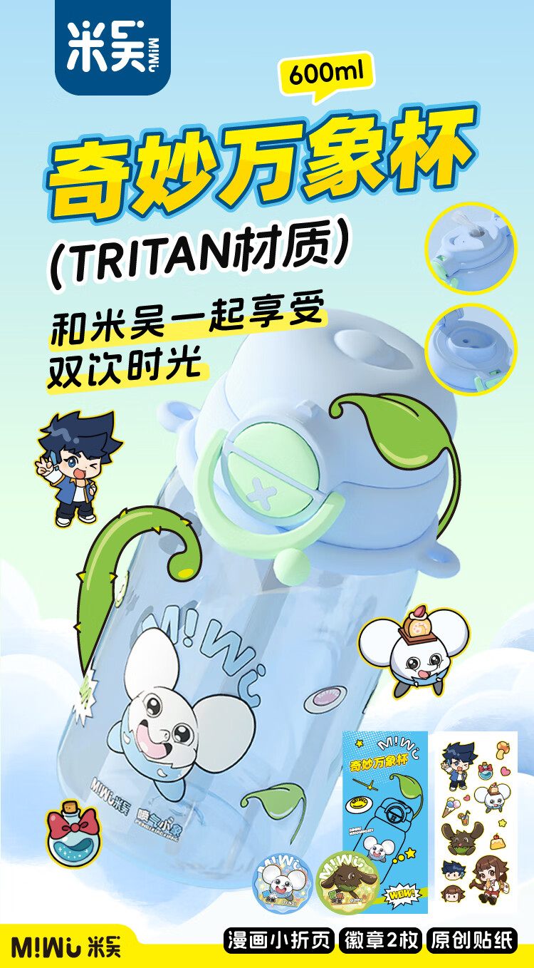 米吴儿童水杯6-12岁小学生上学专用喝水夏天塑料杯 米吴联名水杯 600ml