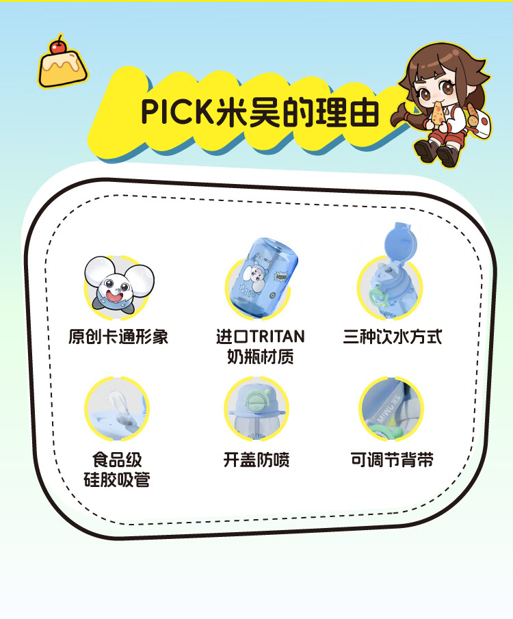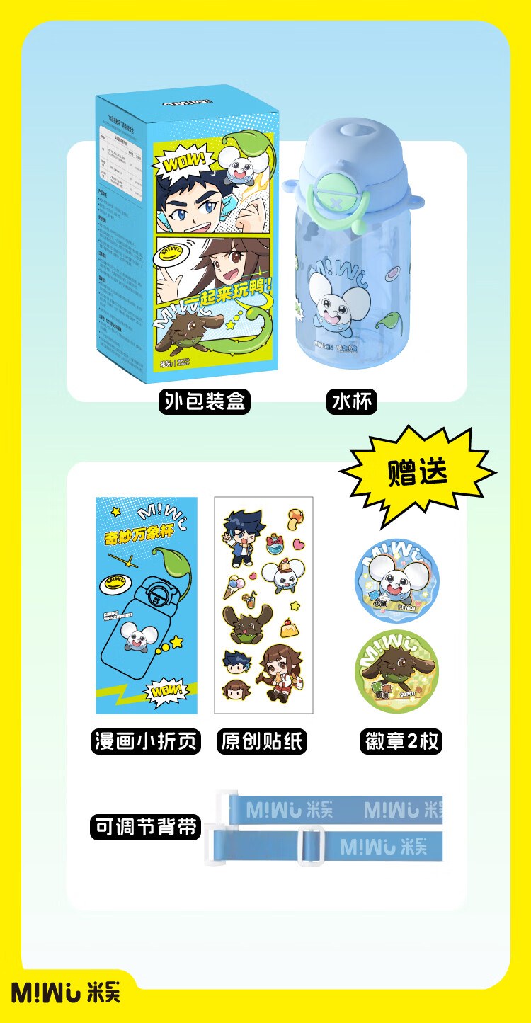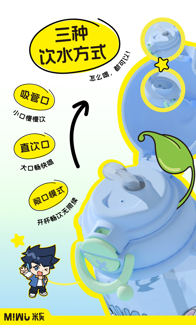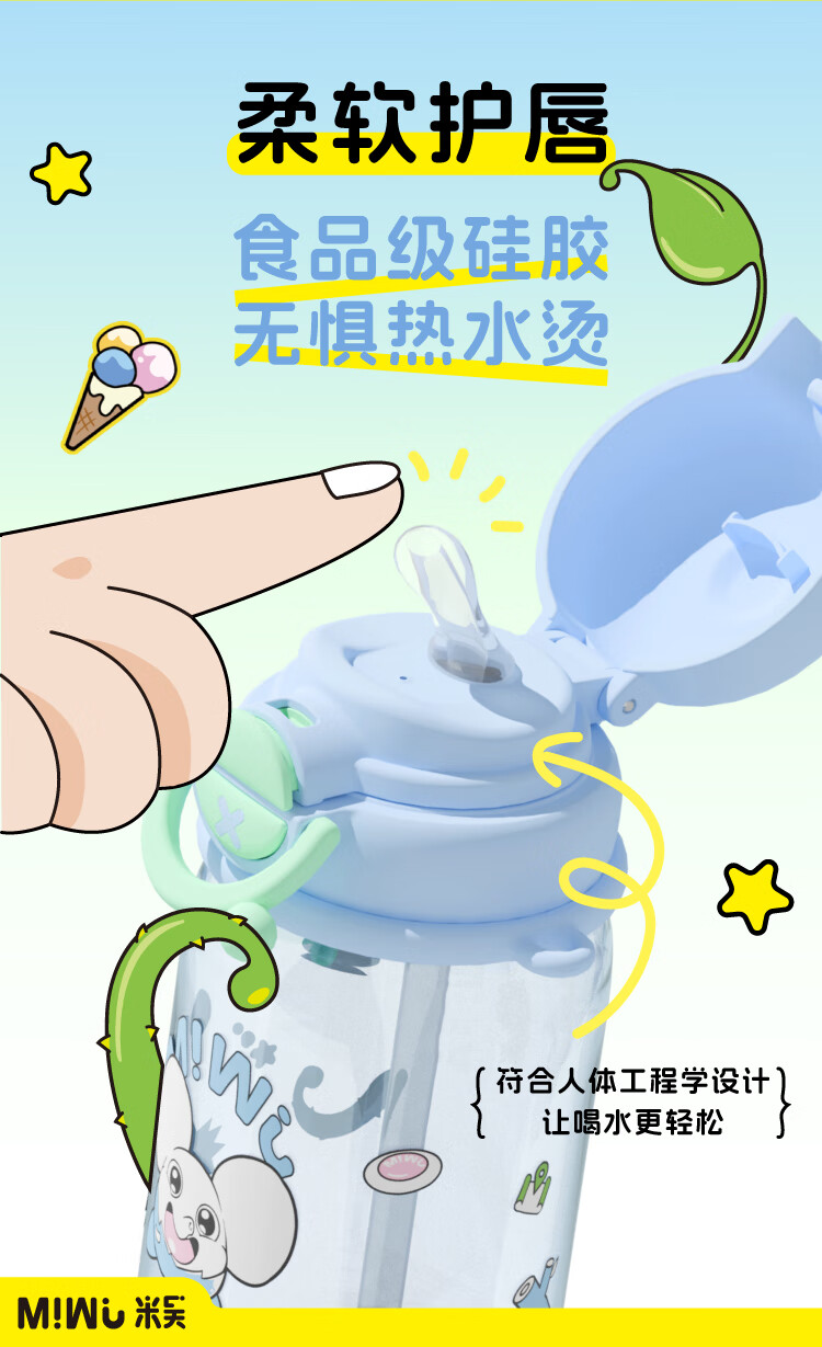 米吴儿童水杯6-12岁小学生上学专用喝水夏天塑料杯 米吴联名水杯 600ml