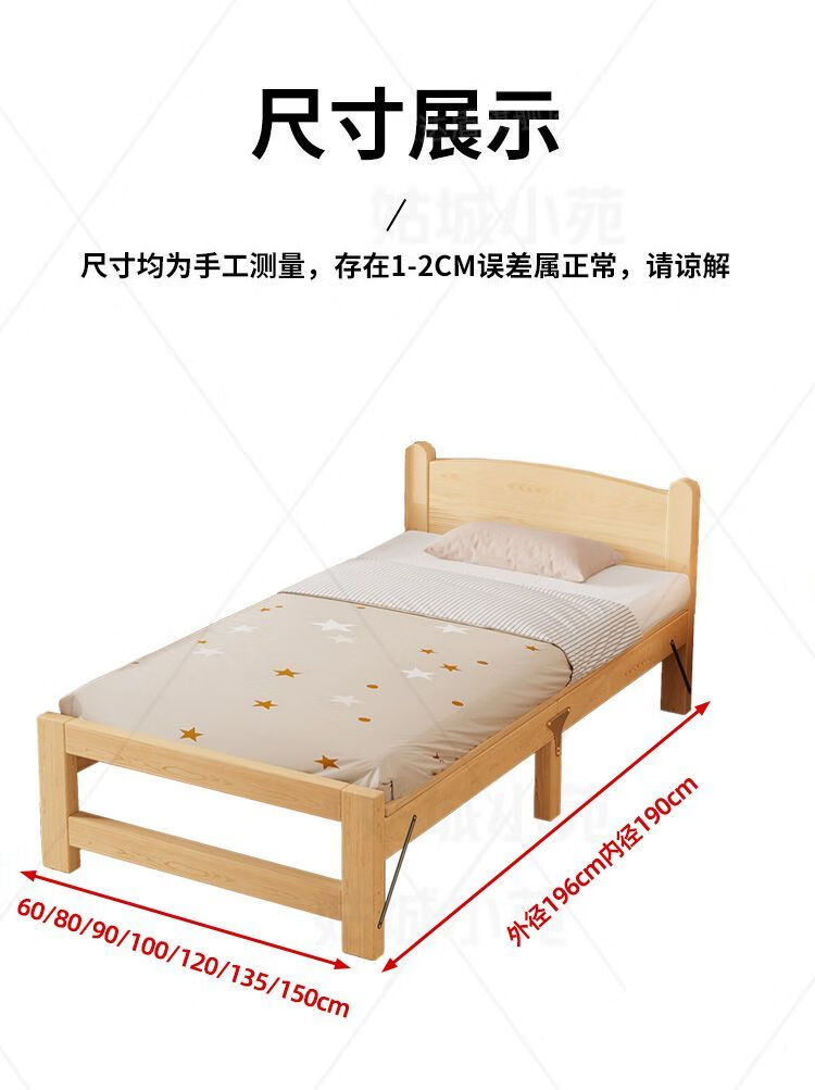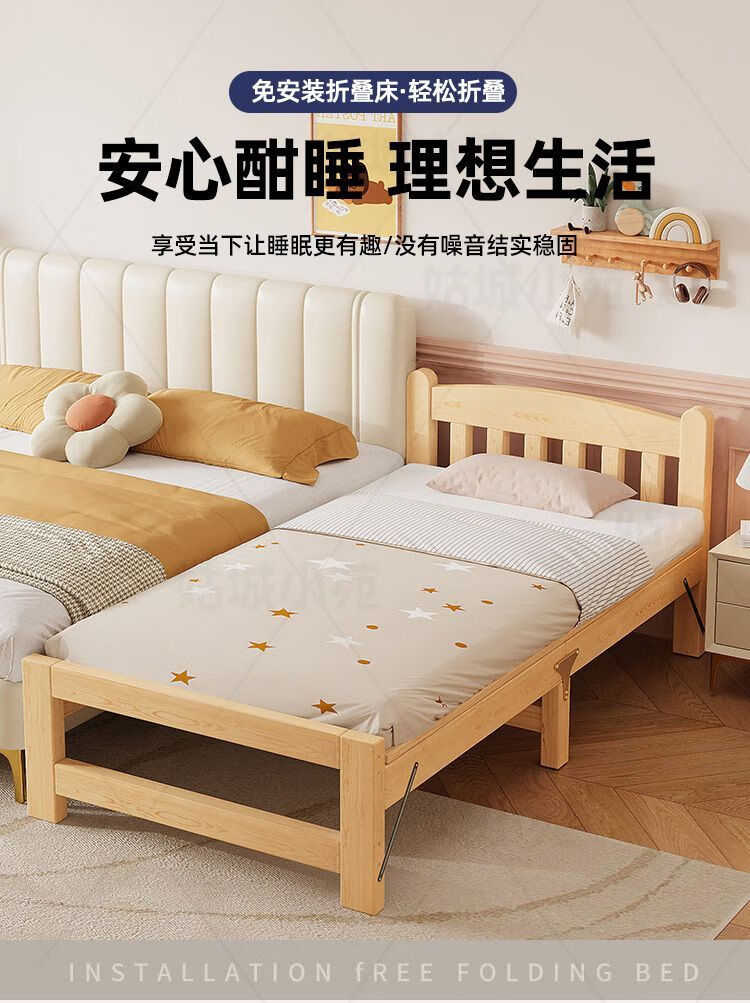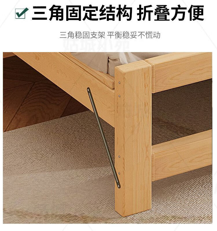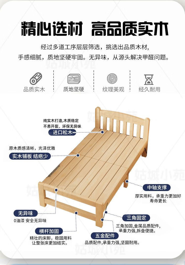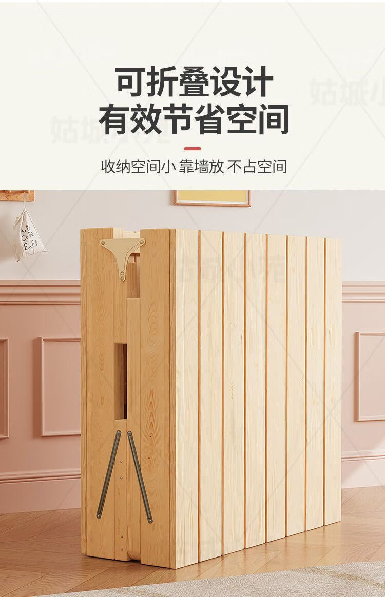 倘然之家实木可折叠小床拼装大床儿童小床午休单人床简易出租房儿童拼接床 【可折叠放置】镂空床头-日常款单床(无漆) 宽60长196高36cm【全实木-不用安装】