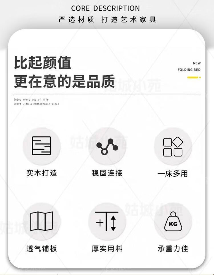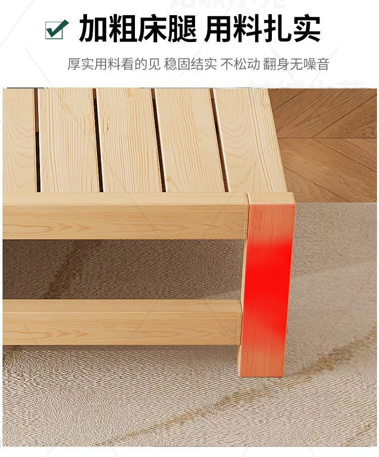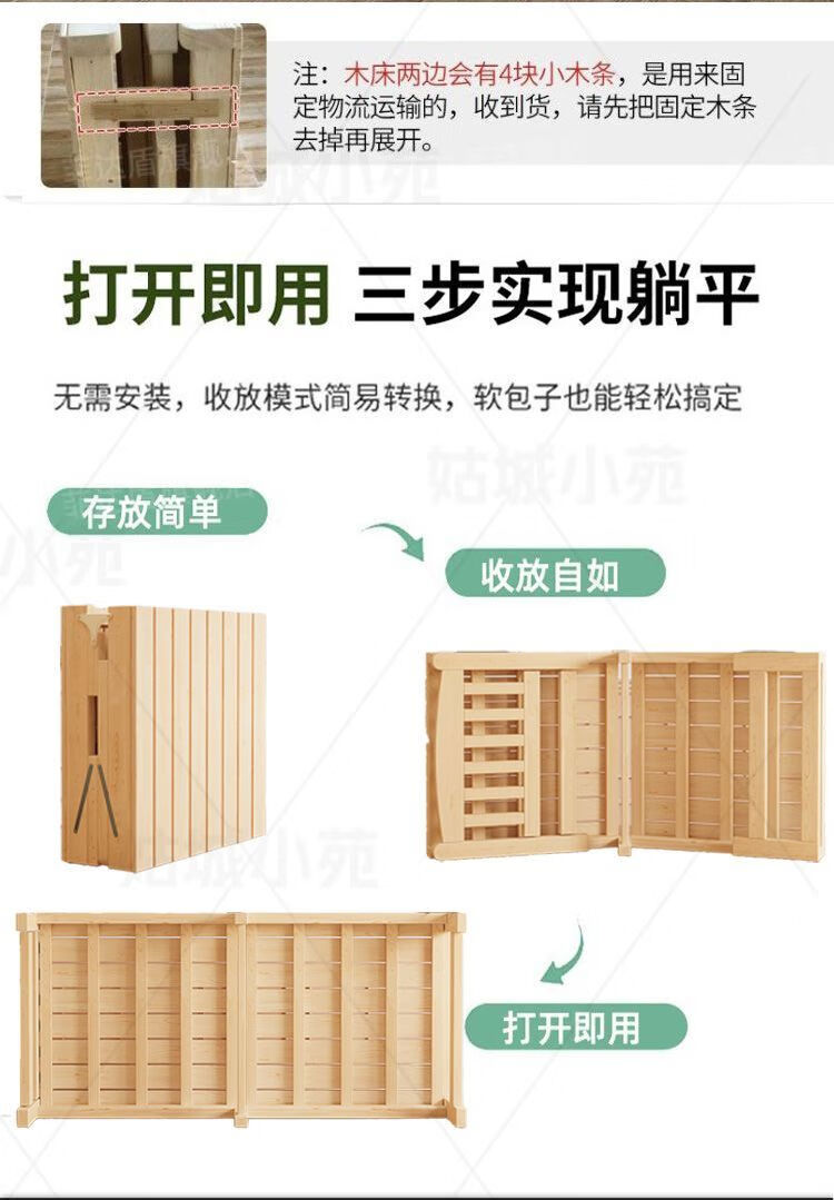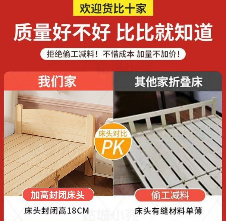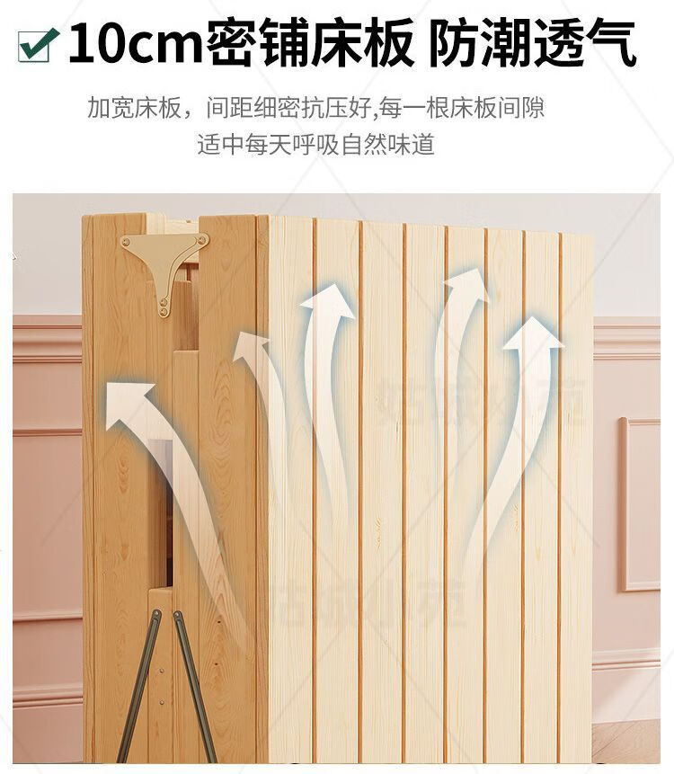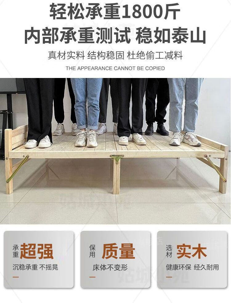 倘然之家实木可折叠小床拼装大床儿童小床午休单人床简易出租房儿童拼接床 【可折叠放置】镂空床头-日常款单床(无漆) 宽60长196高36cm【全实木-不用安装】