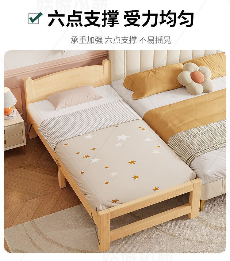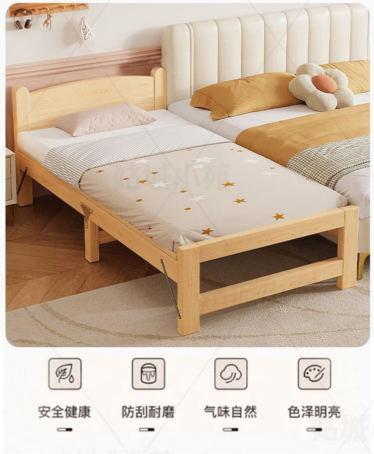 倘然之家拼接床加宽床儿童围栏床实木床带护栏男孩床女孩床婴儿床大床边床 平板款式【送3E椰棕垫】 128长*60宽*40高CM