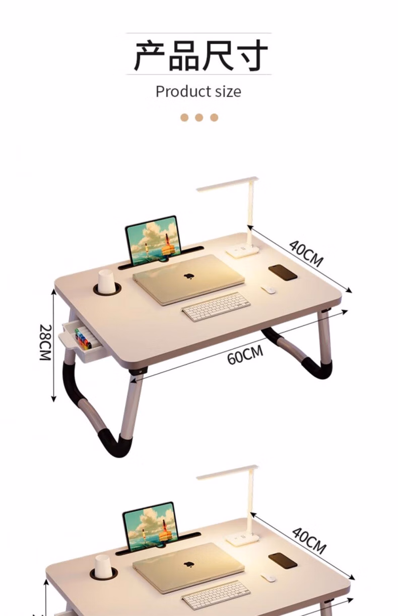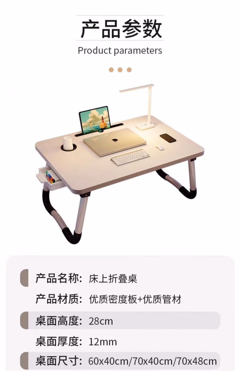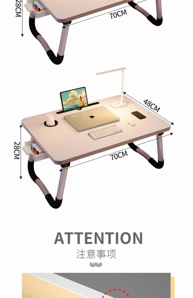 DEATKN德国可折叠床上小桌子学习书桌笔记本电脑桌支架懒人卧室飘窗桌坑 中号灰色 - 长58*宽30*高 28cm