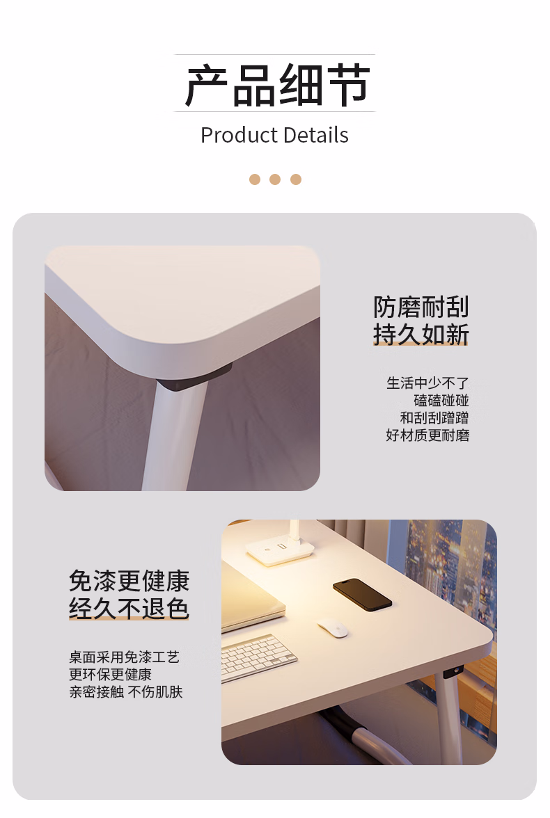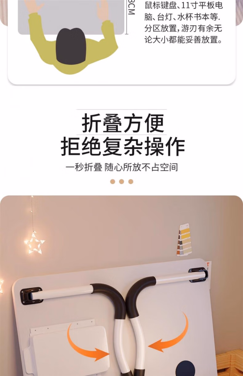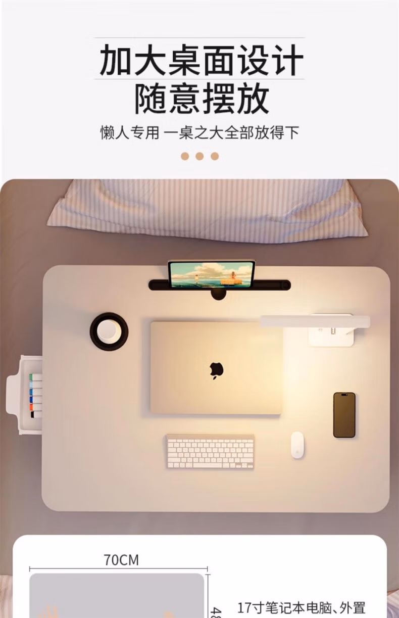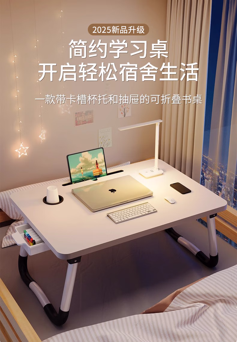 DEATKN德国可折叠床上小桌子学习书桌笔记本电脑桌支架懒人卧室飘窗桌坑 中号灰色 - 长58*宽30*高 28cm