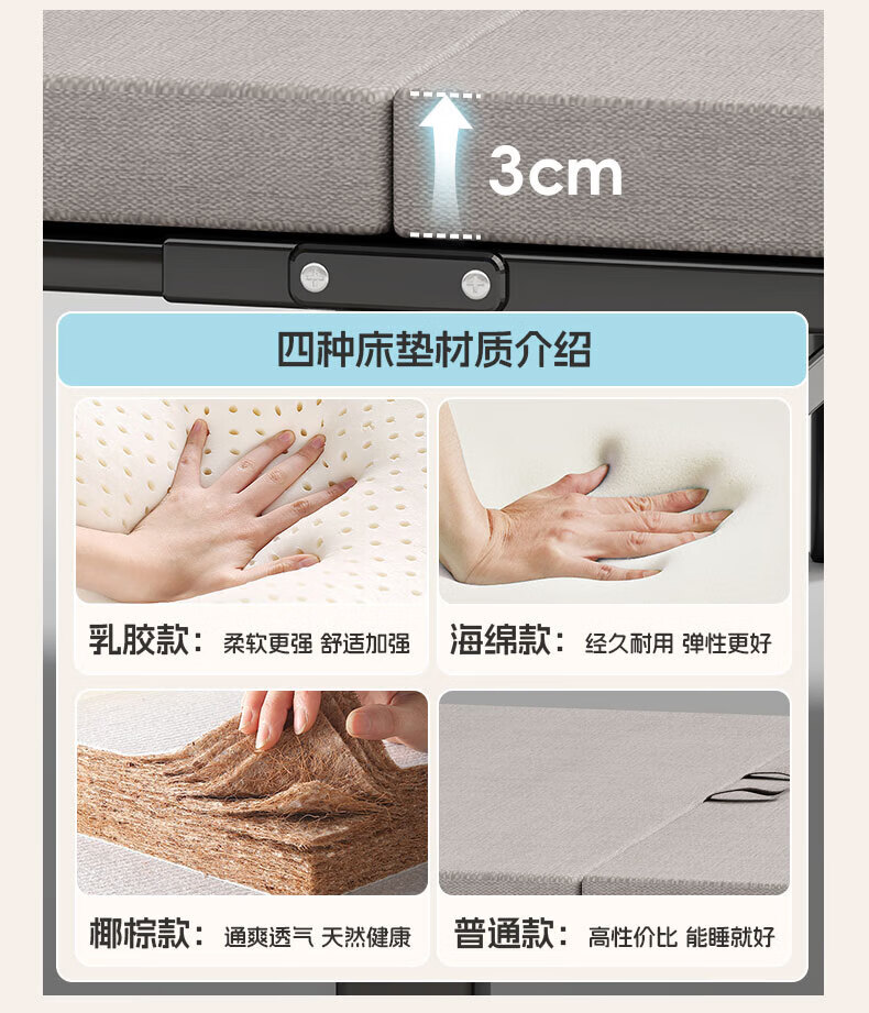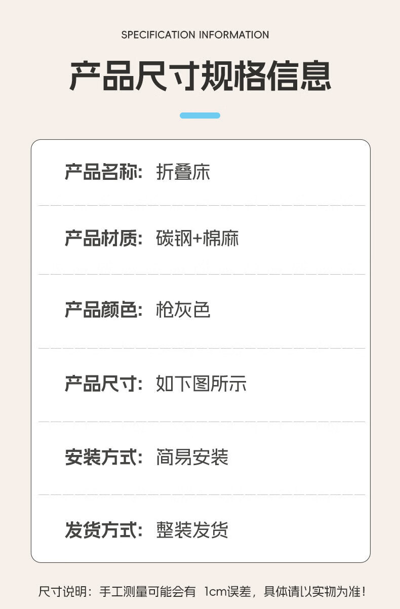 木格格折叠床午休单人床办公室午睡床四折海绵床医院陪护床简易床行军床 枪灰色特厚海绵款-80宽