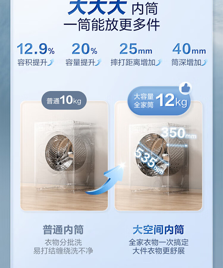 米家小米洗衣机滚筒洗衣机Pro 蓝氧护衣洗 洗烘12kg 精华速洗 智能低温柔烘洗衣机XHQG120MJ102 Pro蓝氧 洗烘12kg