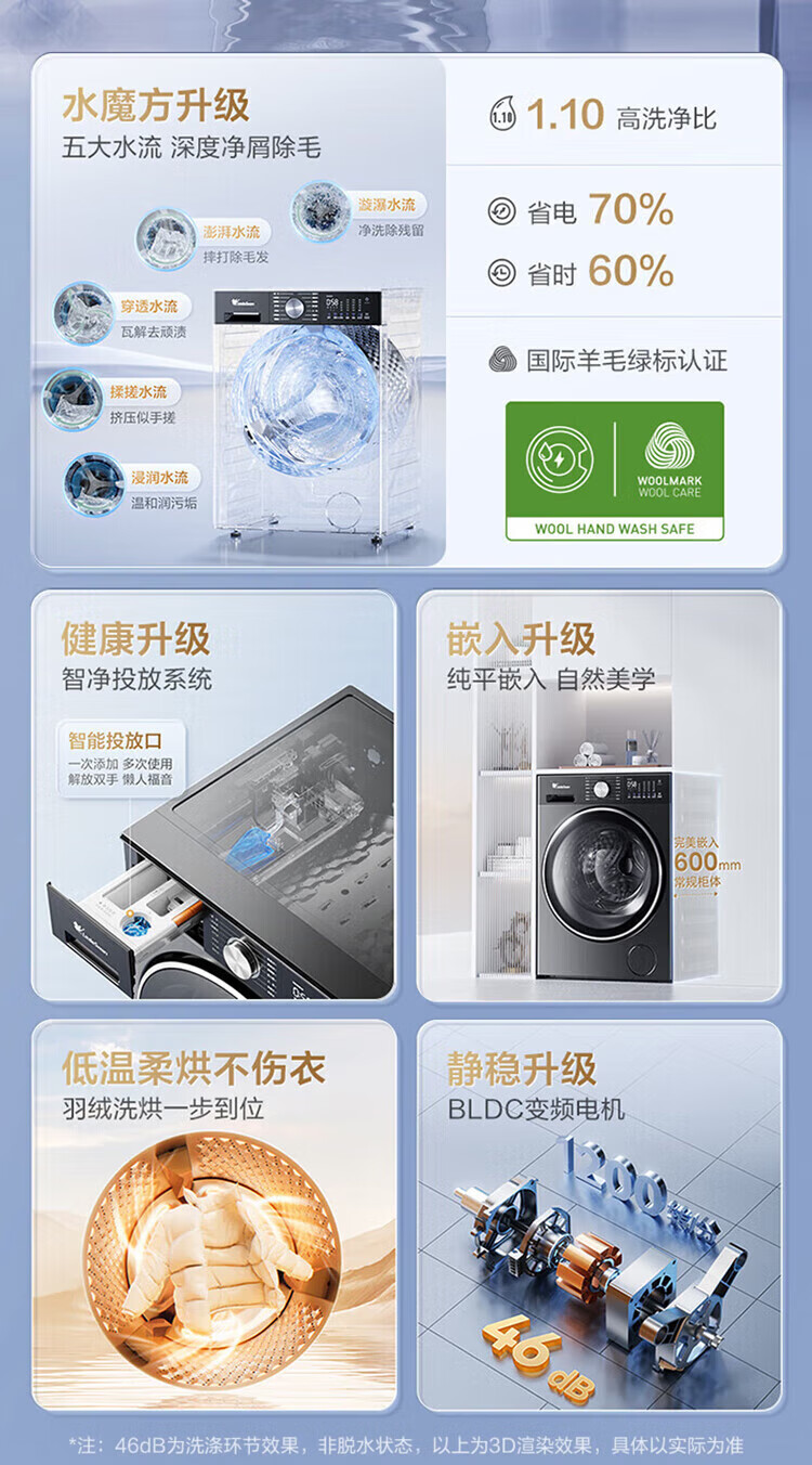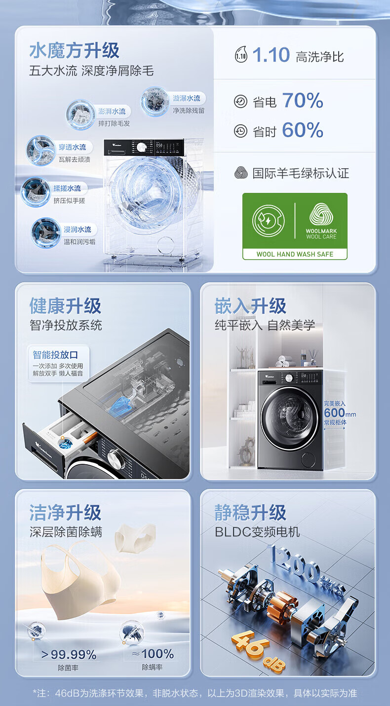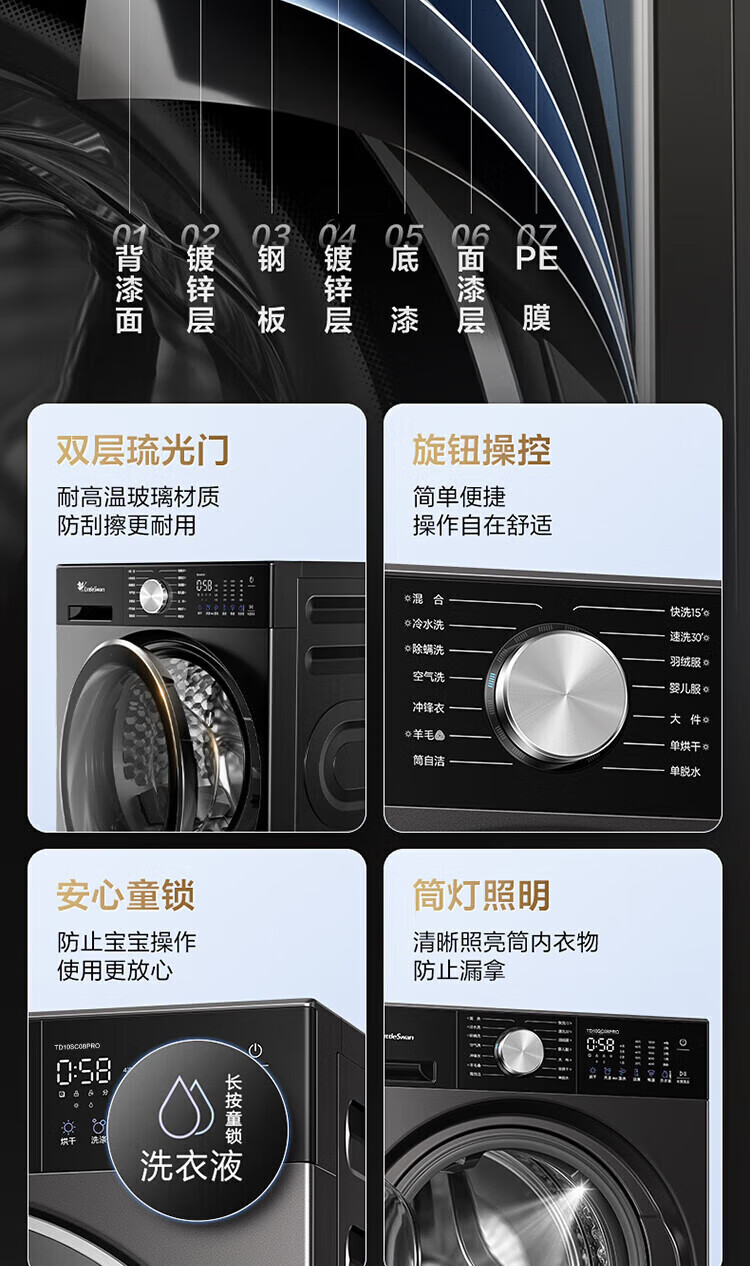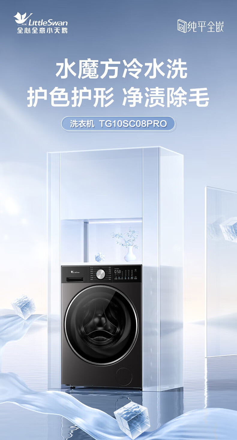 小天鹅全自动滚筒洗衣机家用水魔方超微净泡超薄纯平全嵌10KG洗脱/洗烘一体家用大容量以旧换新 【洗烘+1.1洗净比+水魔方洗烘】 618T