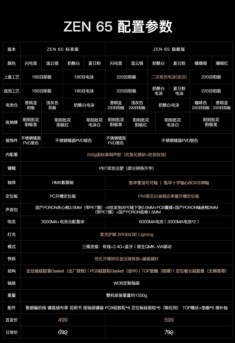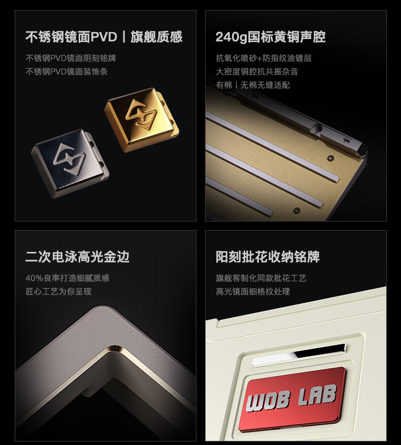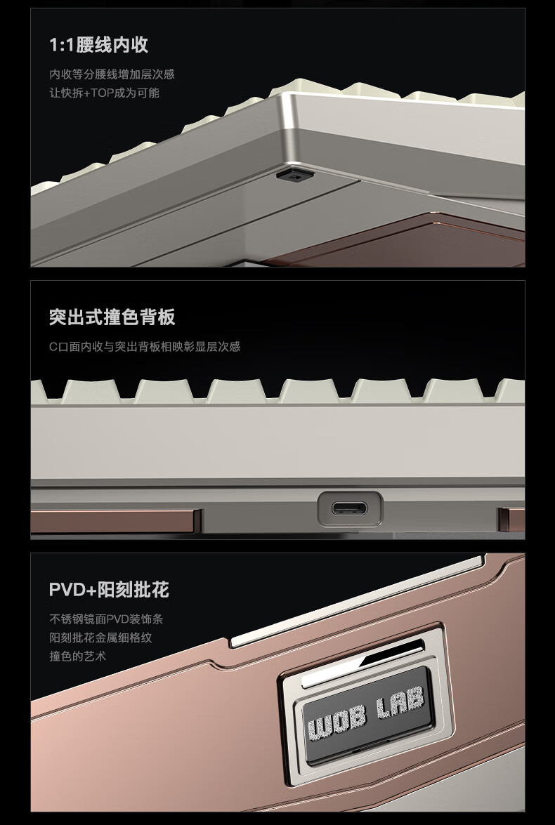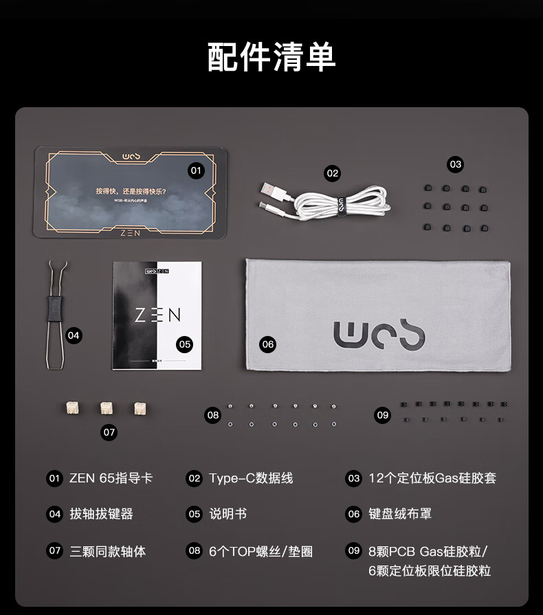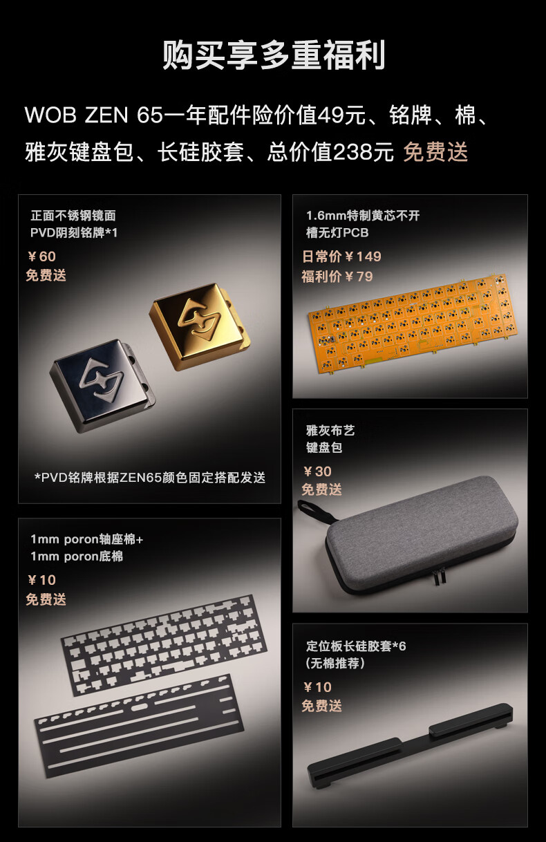 WOB ZEN65客制化机械键盘快拆铜腔铝坨坨有线2.4g蓝牙gasket四种结构top三模电竞游戏办公外设热插拔 闪电黑(雪顶可可轴-ARGB)FR4定|220目