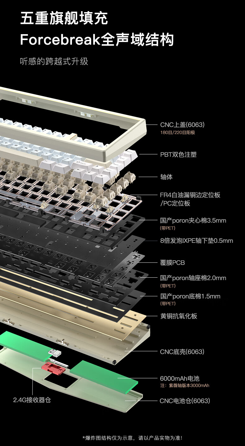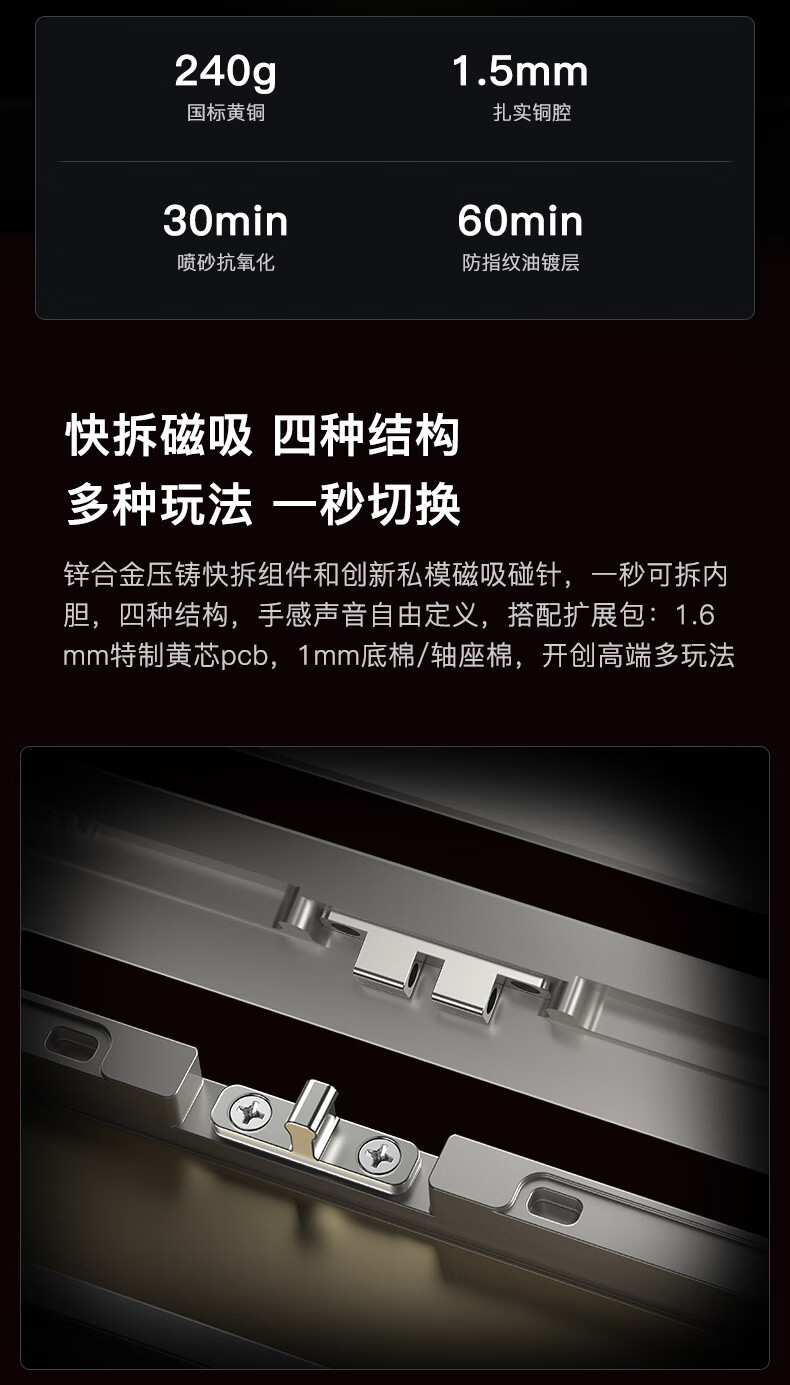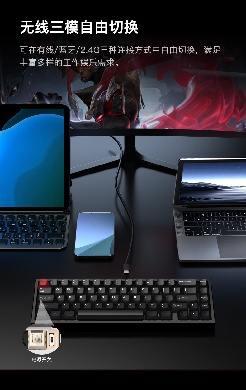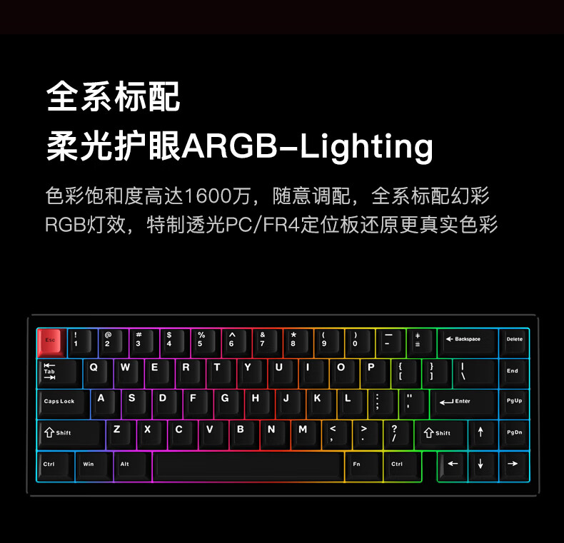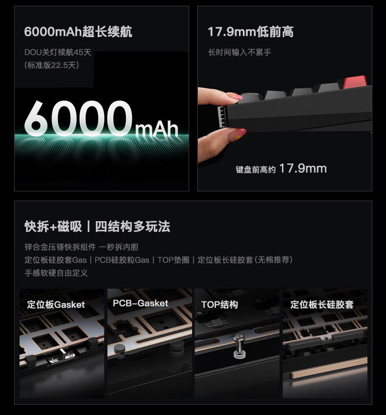 WOB ZEN65客制化机械键盘快拆铜腔铝坨坨有线2.4g蓝牙gasket四种结构top三模电竞游戏办公外设热插拔 闪电黑(雪顶可可轴-ARGB)FR4定|220目