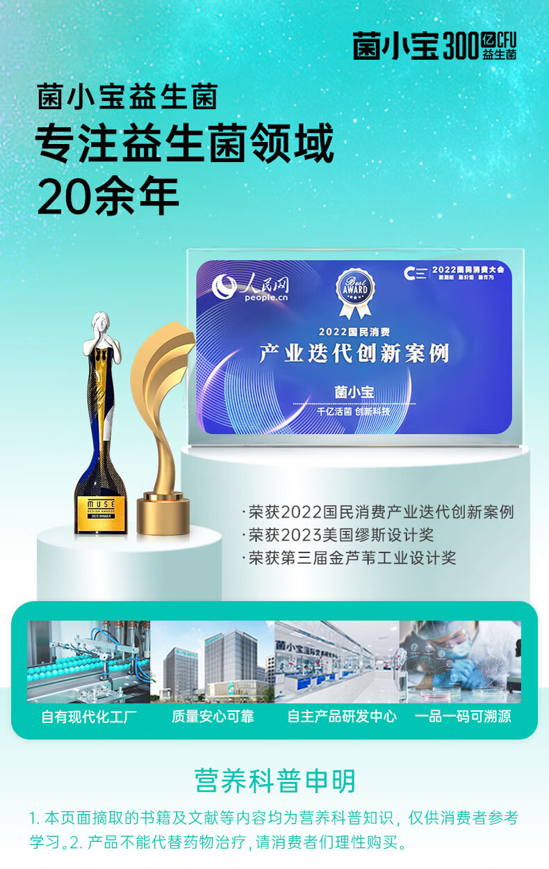 菌小宝益生菌儿童肠胃肠道益生菌 双歧杆菌 益生元益生菌冻干粉30瓶