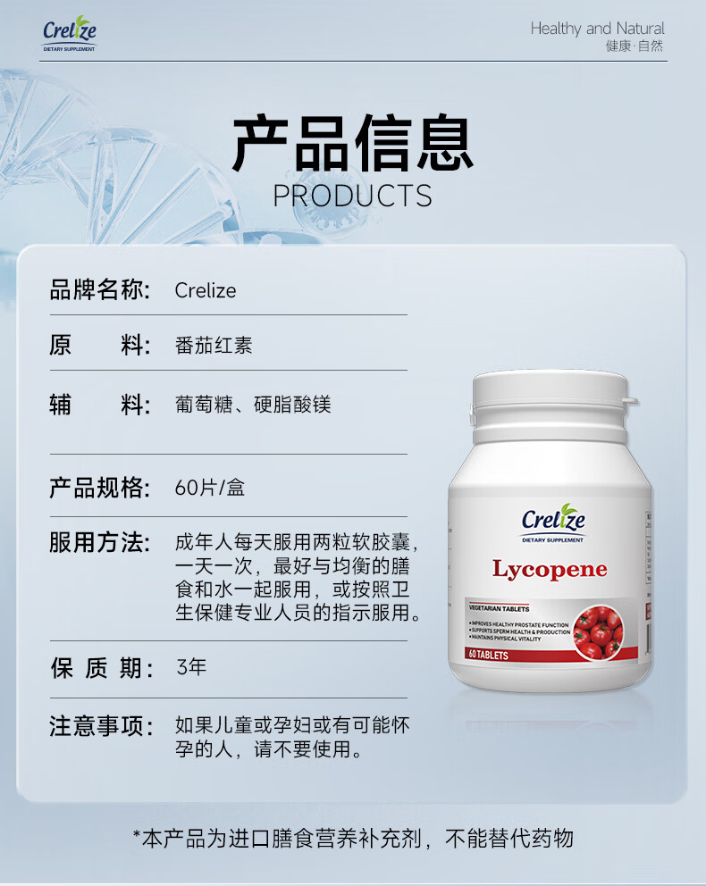 CRELIZE番茄红素片60片 男士备孕健康支持前列腺日常活力支持