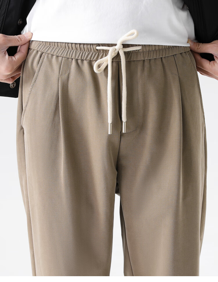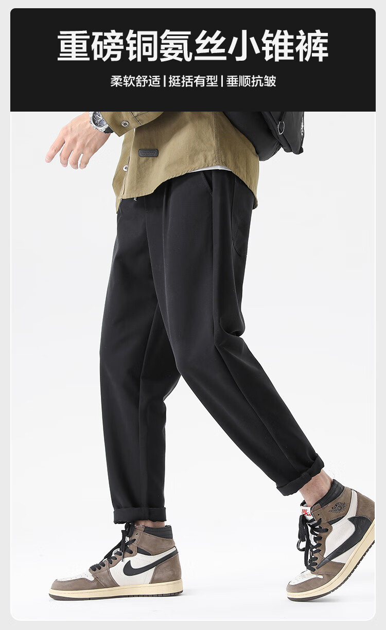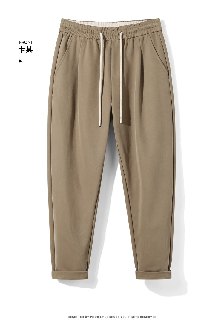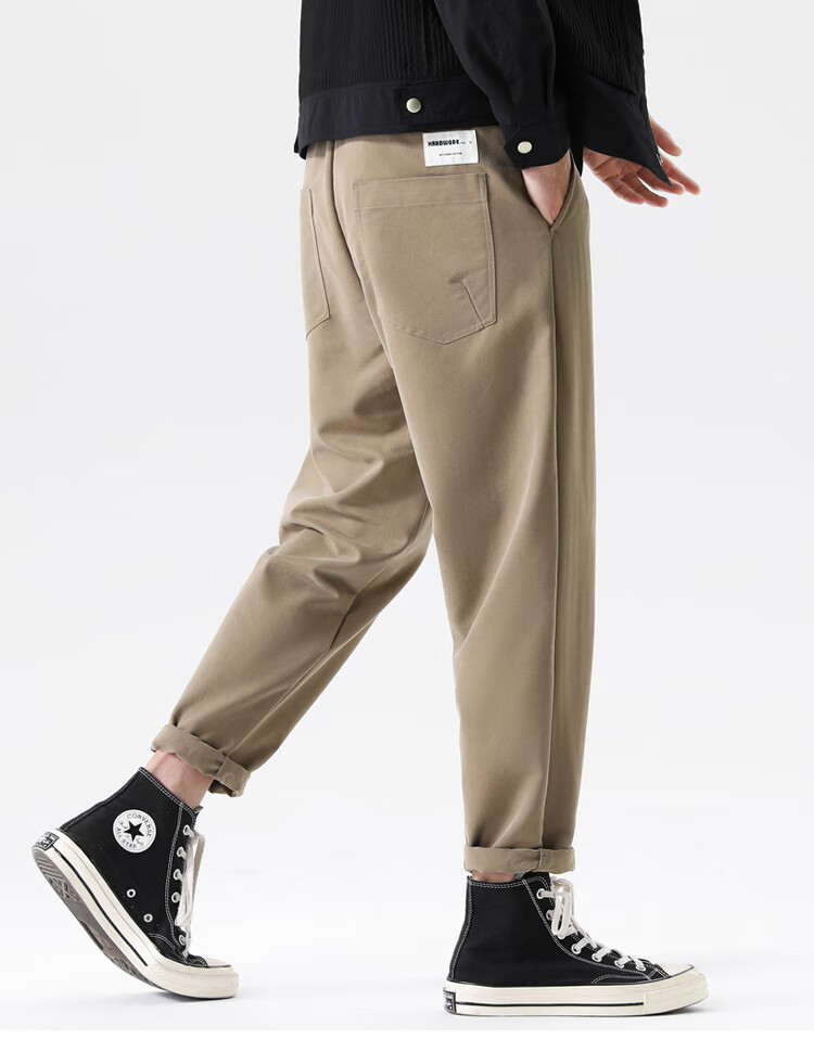 布衣传说 50支抗皱铜氨丝 秋冬款加厚休闲裤子男宽松直筒锥形长裤 卡其加厚 L