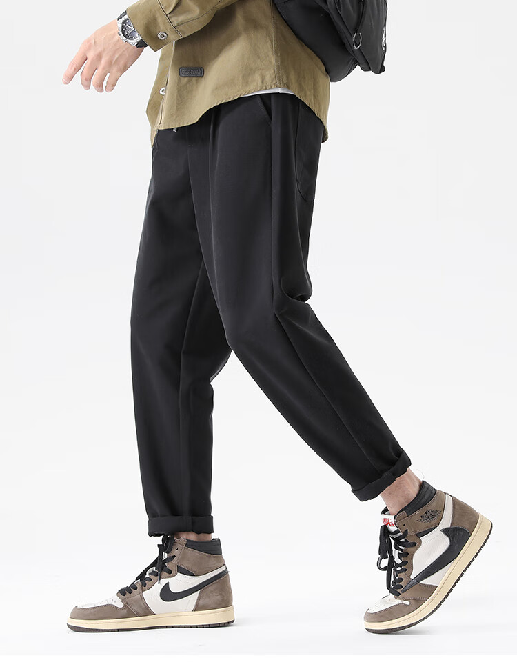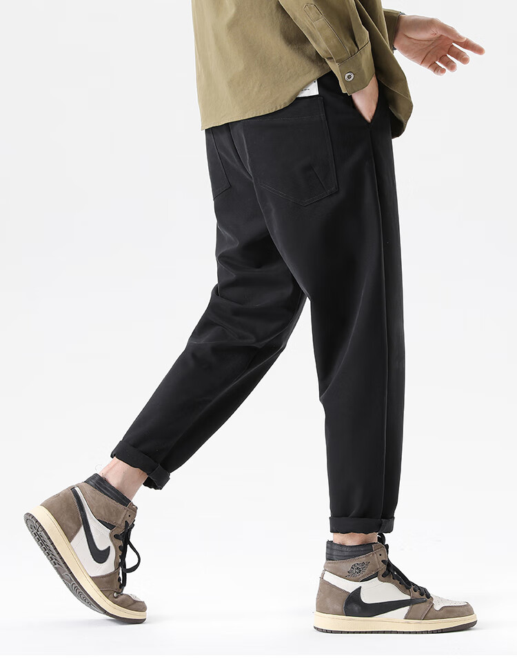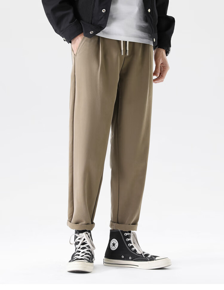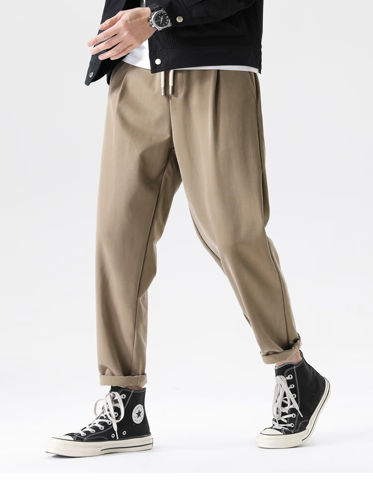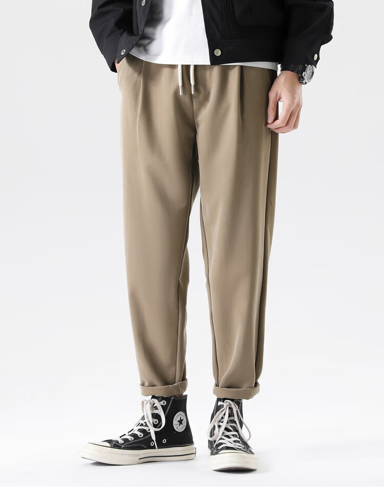布衣传说 50支抗皱铜氨丝 秋冬款加厚休闲裤子男宽松直筒锥形长裤 卡其加厚 L