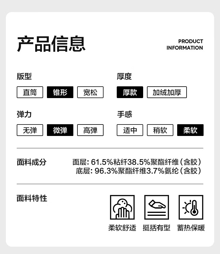 素湃云感热力绒宽松卫裤高弹秋冬保暖休闲裤男女长裤子 漫暮黑 3XL