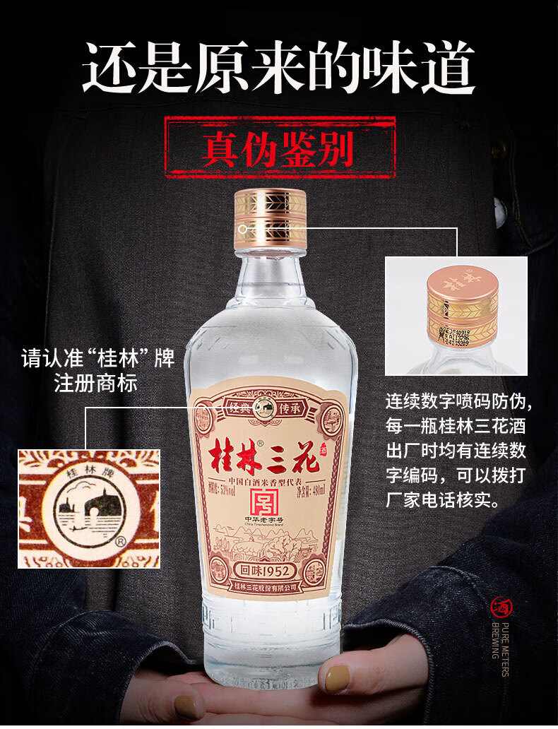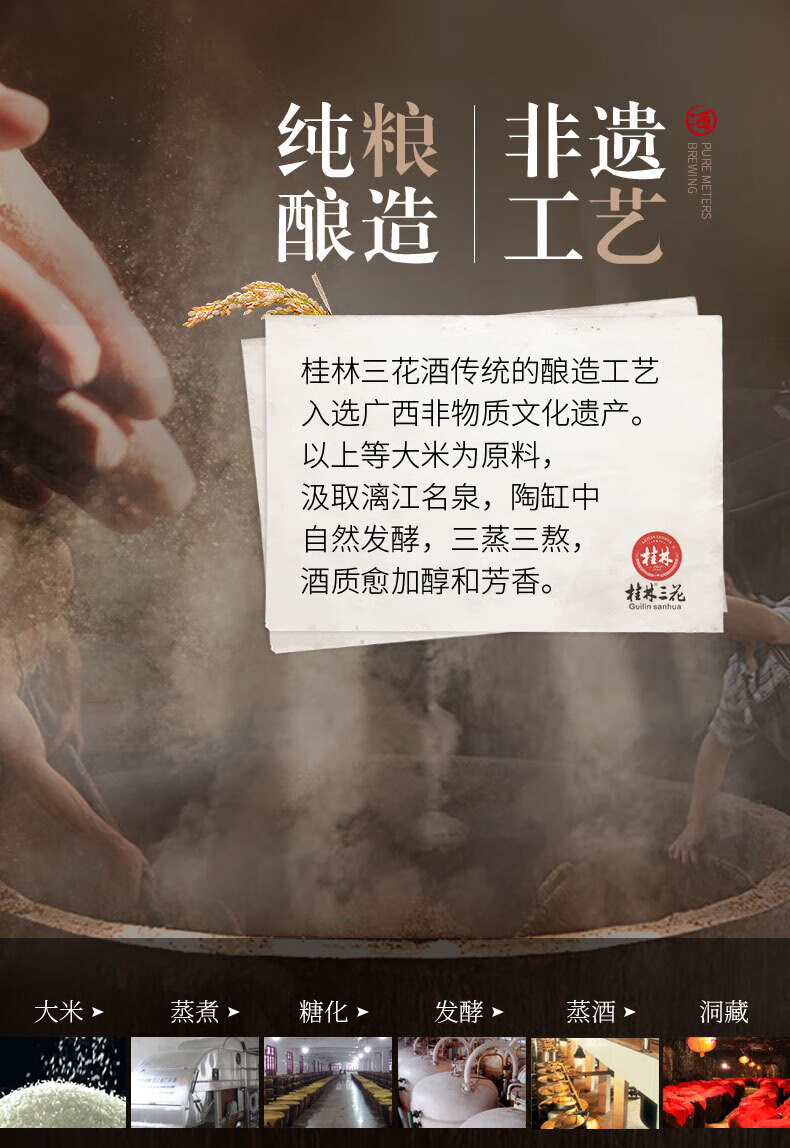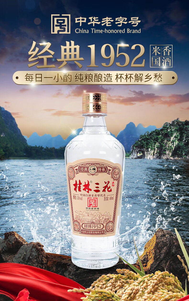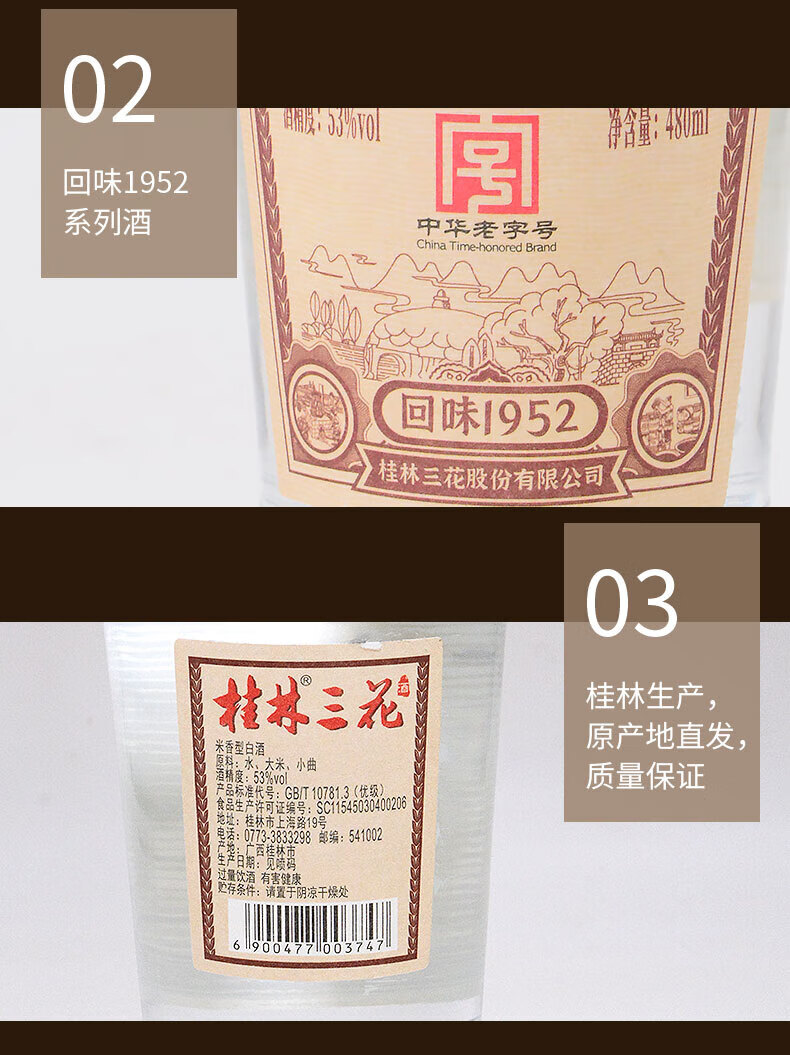 桂林 三花酒 传承 回味1952 米香型白酒 53度 480ml*6 瓶 整箱装 送礼