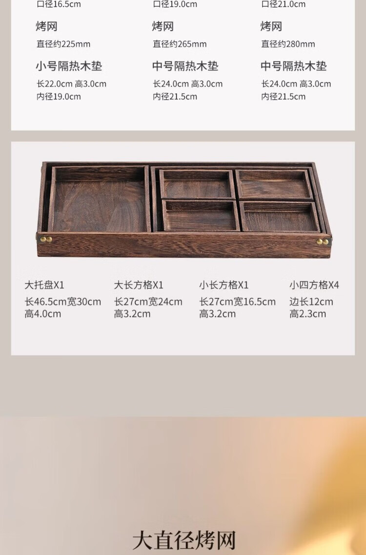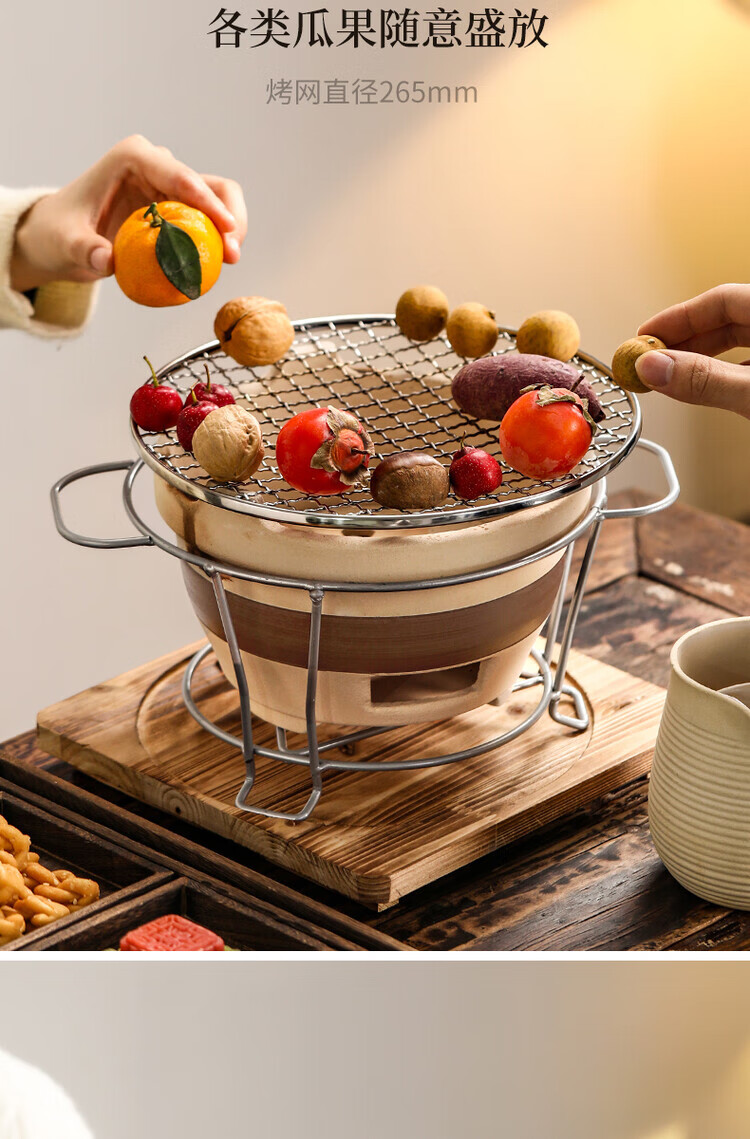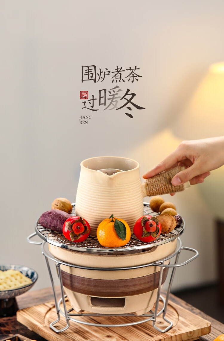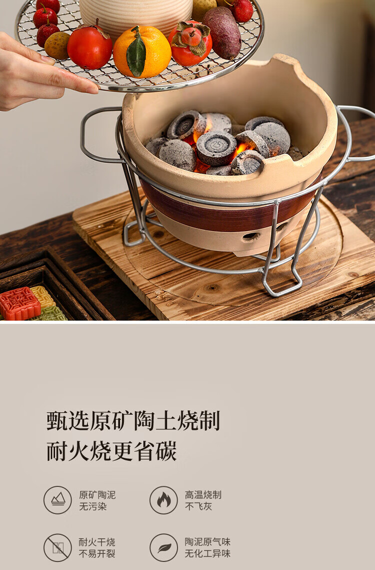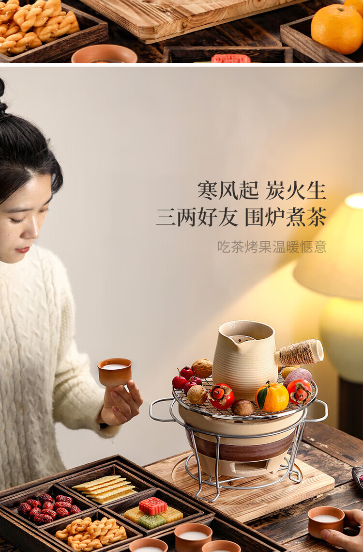 DEATKN德国围炉煮茶炭炉器具全套炭火炉子工具配件专用炭冬天围聚烤火炉 小号碳炉三件套+隔热木垫
