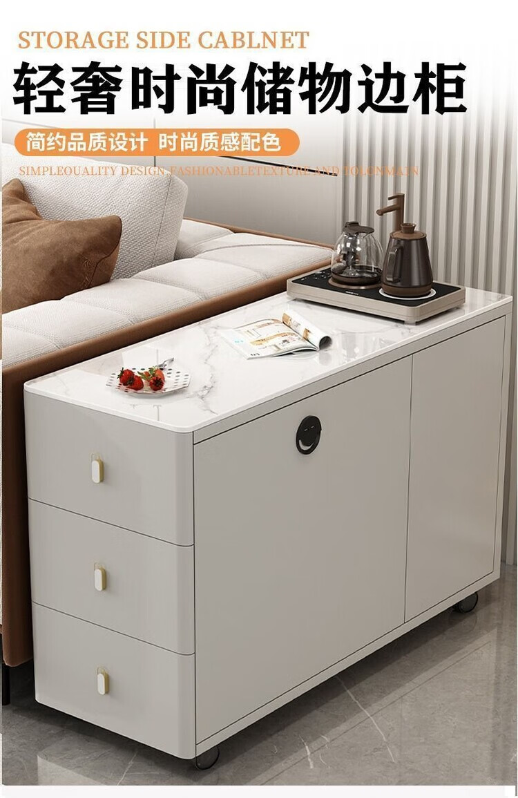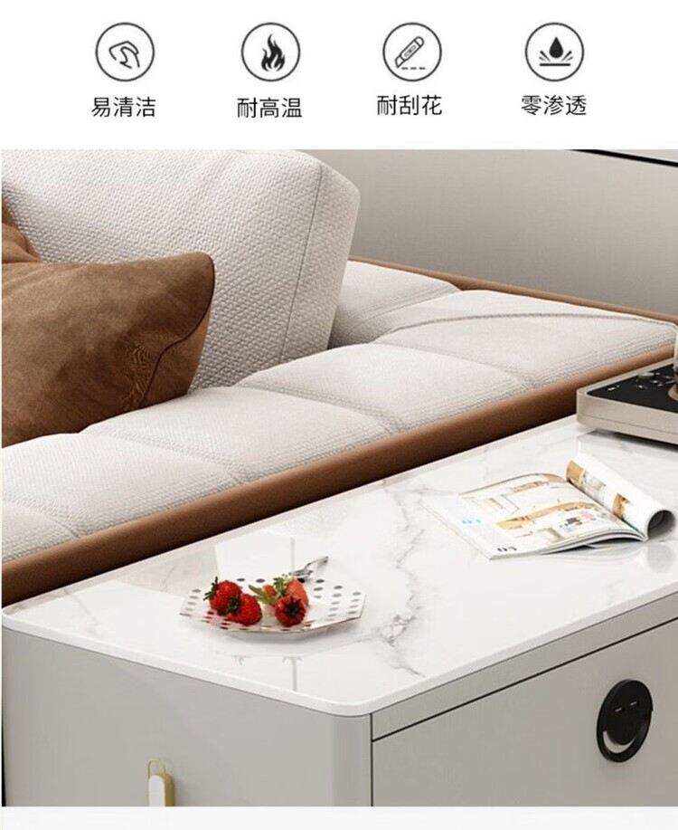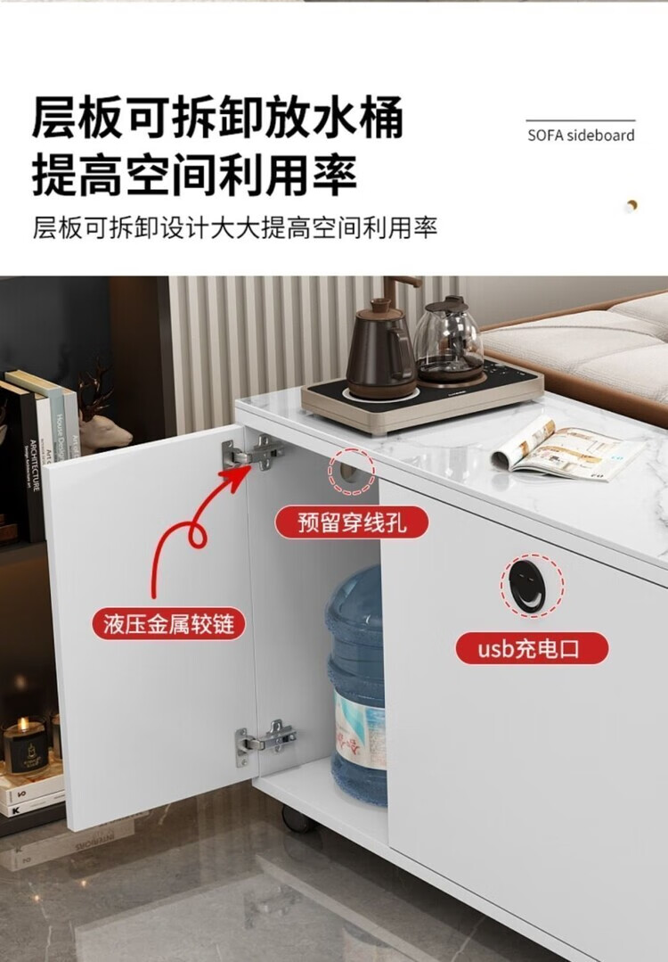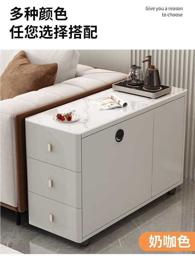 倘然之家客厅收纳置物柜小茶几加高一体自动可移动茶几带轮茶吧机家用家庭 【品质至上】特价款不包上门安装-岩板/玻璃 -两门三抽80*30*60-奶咖色