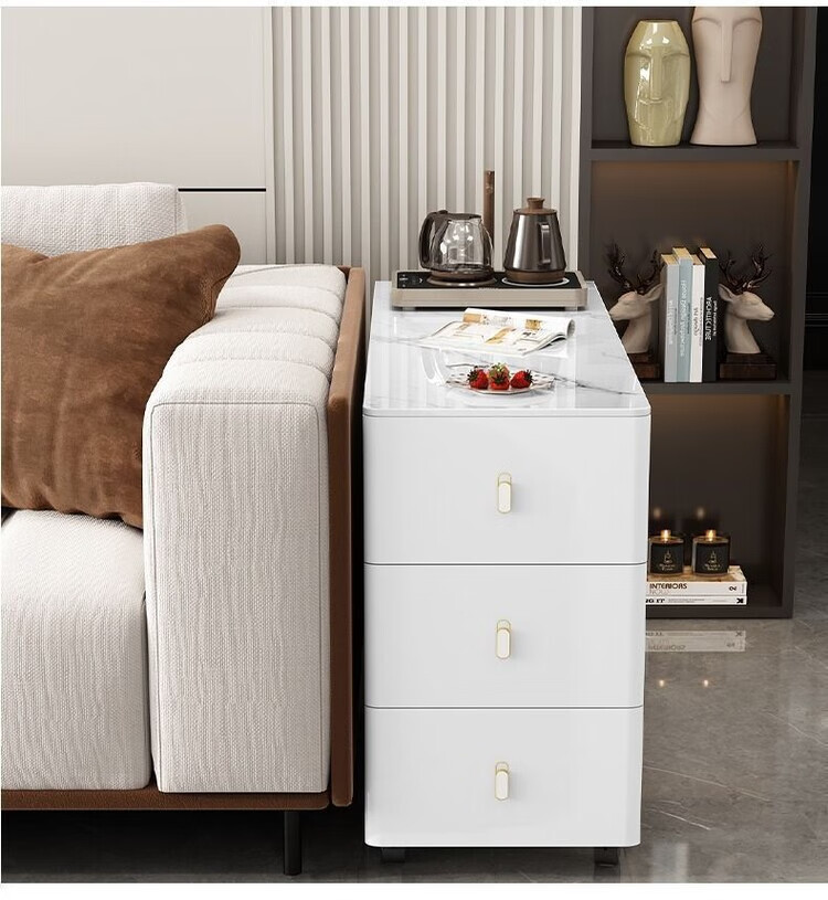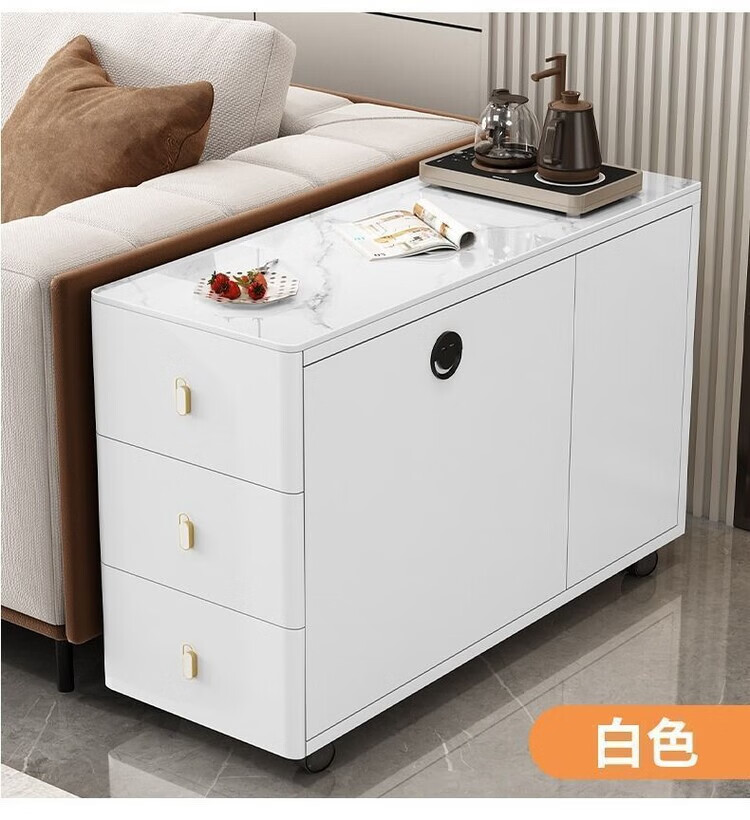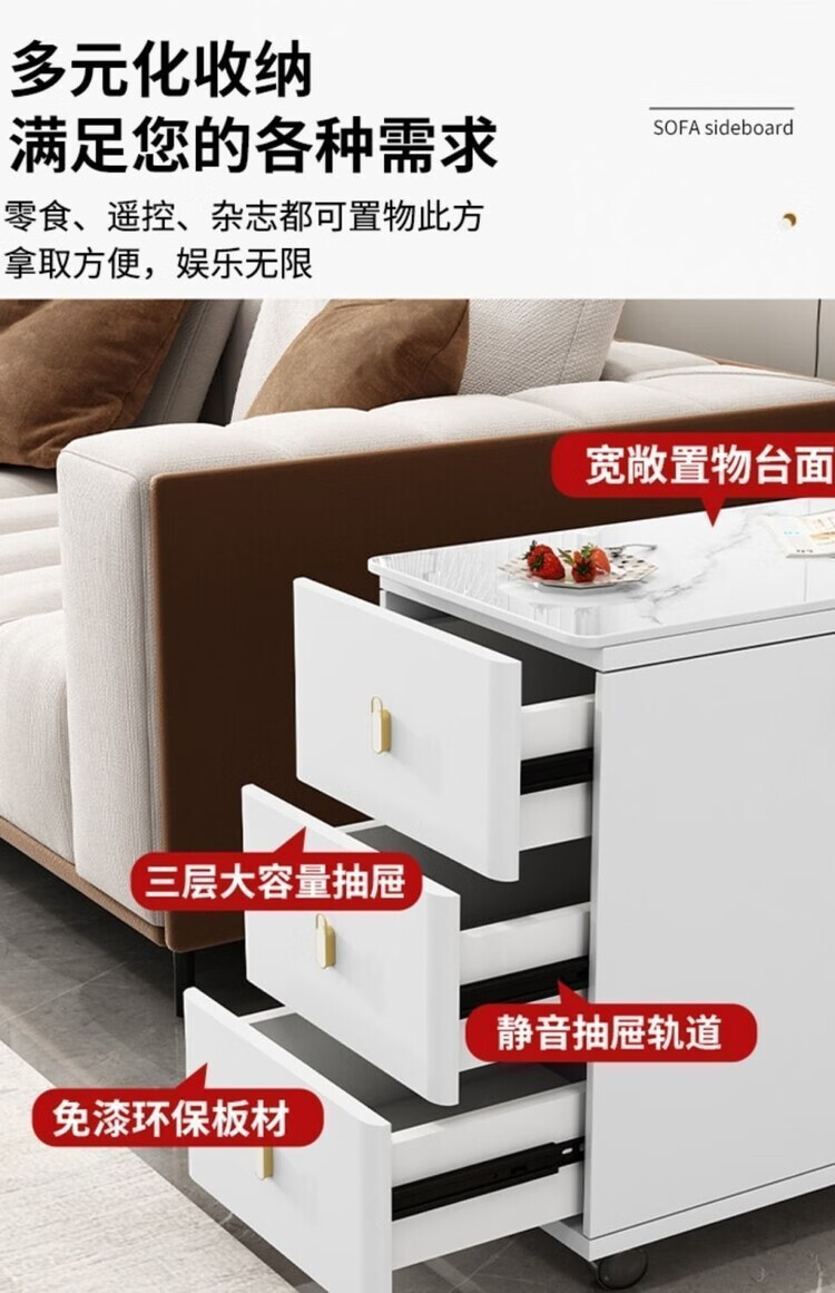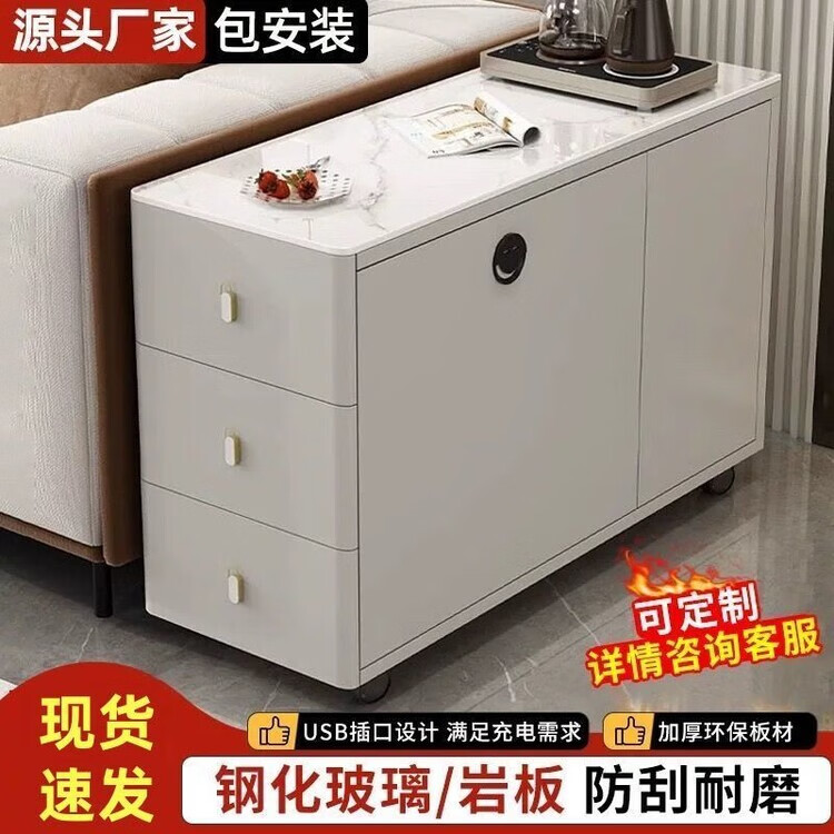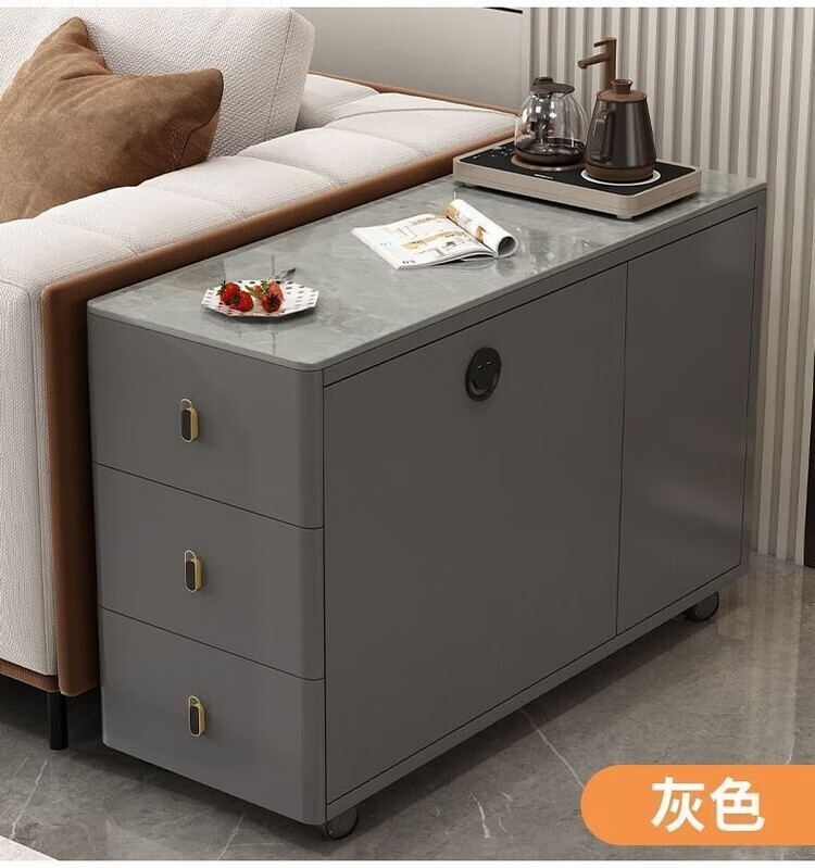 倘然之家客厅收纳置物柜小茶几加高一体自动可移动茶几带轮茶吧机家用家庭 【品质至上】特价款不包上门安装-岩板/玻璃 -两门三抽80*30*60-奶咖色