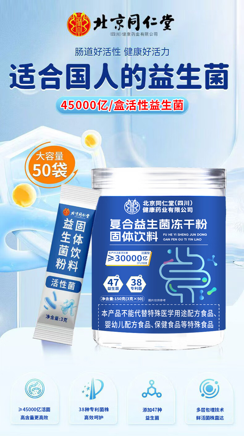 北京同仁堂 益生菌 复合益生菌冻干粉 益生菌成人中老年儿童 男女 【70%的顾客选择】150条 13.5W亿活性菌