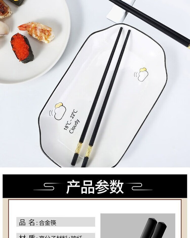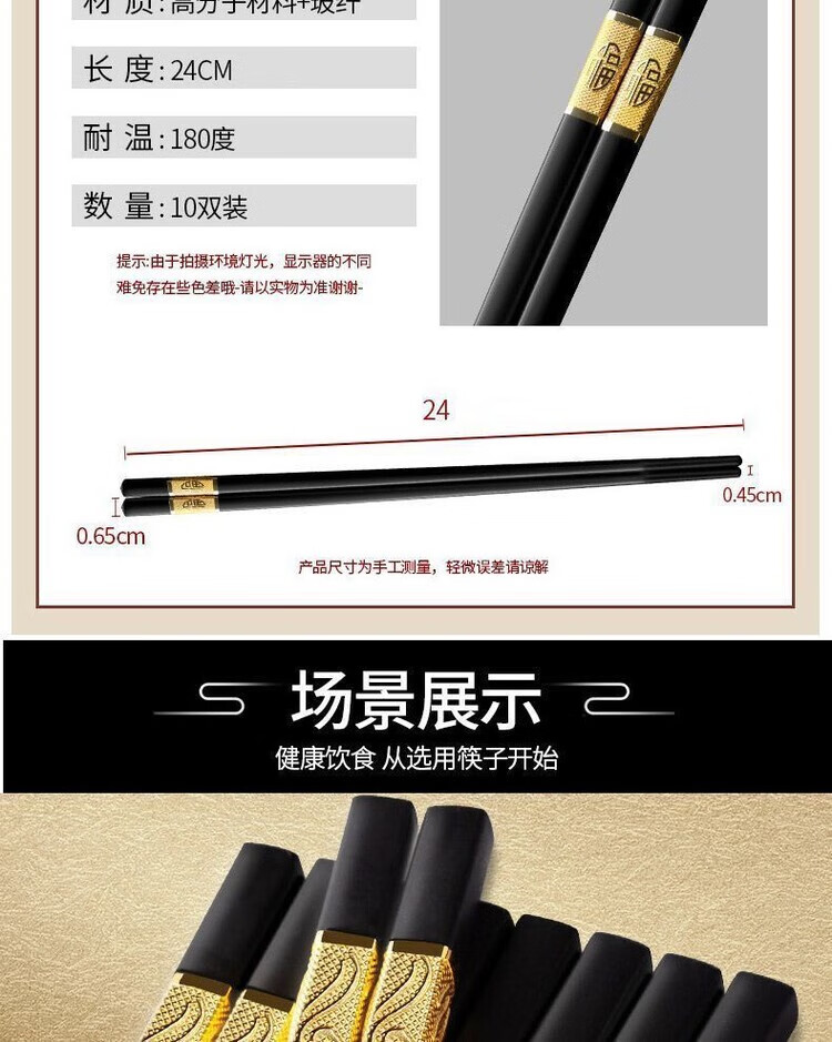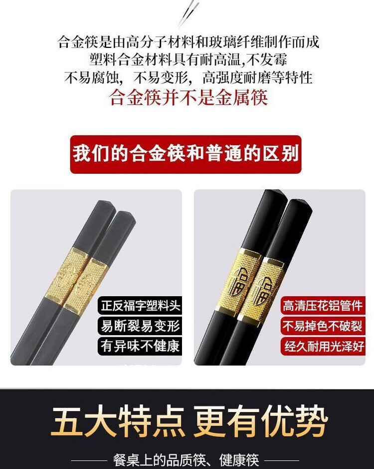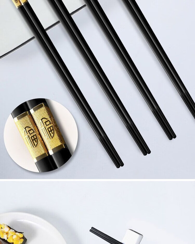DEATKN耐高温酒店发霉抗菌合金筷子家用高档防霉变形家庭防滑无漆餐厅 家用抗菌金福24CM(光泽好经久耐用耐高温) (家用装)10双