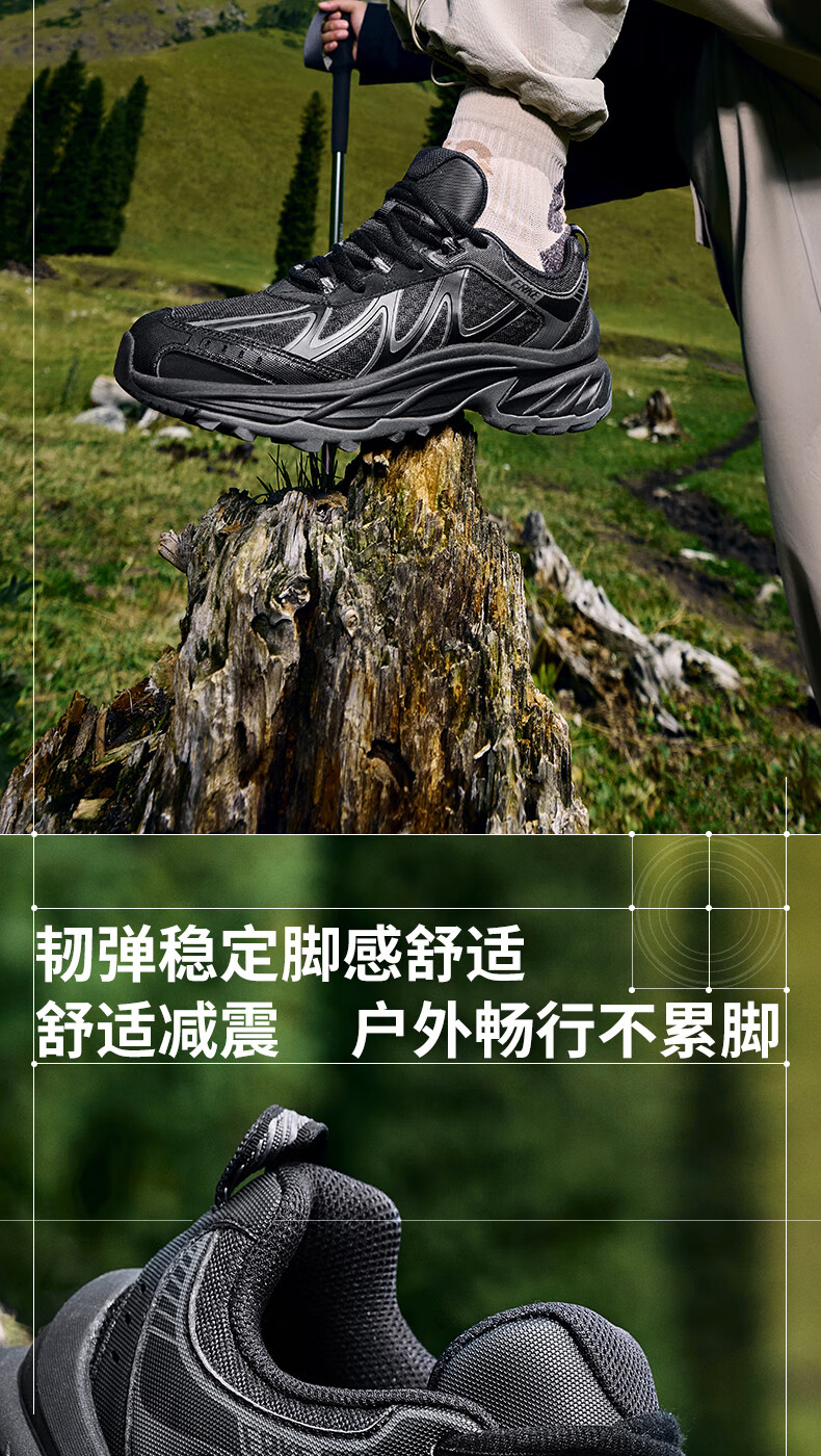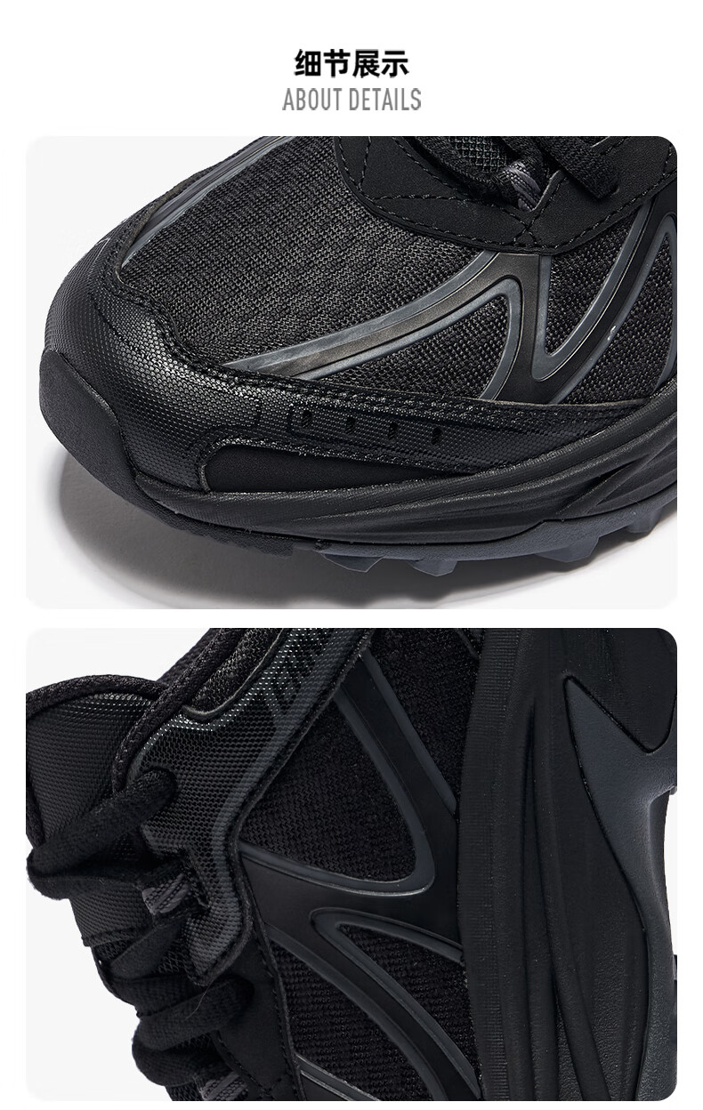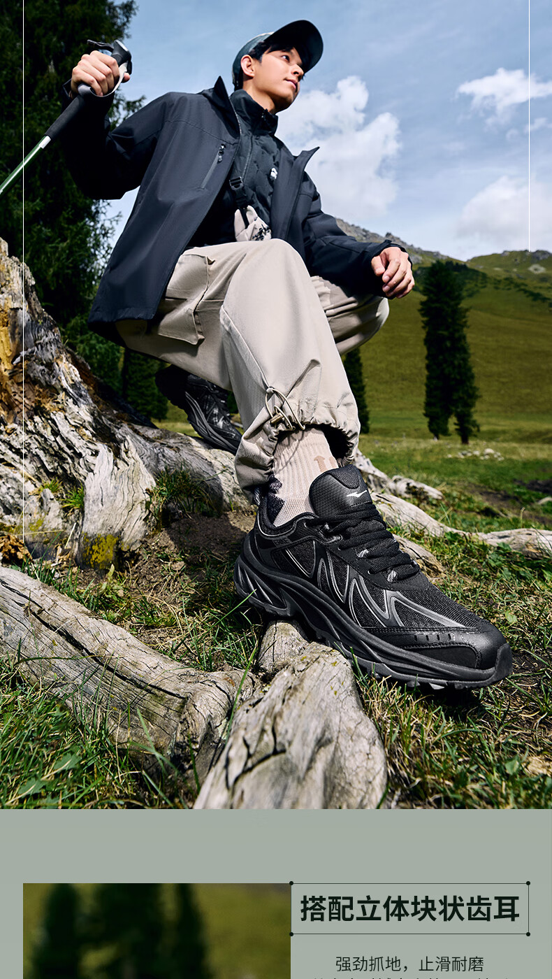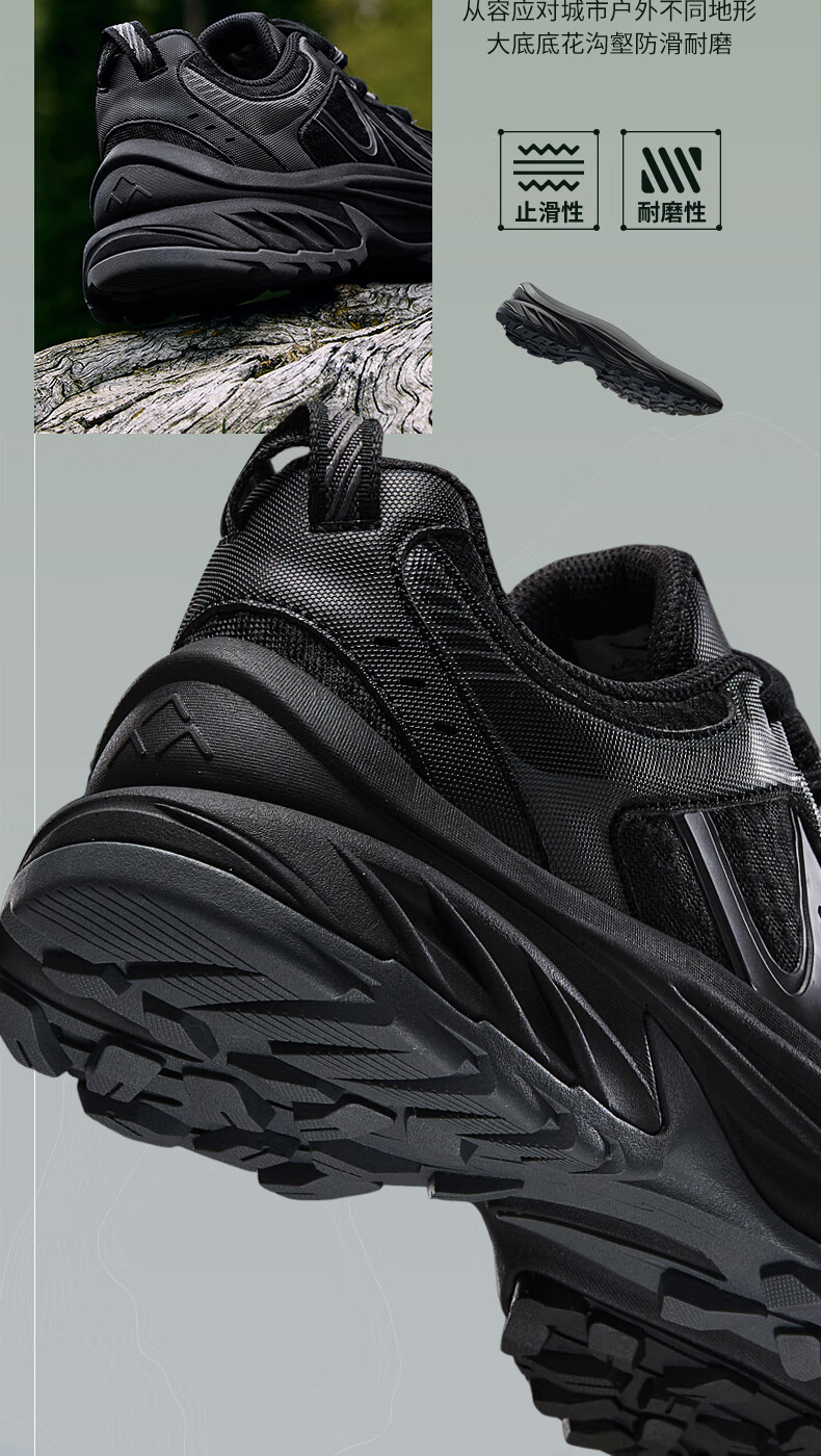 鸿星尔克男鞋秋季复古运动鞋舒适休闲鞋厚底耐磨徒步鞋简约防滑户外鞋觅影 正黑/碳灰 42