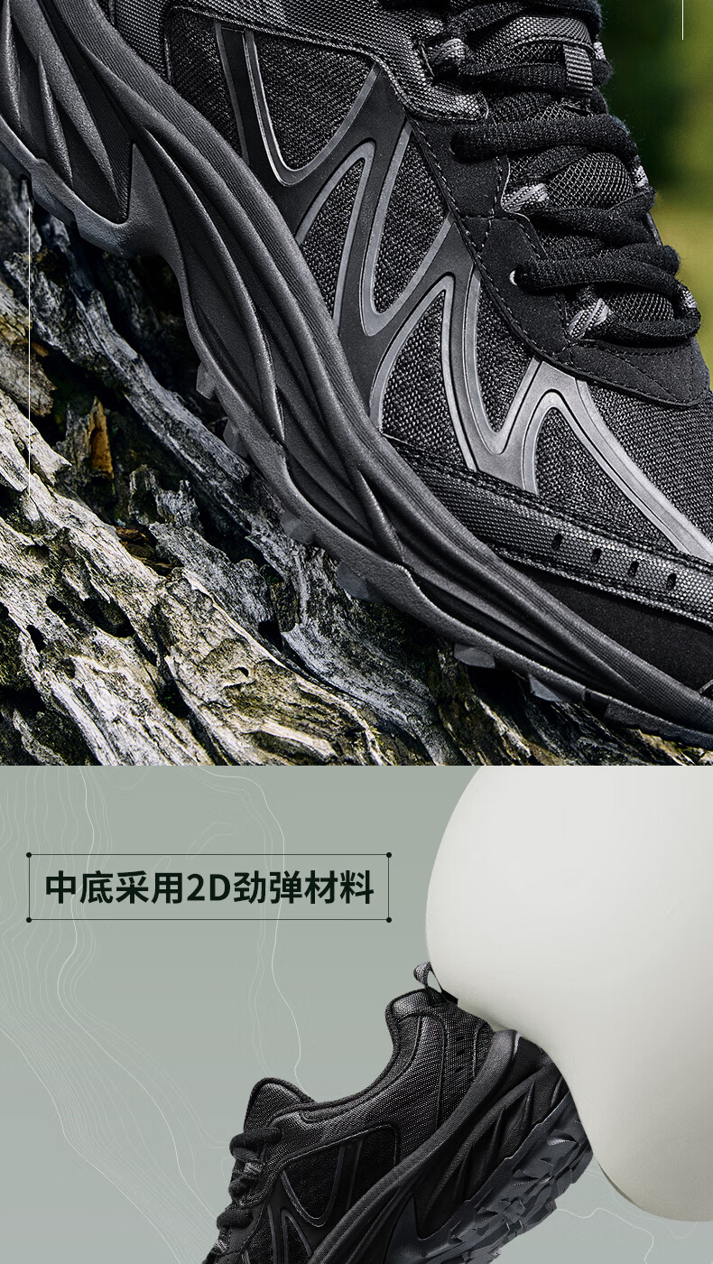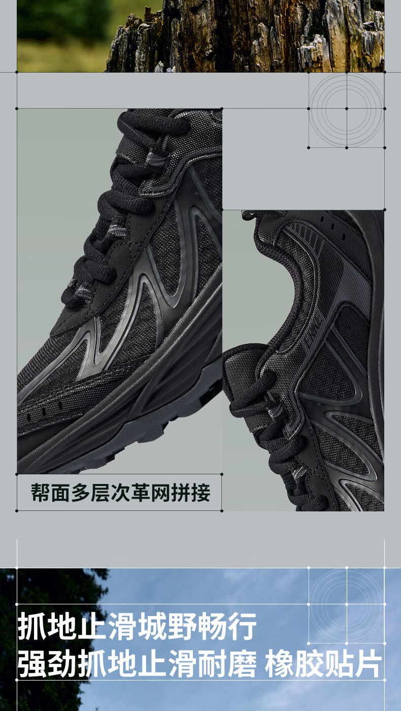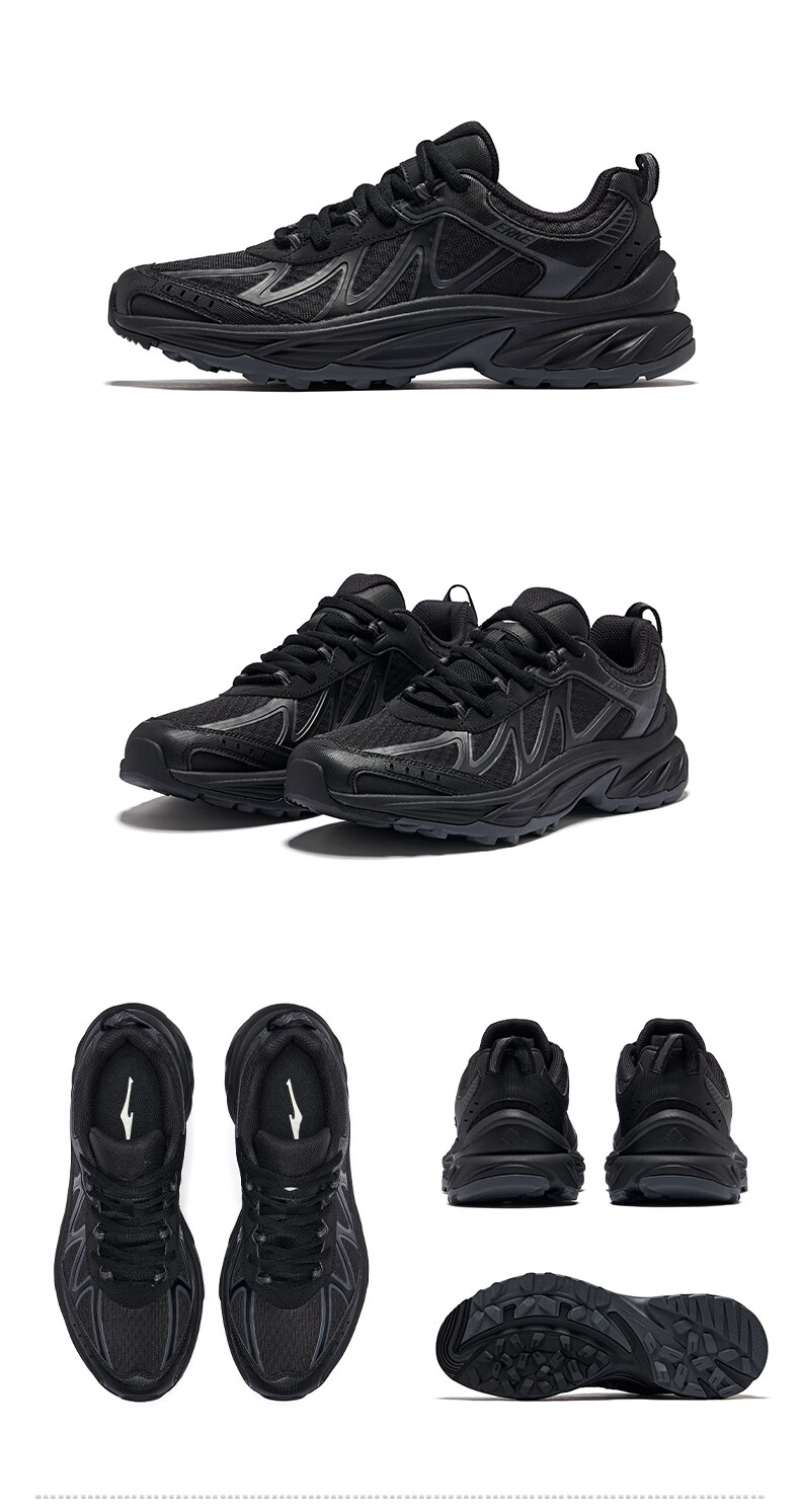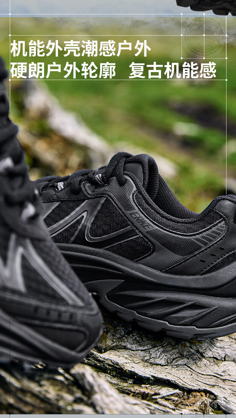 鸿星尔克男鞋秋季复古运动鞋舒适休闲鞋厚底耐磨徒步鞋简约防滑户外鞋觅影 正黑/碳灰 42