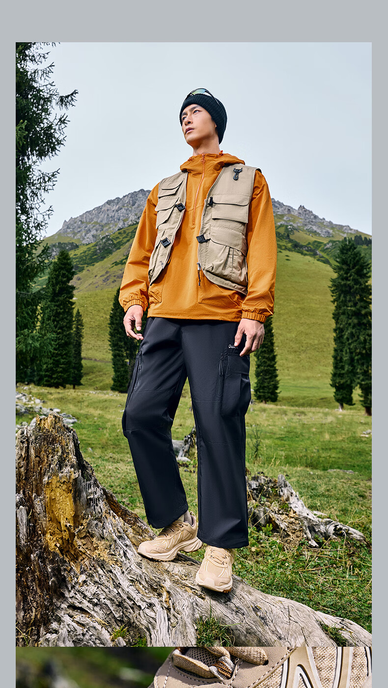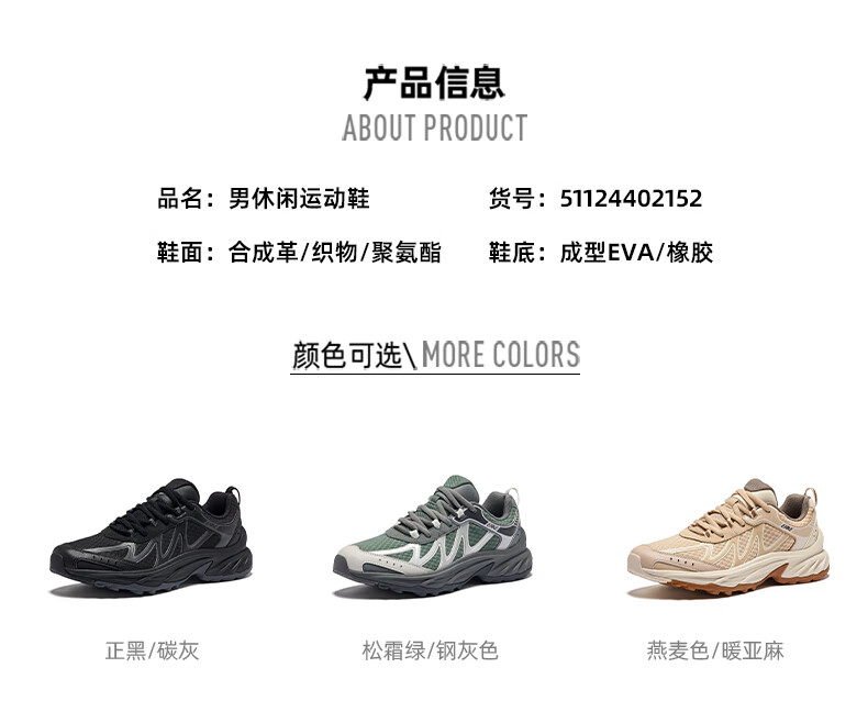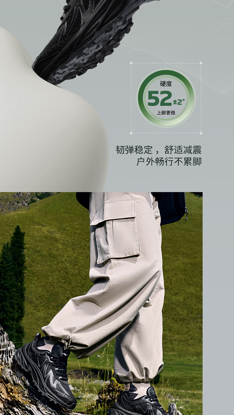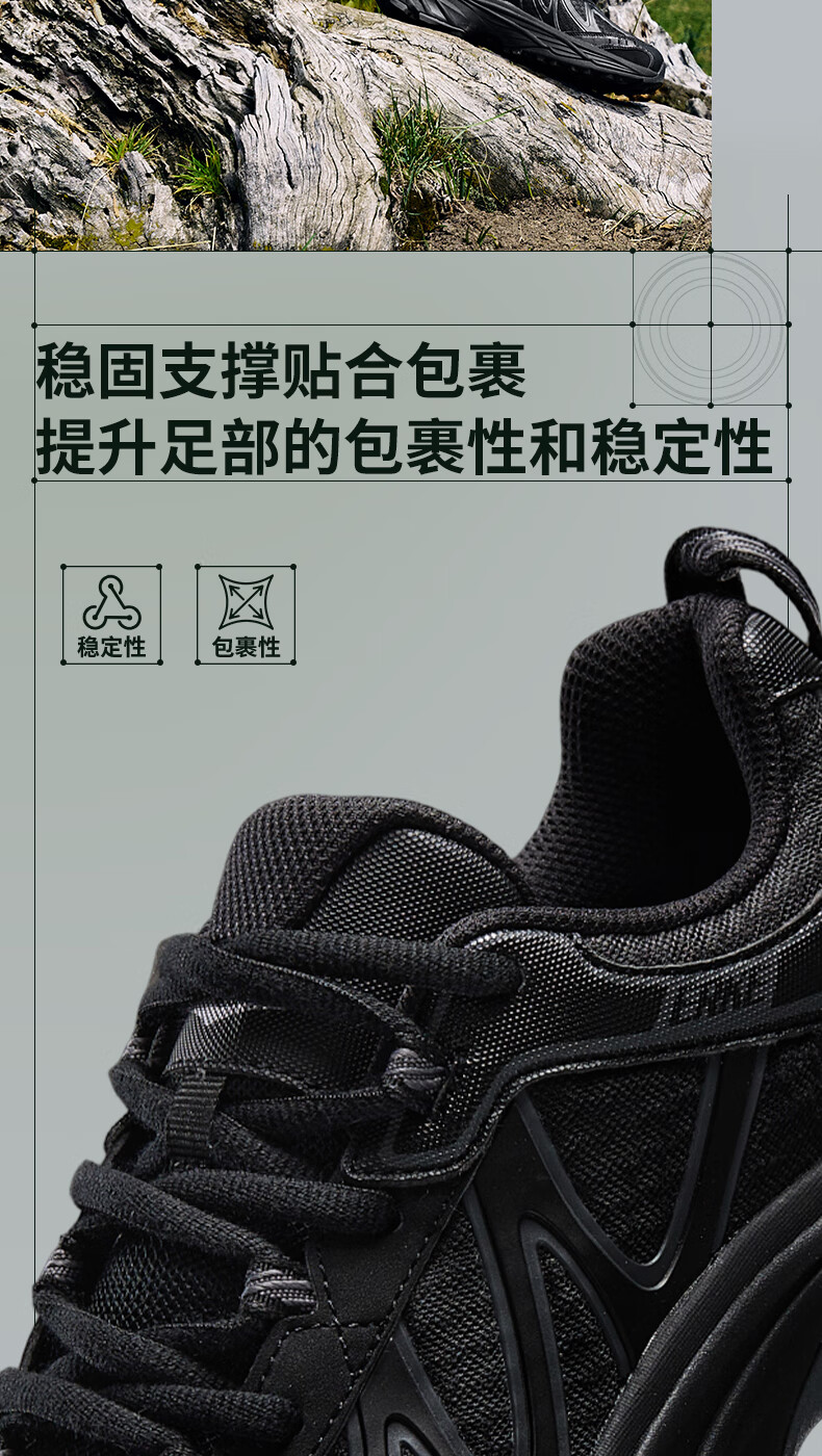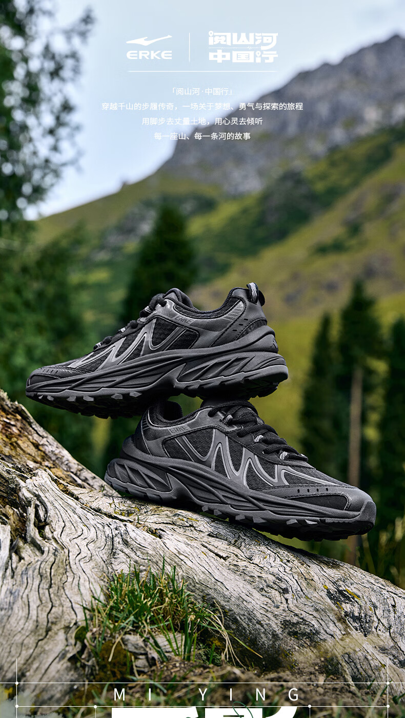 鸿星尔克男鞋秋季复古运动鞋舒适休闲鞋厚底耐磨徒步鞋简约防滑户外鞋觅影 正黑/碳灰 42