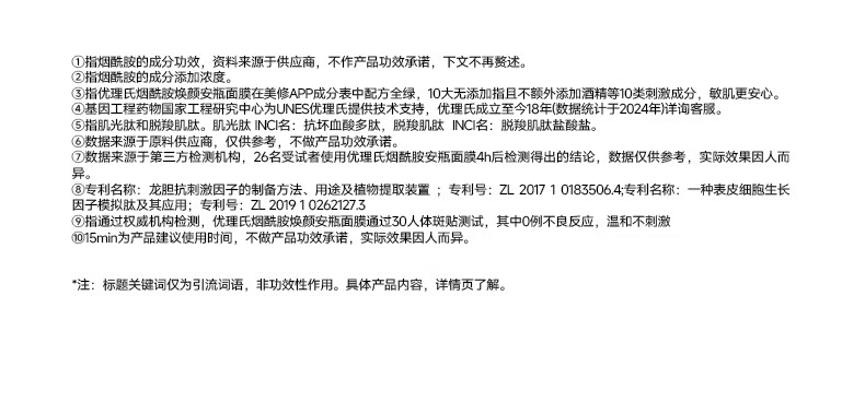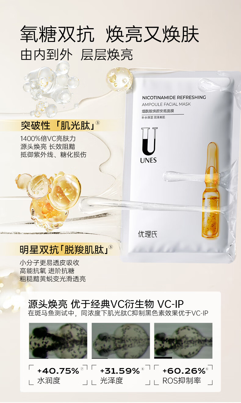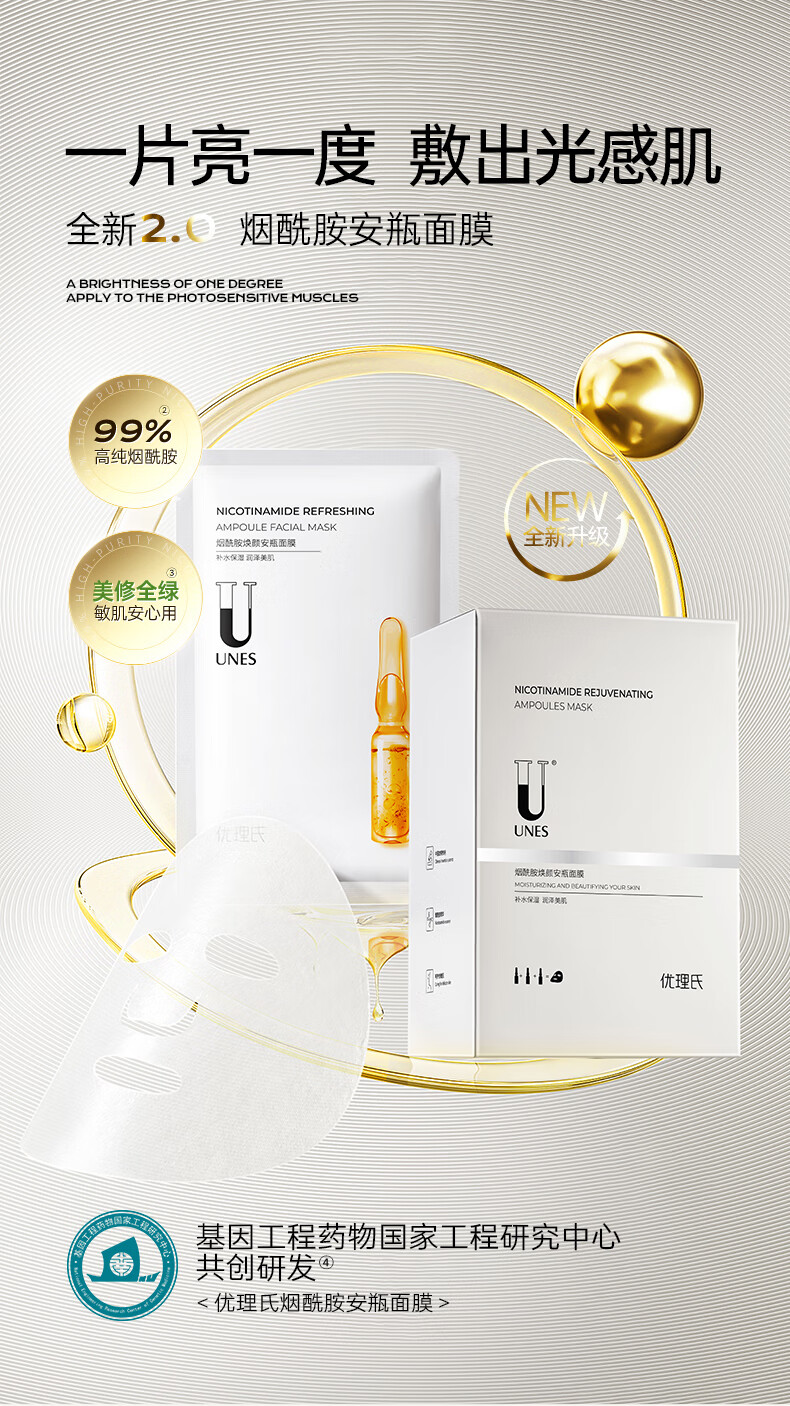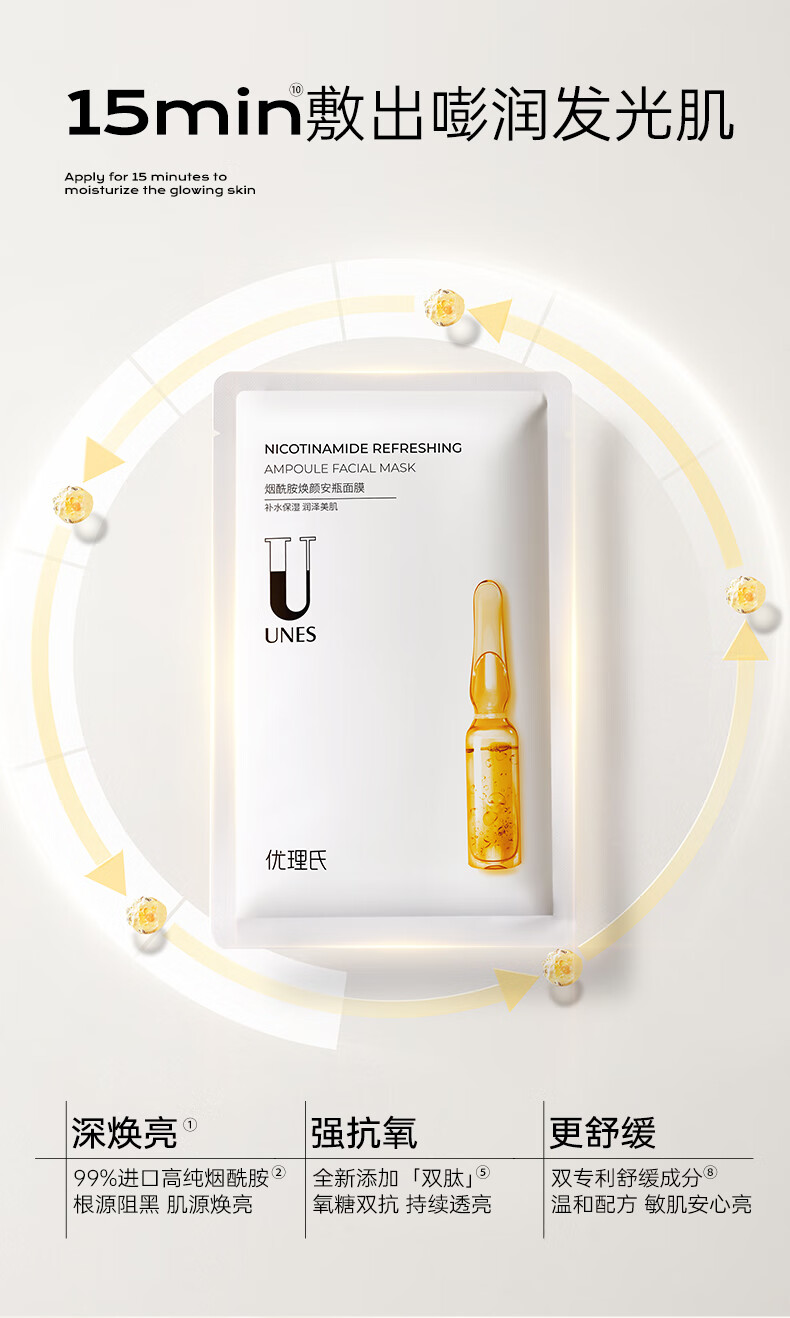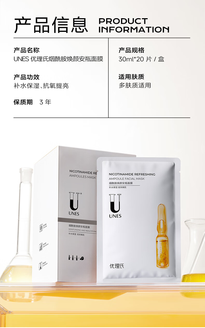优理氏(UNES) 烟酰胺安瓶面膜深层补水保湿全脸提亮紧致润肤改善暗沉滋养舒缓 【40+2片】烟酰胺提亮面膜