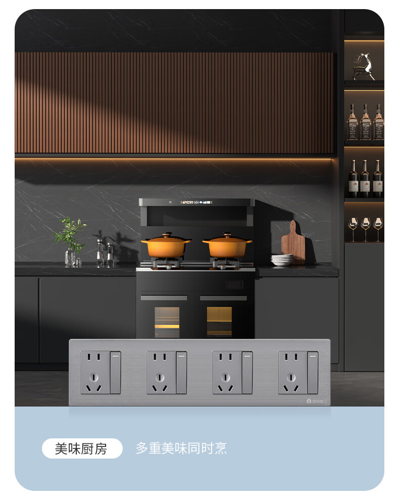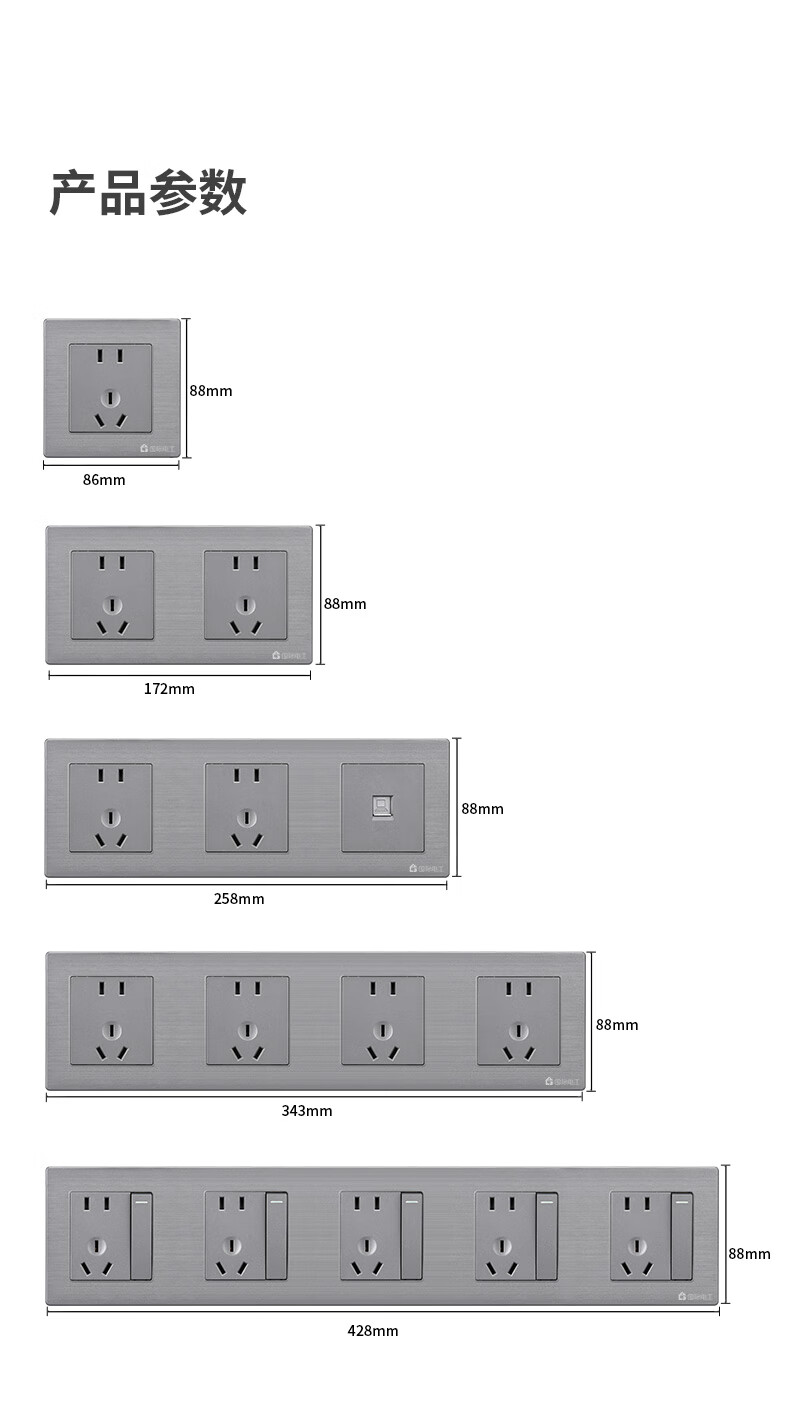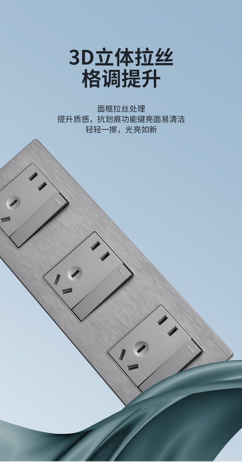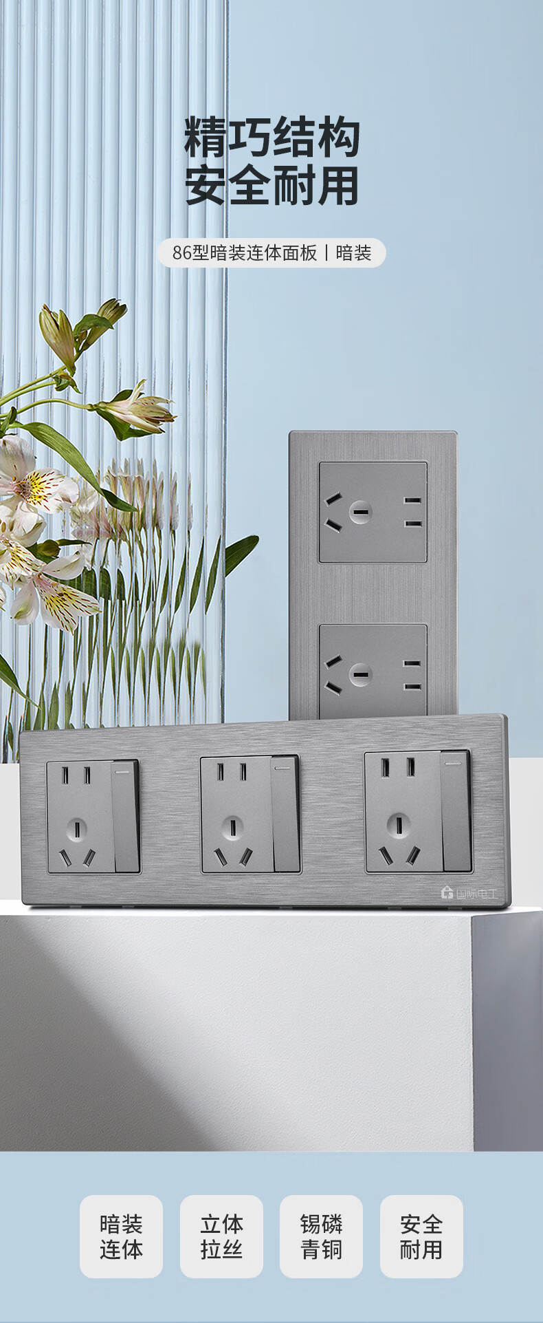国际电工86型多位连体插座家用多孔面板二位十孔三位15孔四位开关墙插座 4位一开五孔连体-灰色