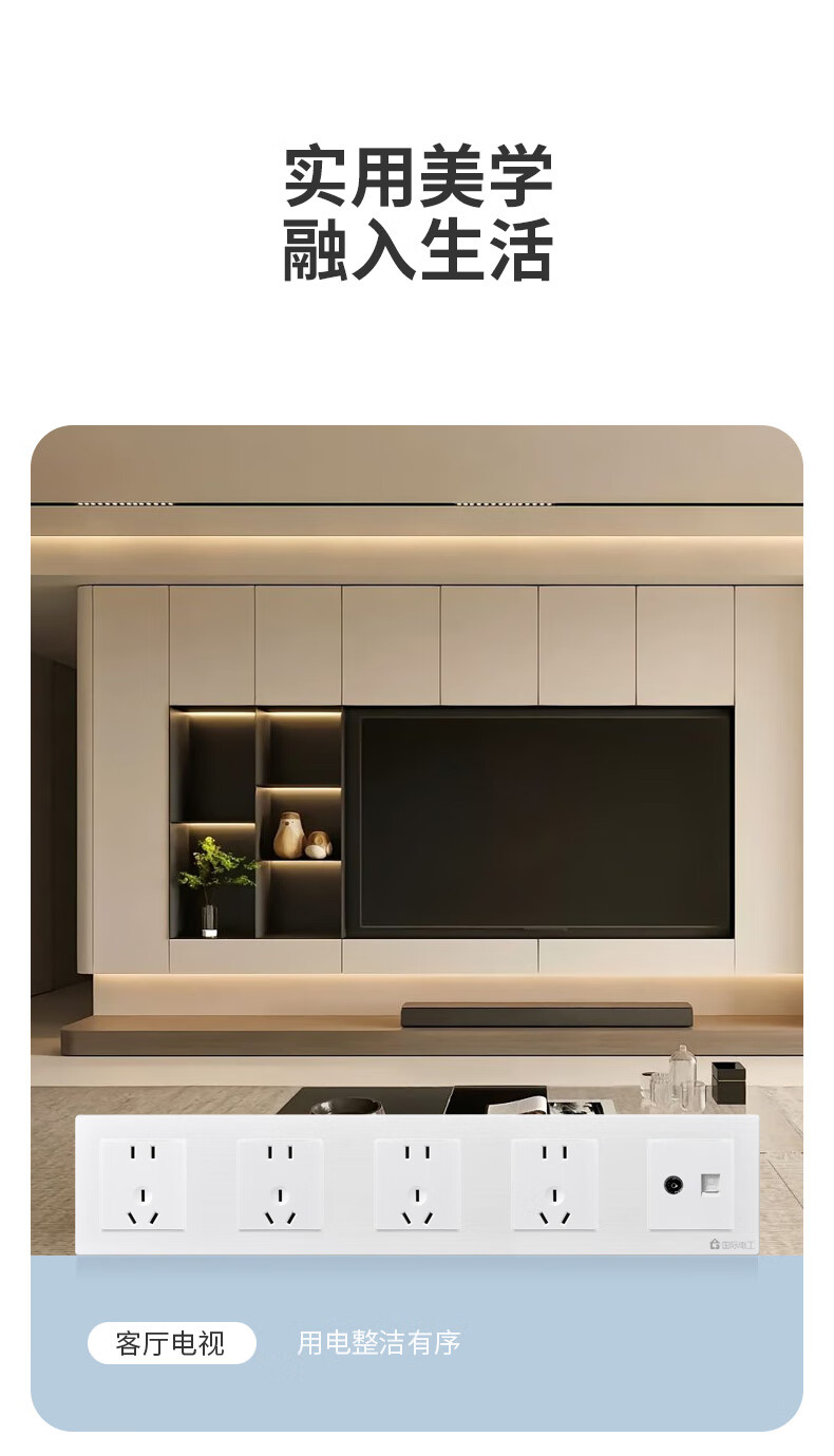 国际电工86型多位连体插座家用多孔面板二位十孔三位15孔四位开关墙插座 4位五孔+1位电视电脑-白色