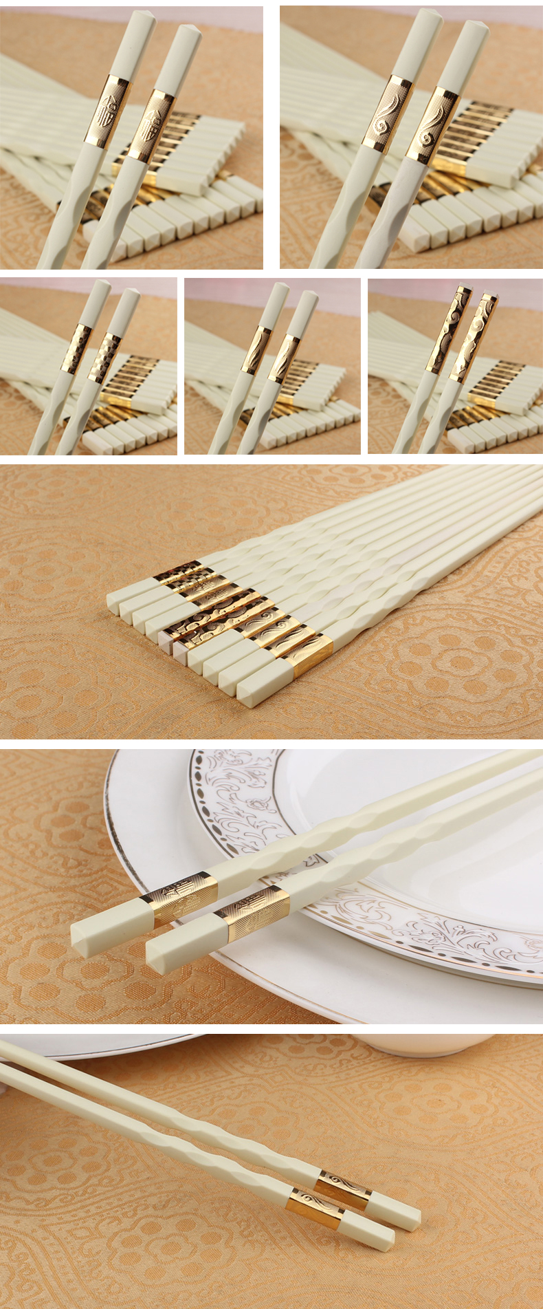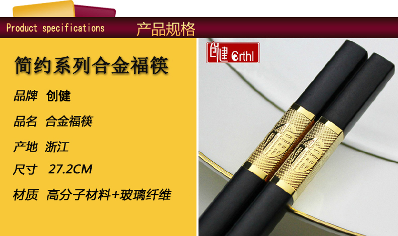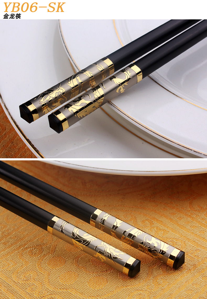 创建(Crthl) 创健 合金筷子 酒店家用耐高温消毒无漆无蜡 非竹非木 中国风pps筷子 浮雕金龙筷 24CM 10双