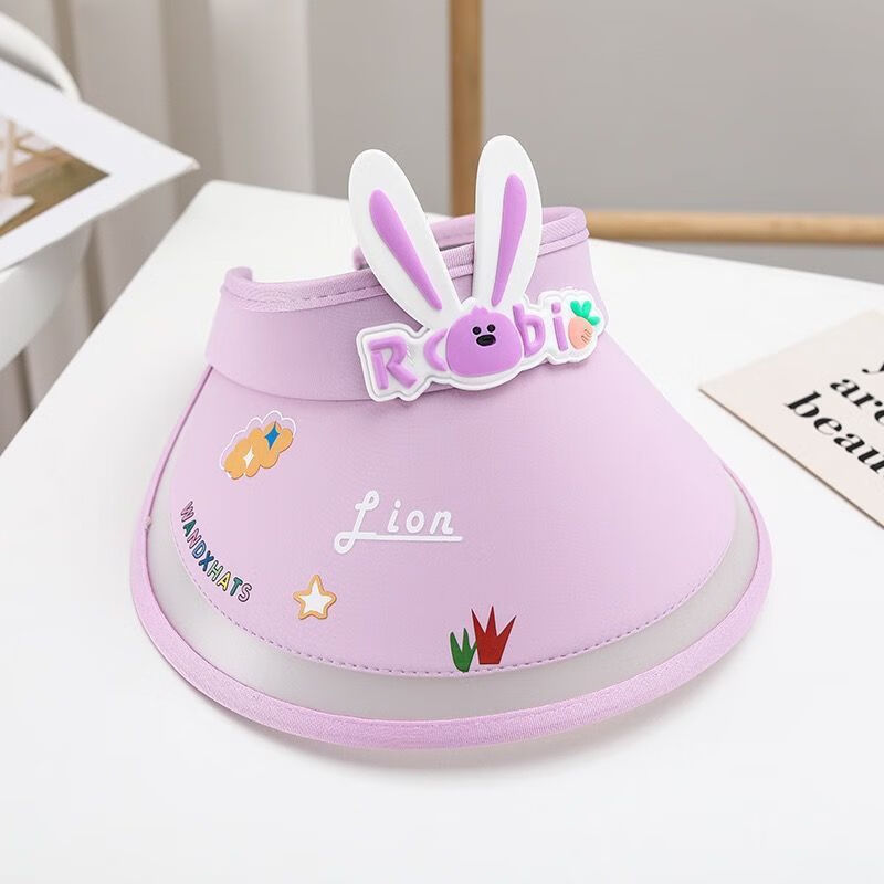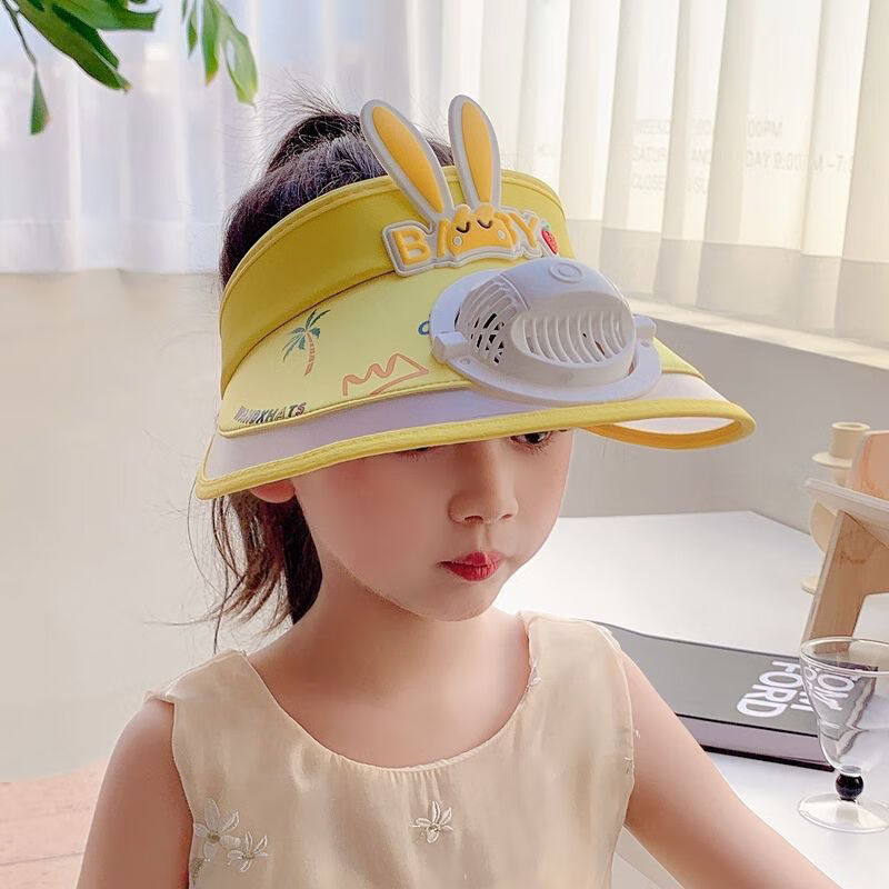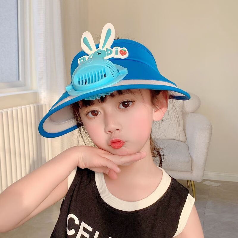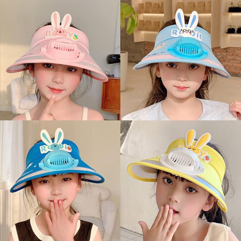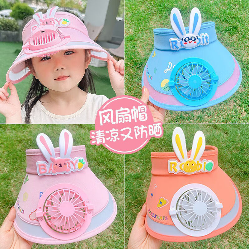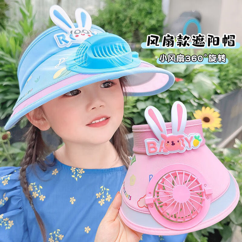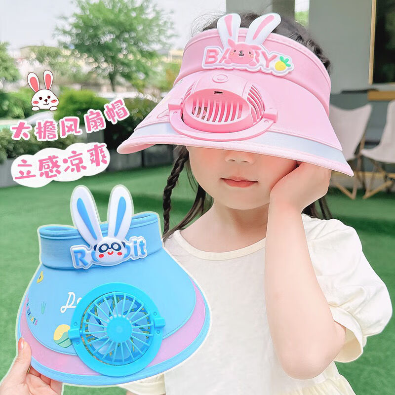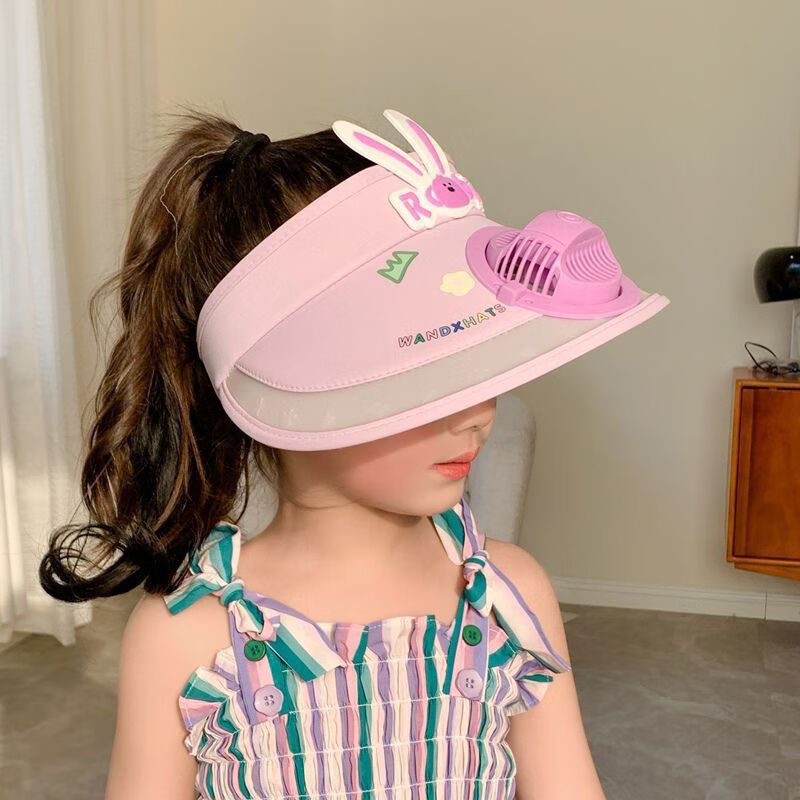 【精选好物】带风扇儿童帽子夏季防晒男女童大檐空顶太阳帽宝宝遮 粉色-冰丝兔子帽 建议3-15岁可调节