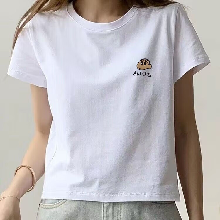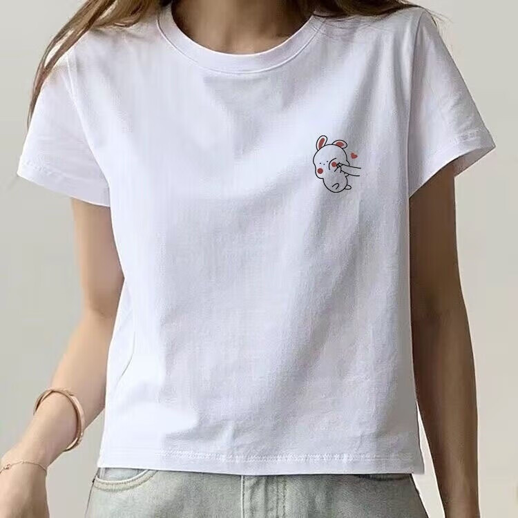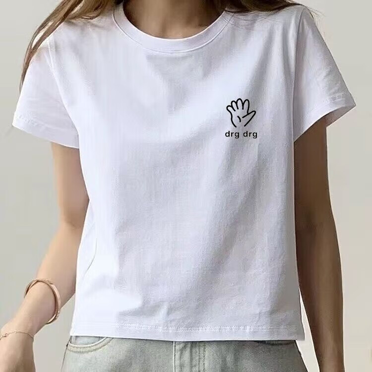 白色短款宽松T恤女新款百搭印花圆领上衣ins风格 纯白 XL