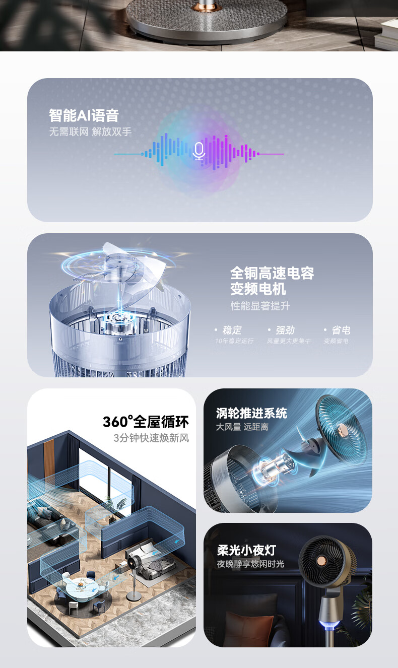 尚度丨厂家直销丨家电补贴NO.1制冷空气循环扇电风扇家用落地扇空调一级能效静音卧室大风力语音摇头 智能语音升级丨AI智控超节能丨8D循环涡轮风