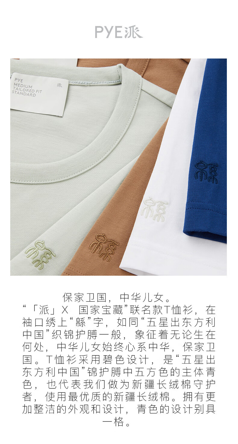 PYE派X国家宝藏联名款 夏季男士圆领平纹T恤衫 五星出东方利中国 靛蓝色 XL