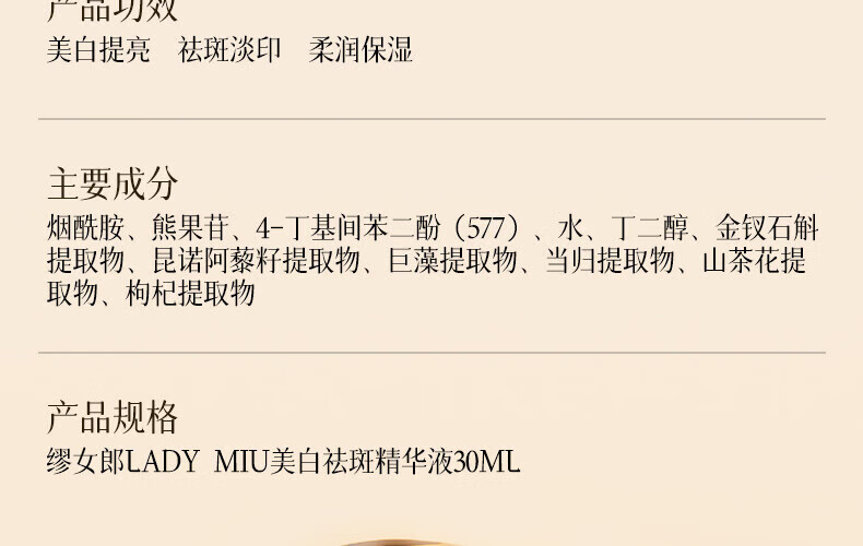 MZPLOImiulady美白精华液油缪女郎烟酰胺淡褪色斑柔润保 透白柔肤水+透白精华乳+美白精华