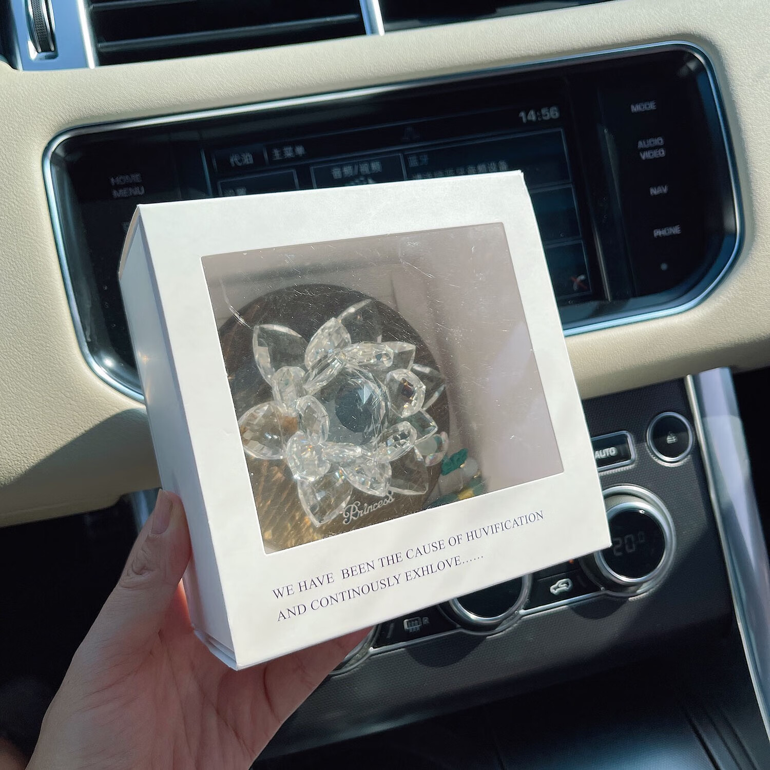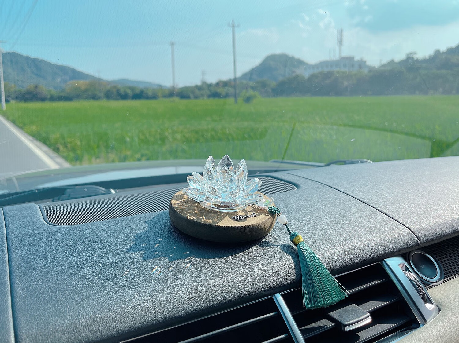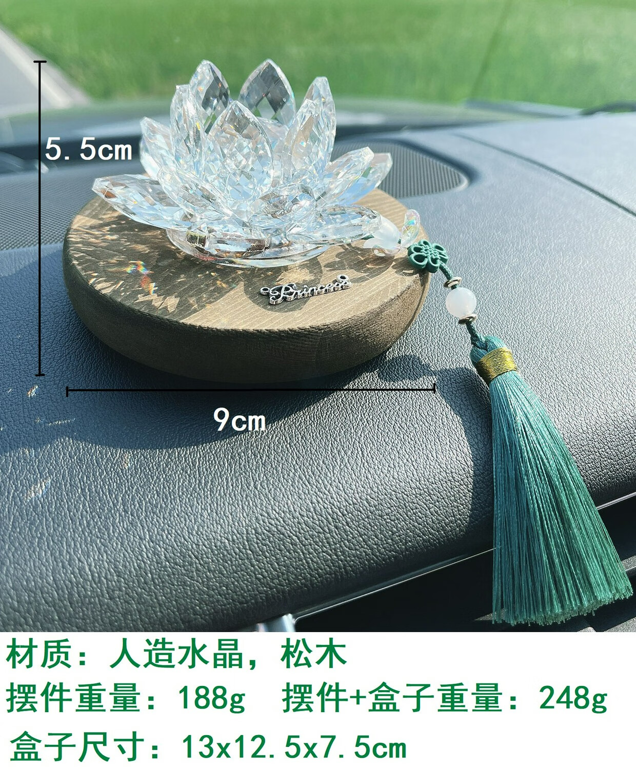 宰搂配好运莲莲水晶荷花汽车车内装饰品国风木质车载中 摆件白钻茶花垫