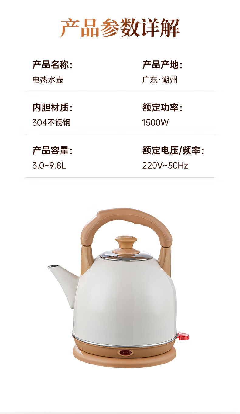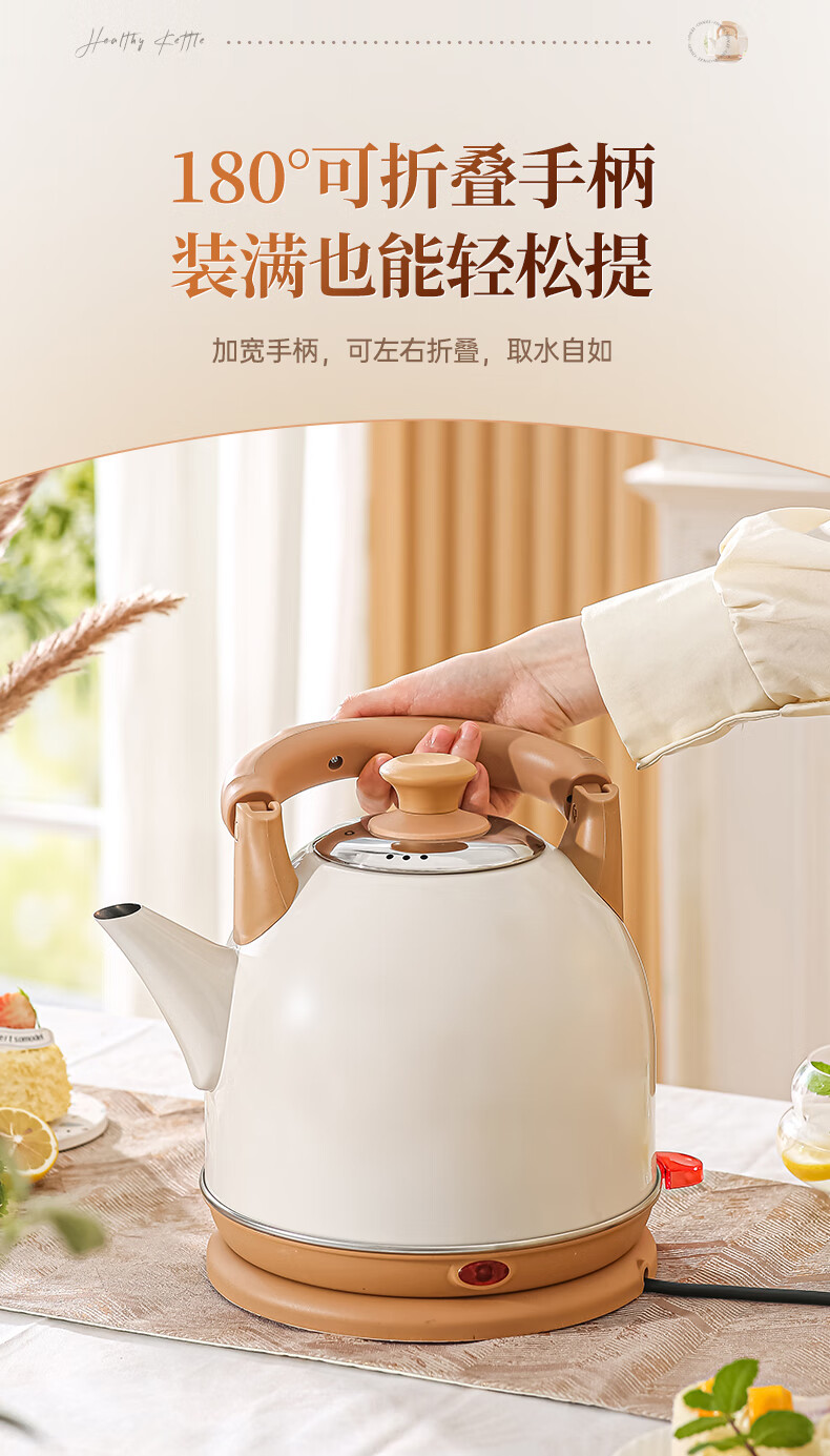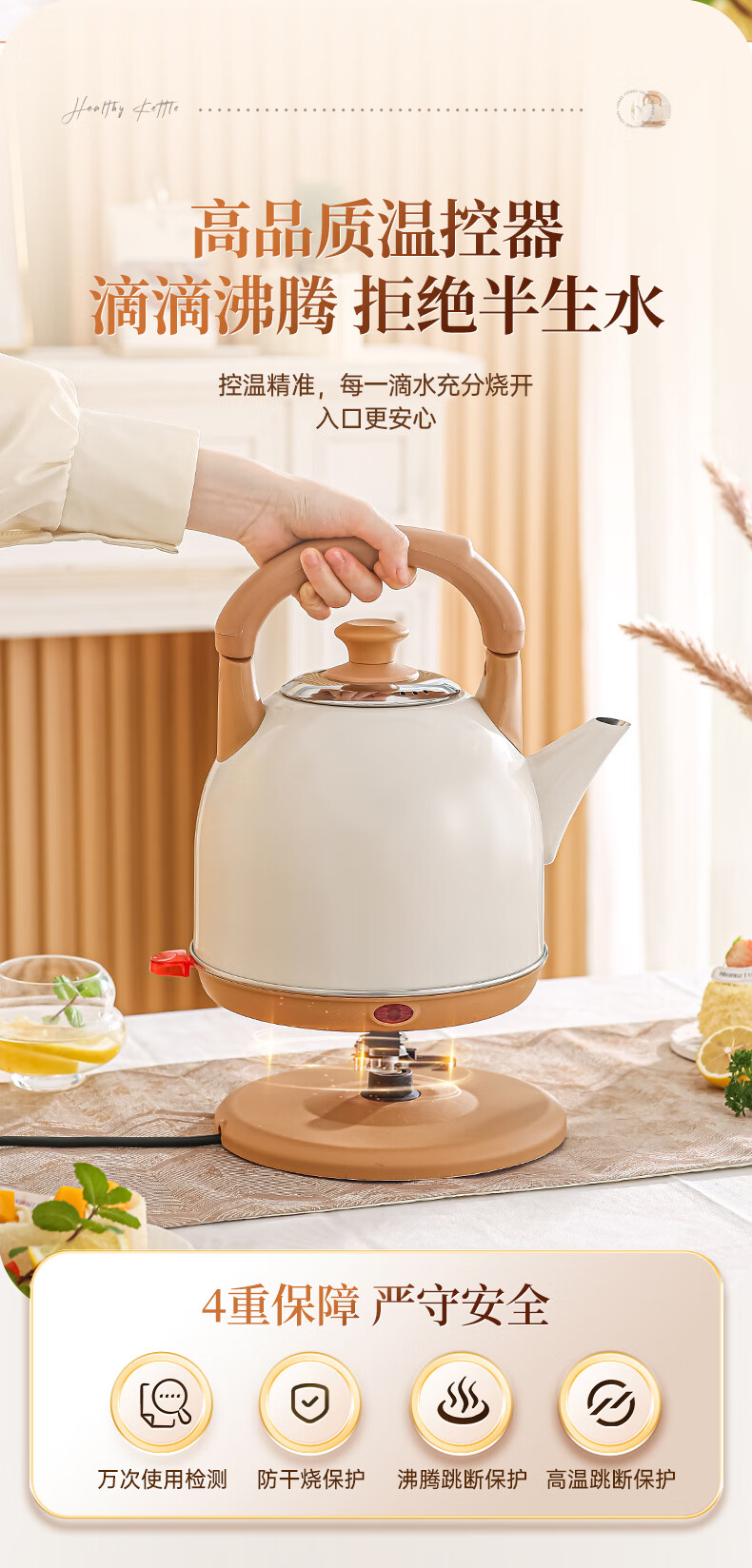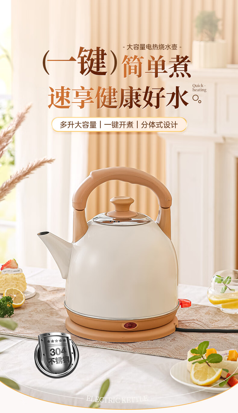 延兴烧水壶热水壶电水壶煮水壶恒温便携家用新款大容量304不锈钢分体 304不锈钢-米色 5L